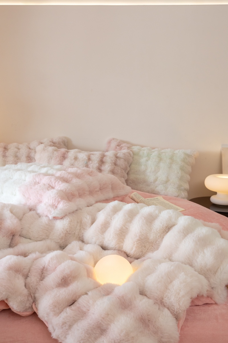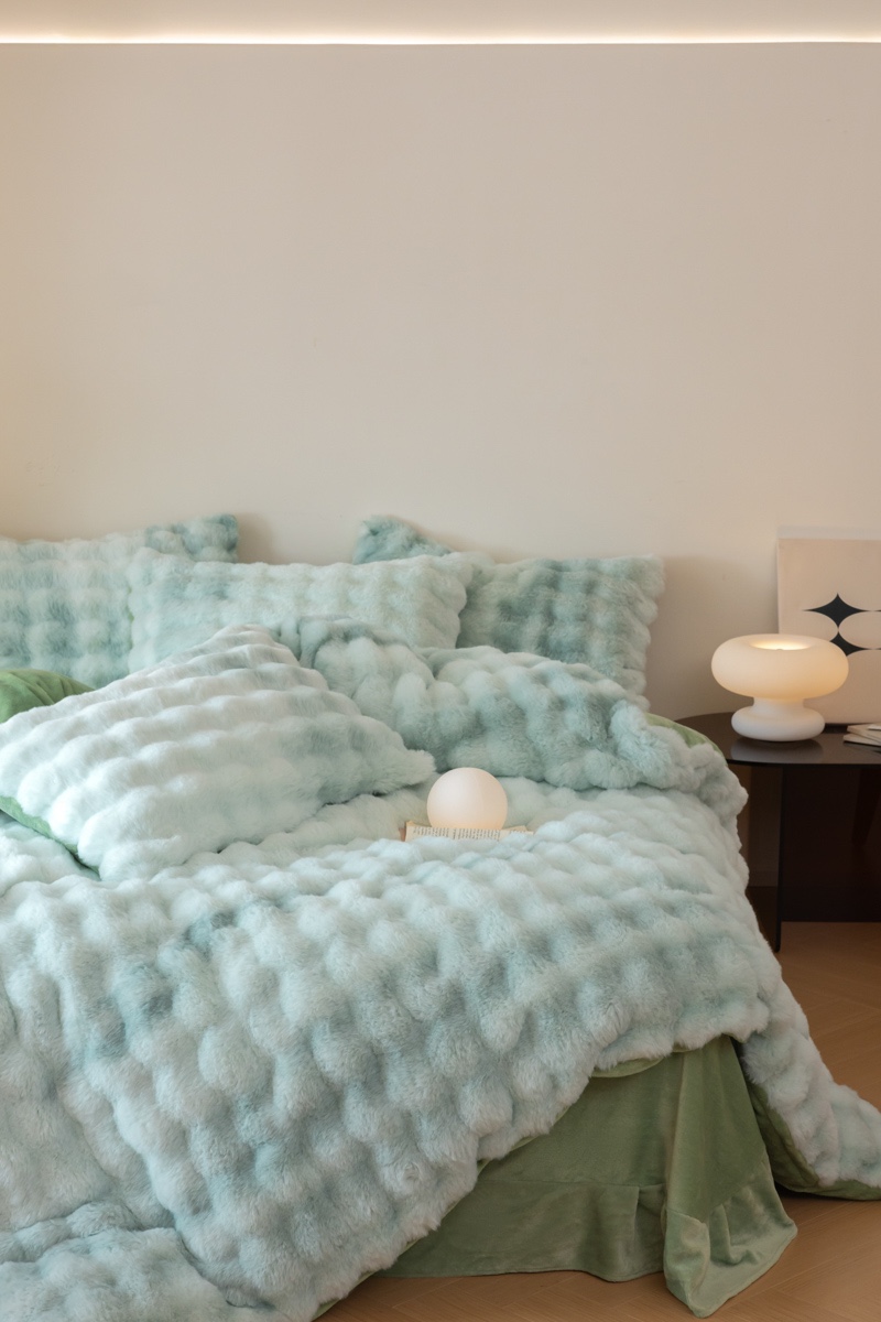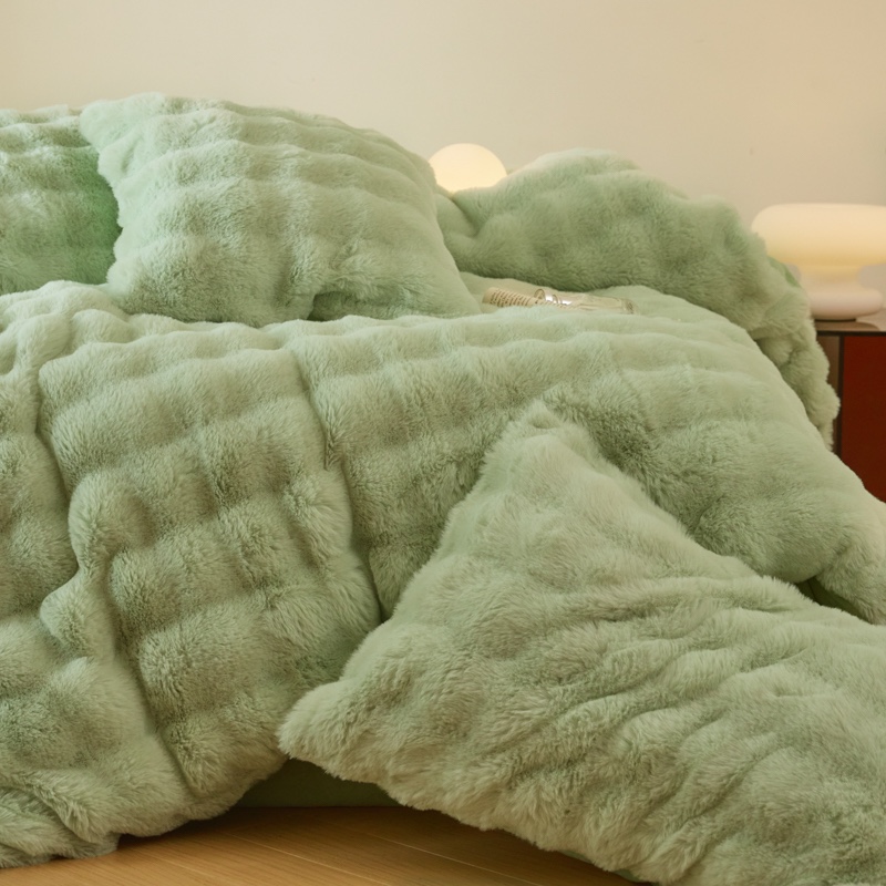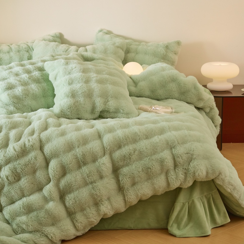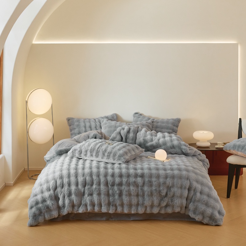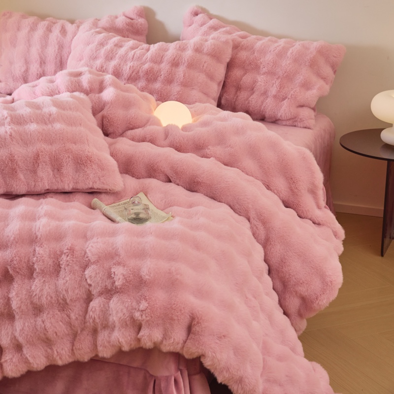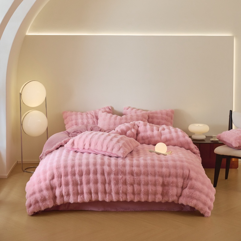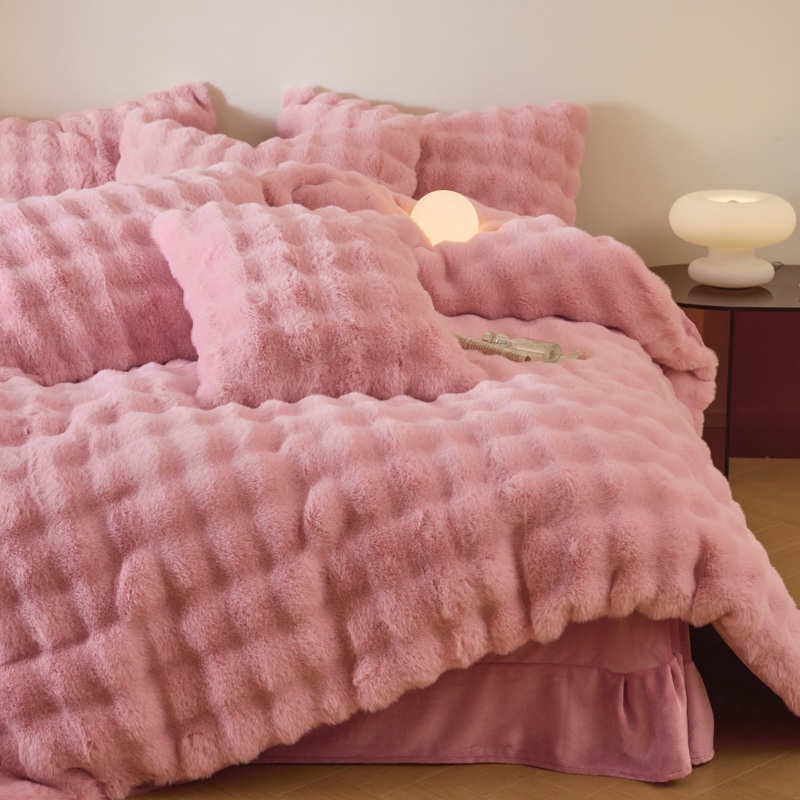 (总)玖琳家纺 2024新款A类大泡泡懒兔毛绒+牛奶绒四件套,白色,粉色,灰色,桔色,蓝色,绿色,深咖,桃红,驼色,紫色