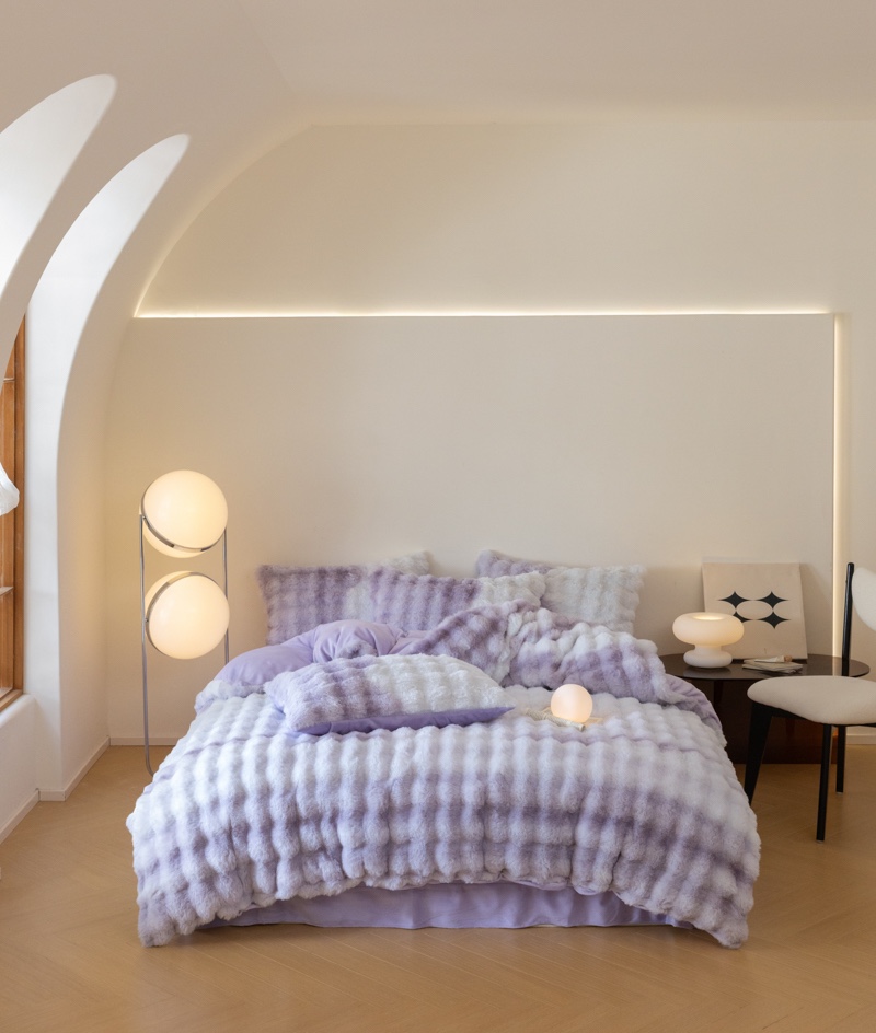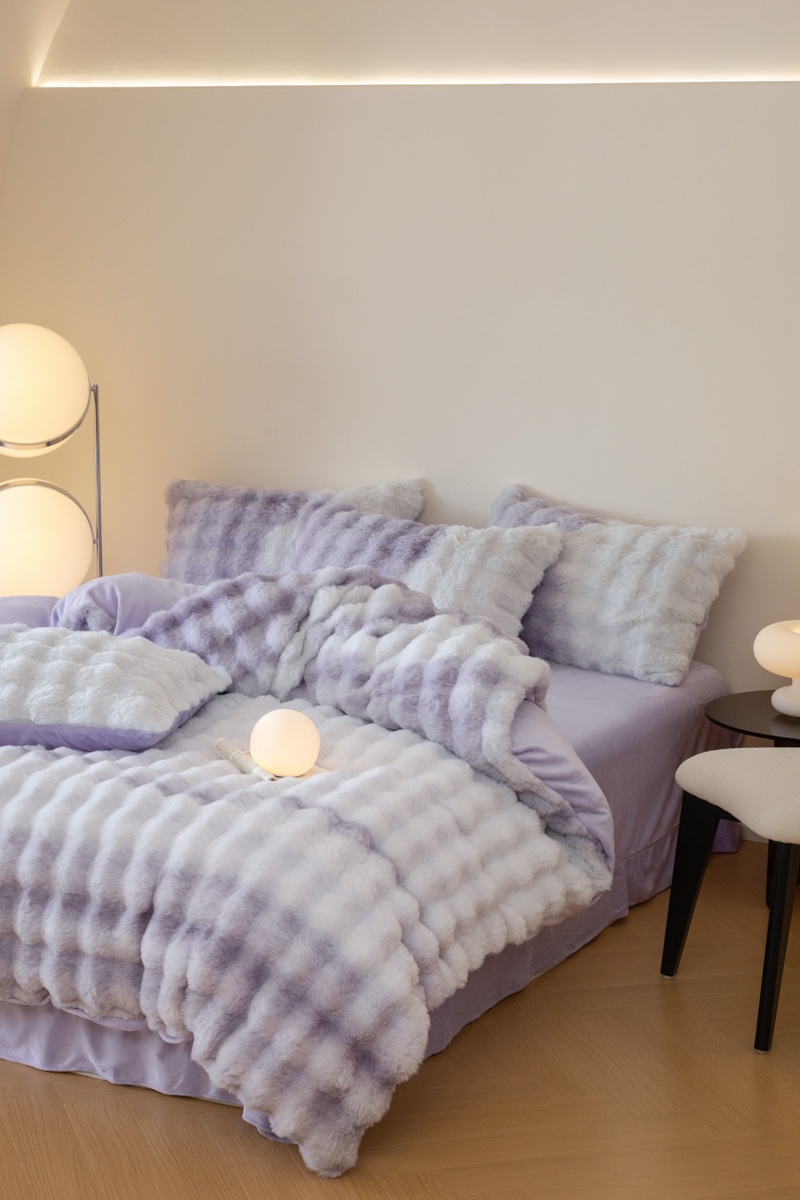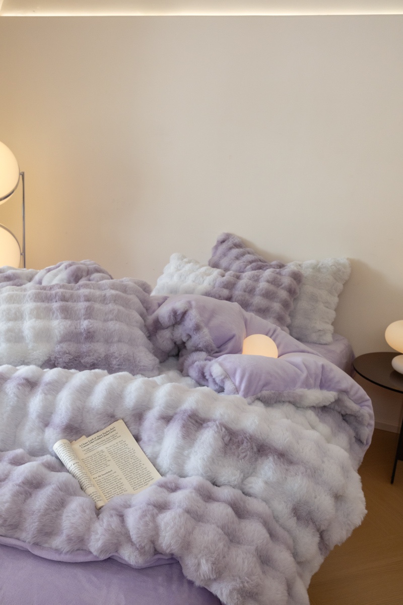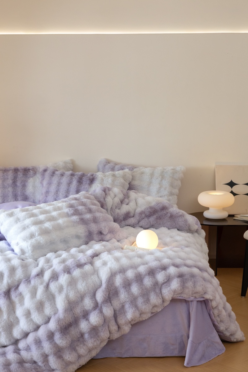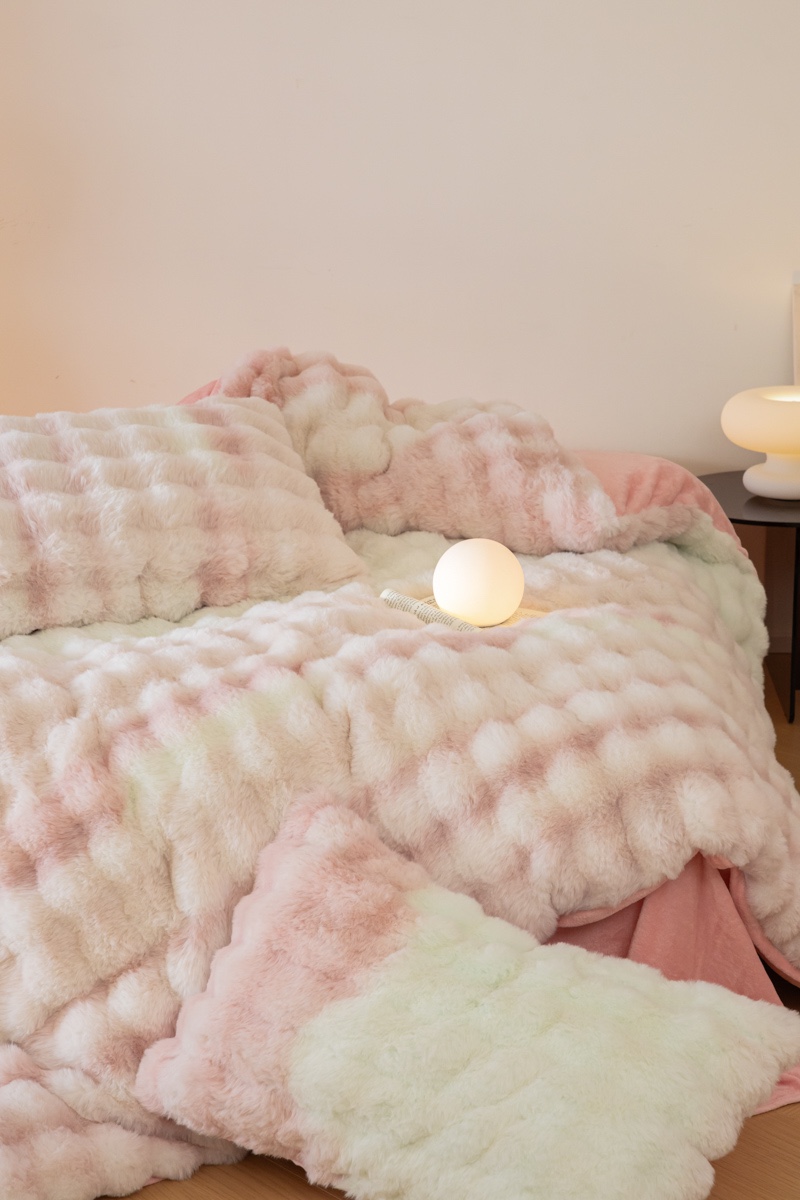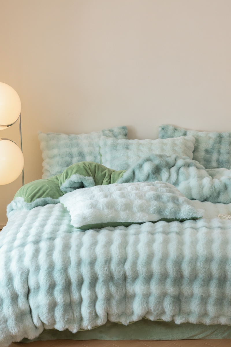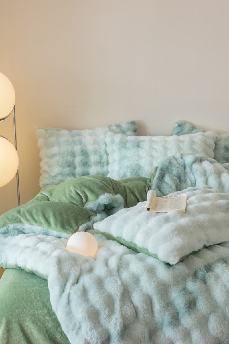 (总)玖琳家纺 2024新款A类大泡泡懒兔毛绒+牛奶绒四件套,白色,粉色,灰色,桔色,蓝色,绿色,深咖,桃红,驼色,紫色