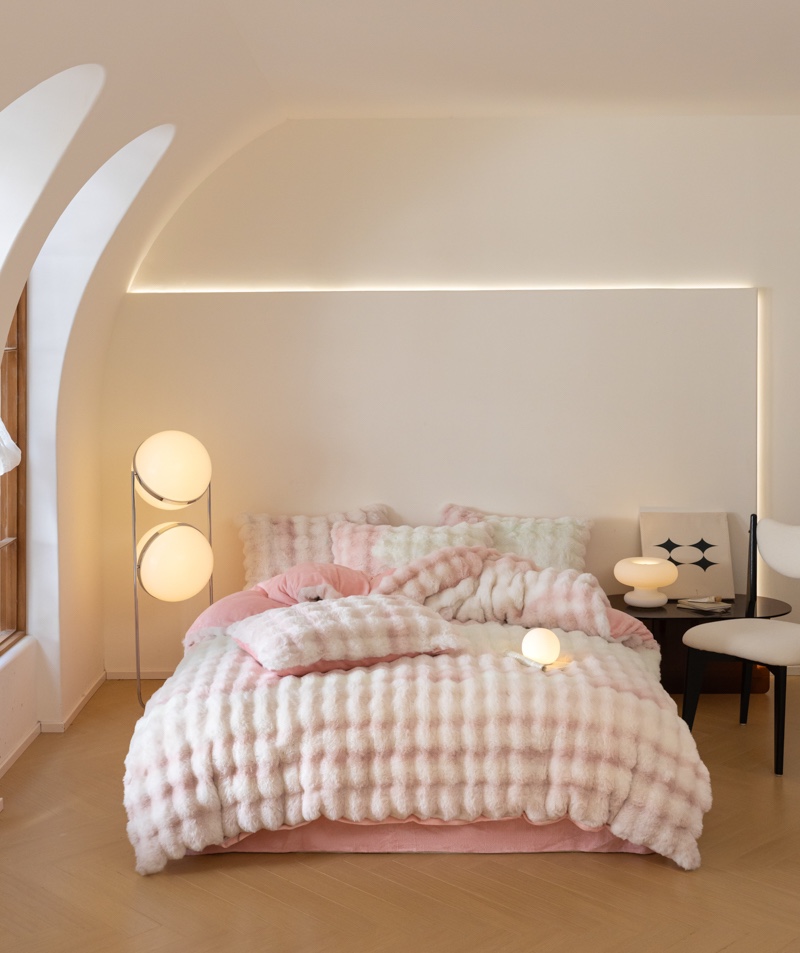 (总)玖琳家纺 2025新款双面高端高克重兔绒毛牛奶绒轻奢款四件套- 时光系列,粉白条,黑白条,灰白条