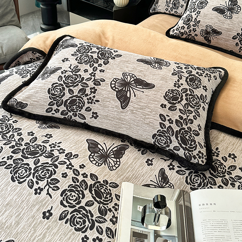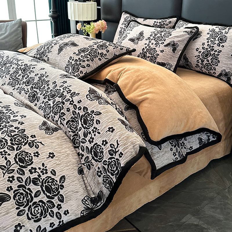 商品名称:柏薇 2025新款兔毛宽包边立体雕花牛奶绒四件套 柚园