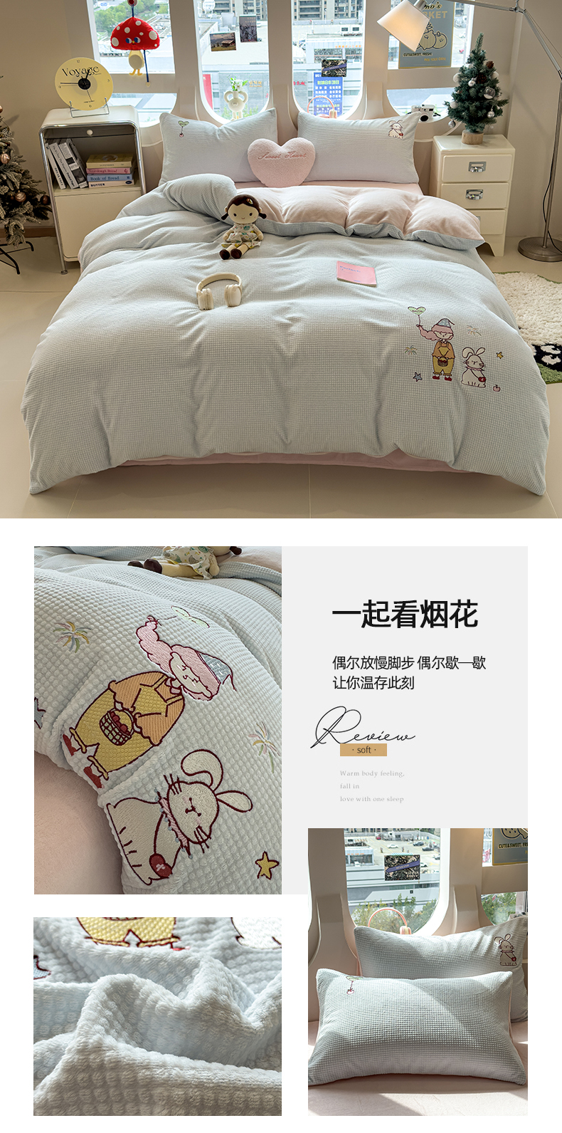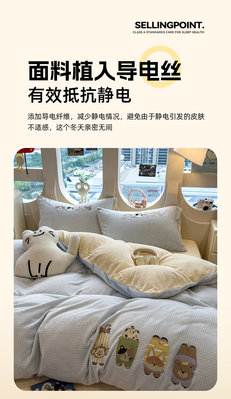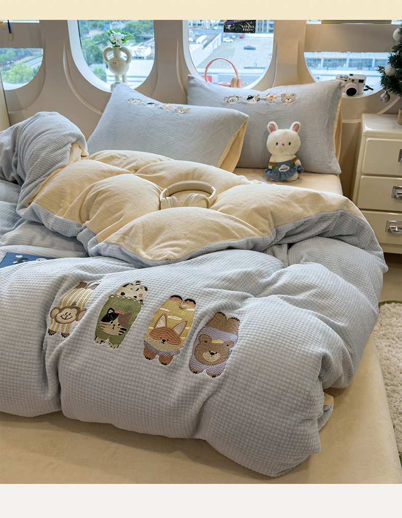 当前位置: 91家纺网 > 商品网购 > 床品套件 > 四件套 > 牛奶绒四件套 > 凯罗 2025秋冬牛奶绒绣花四件套 萌萌兔与小花狗