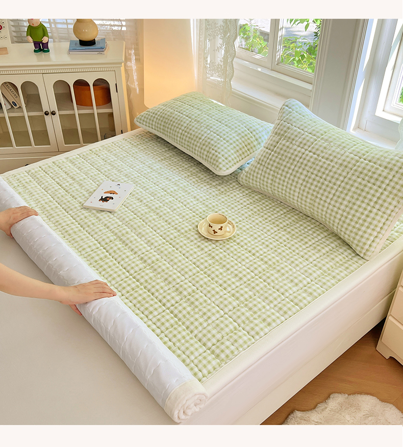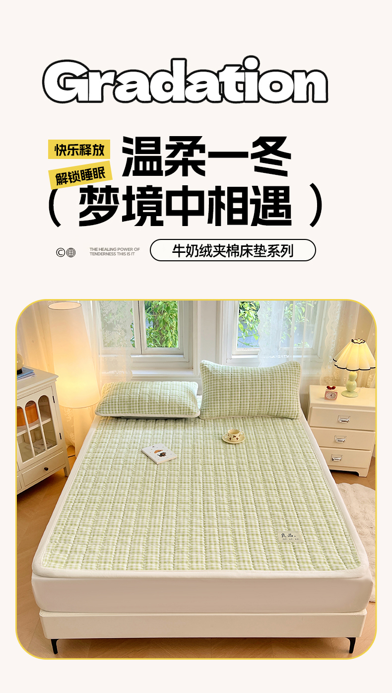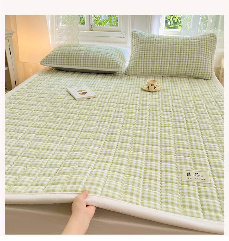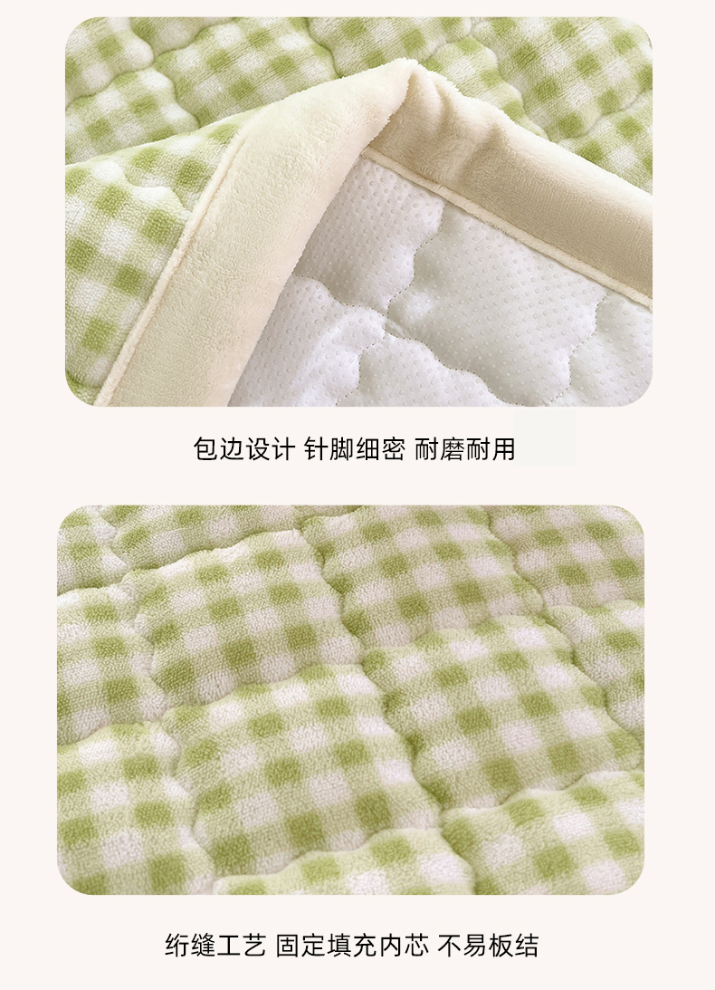 当前位置: 91家纺网 > 商品网购 > 床垫/床褥 > 普通床垫 > 三盛源 2025新款牛奶绒绗绣夹棉防滑保暖秋冬印花床护垫床褥绒床垫加厚高克重加宽包边 方格-抹茶绿