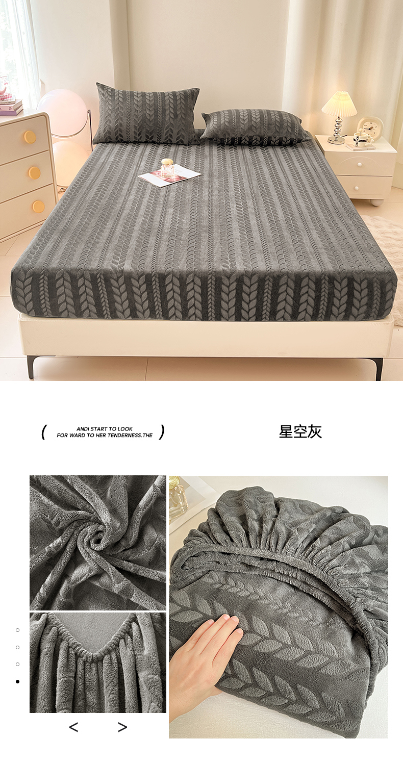 • 91家纺网 家纺一手货源 找家纺 三盛源 2025新款高克重雕花牛奶绒床笠三件套加厚保暖床垫保护套 麦穗-星空灰