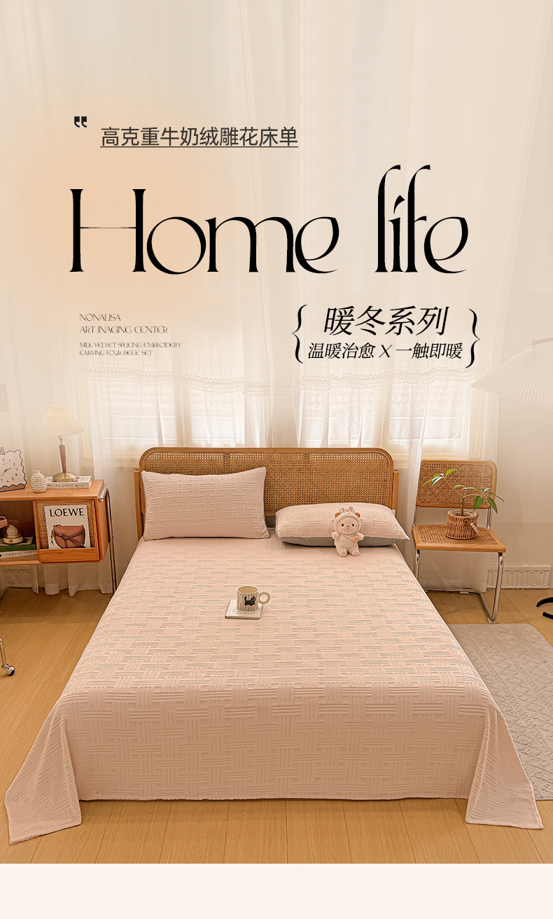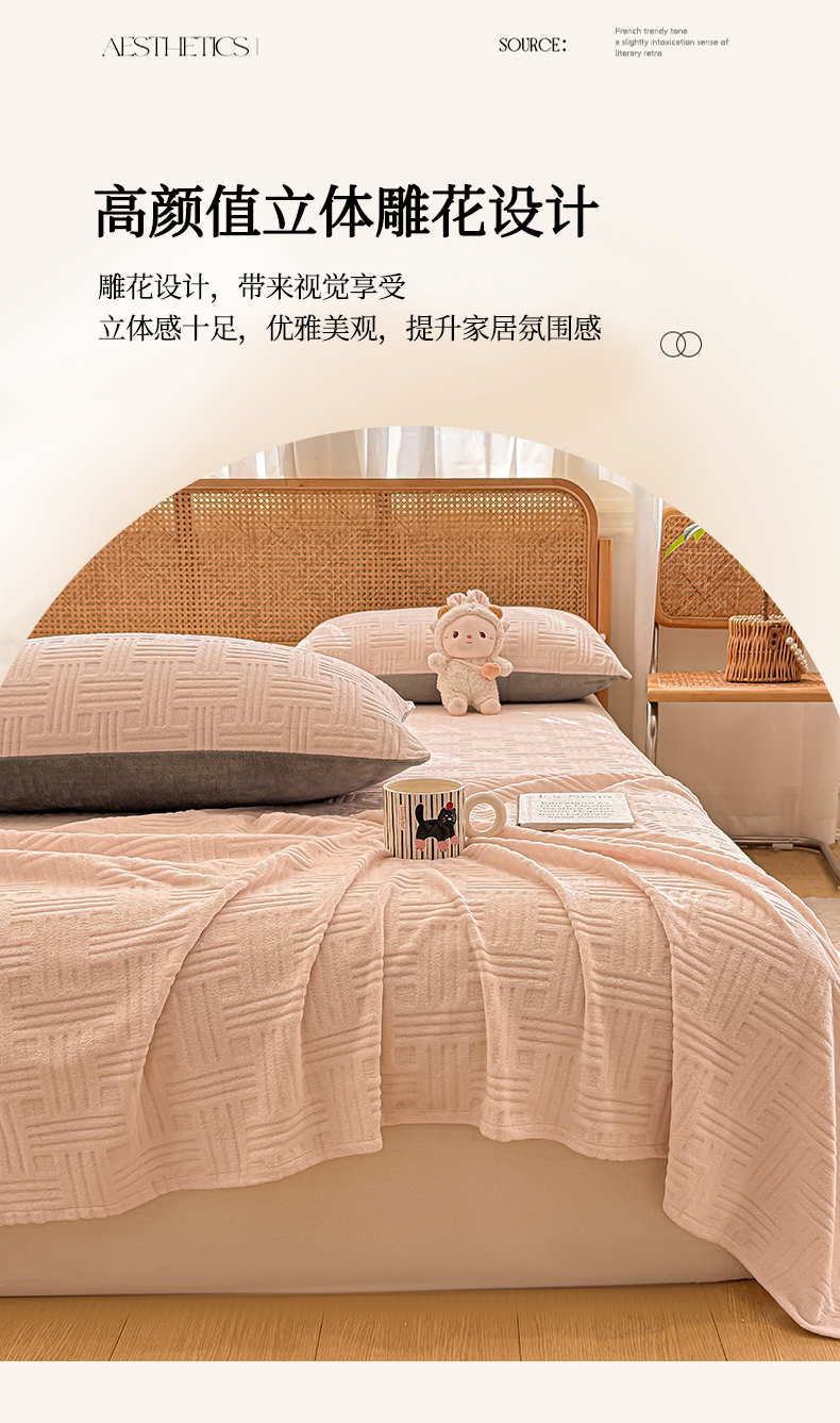 • 91家纺网 家纺一手货源 找家纺 灰鲸 2025新款纯色雕花牛奶绒床单单品床单床单单件 组合图仅供展示不可下单