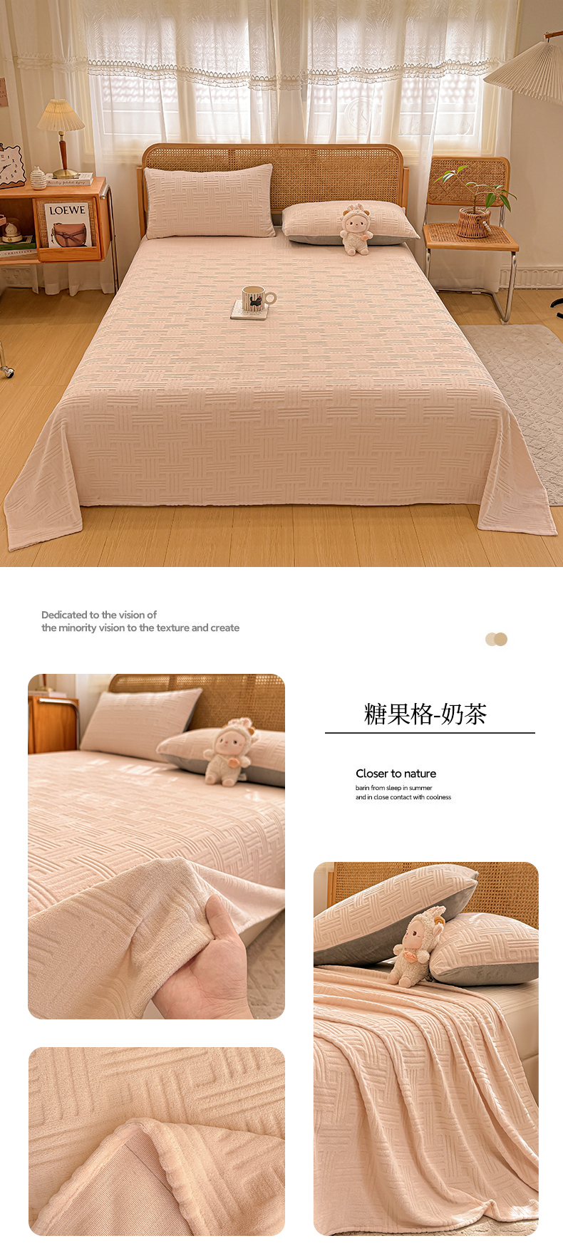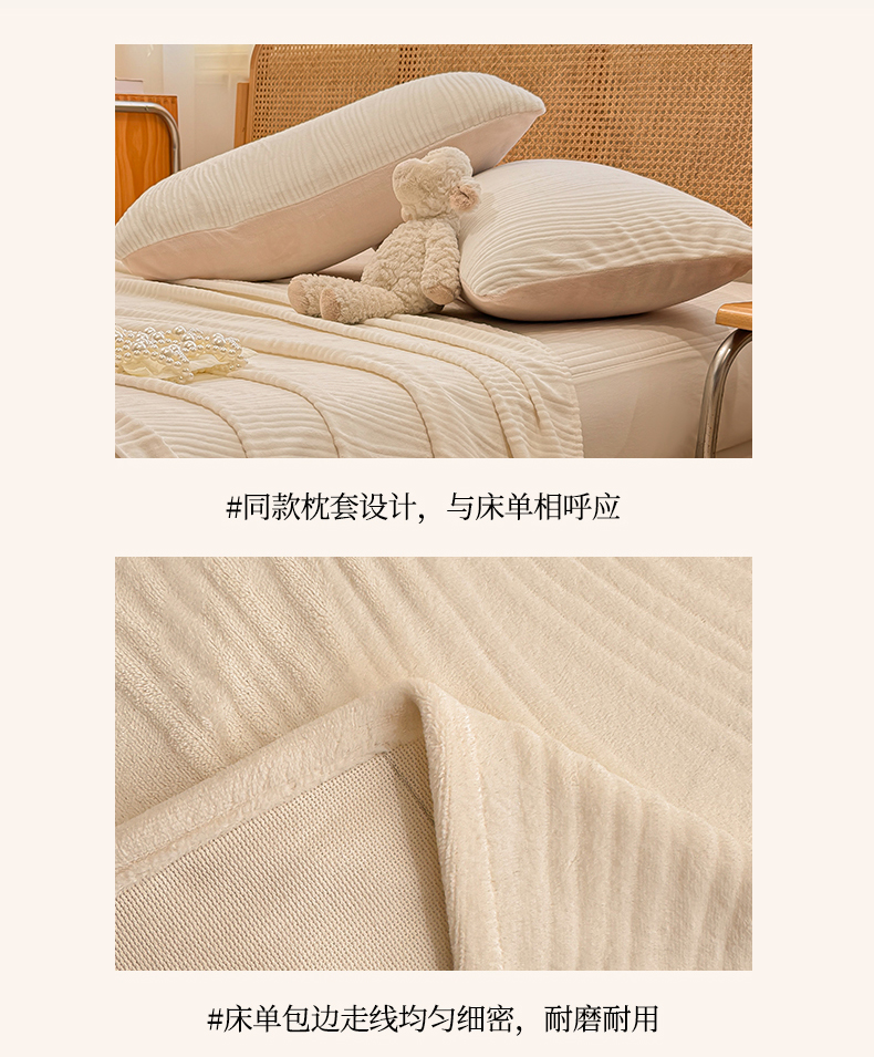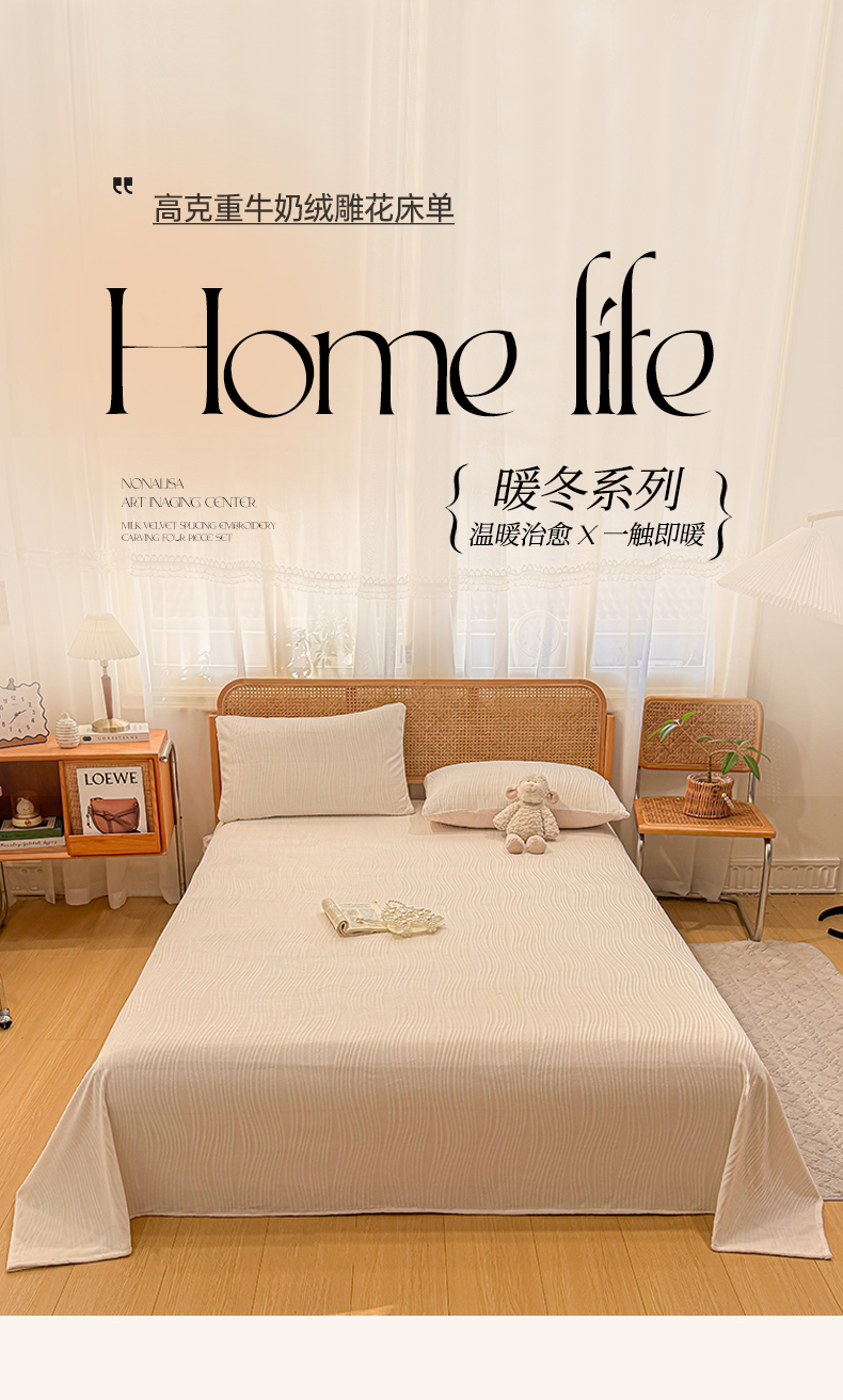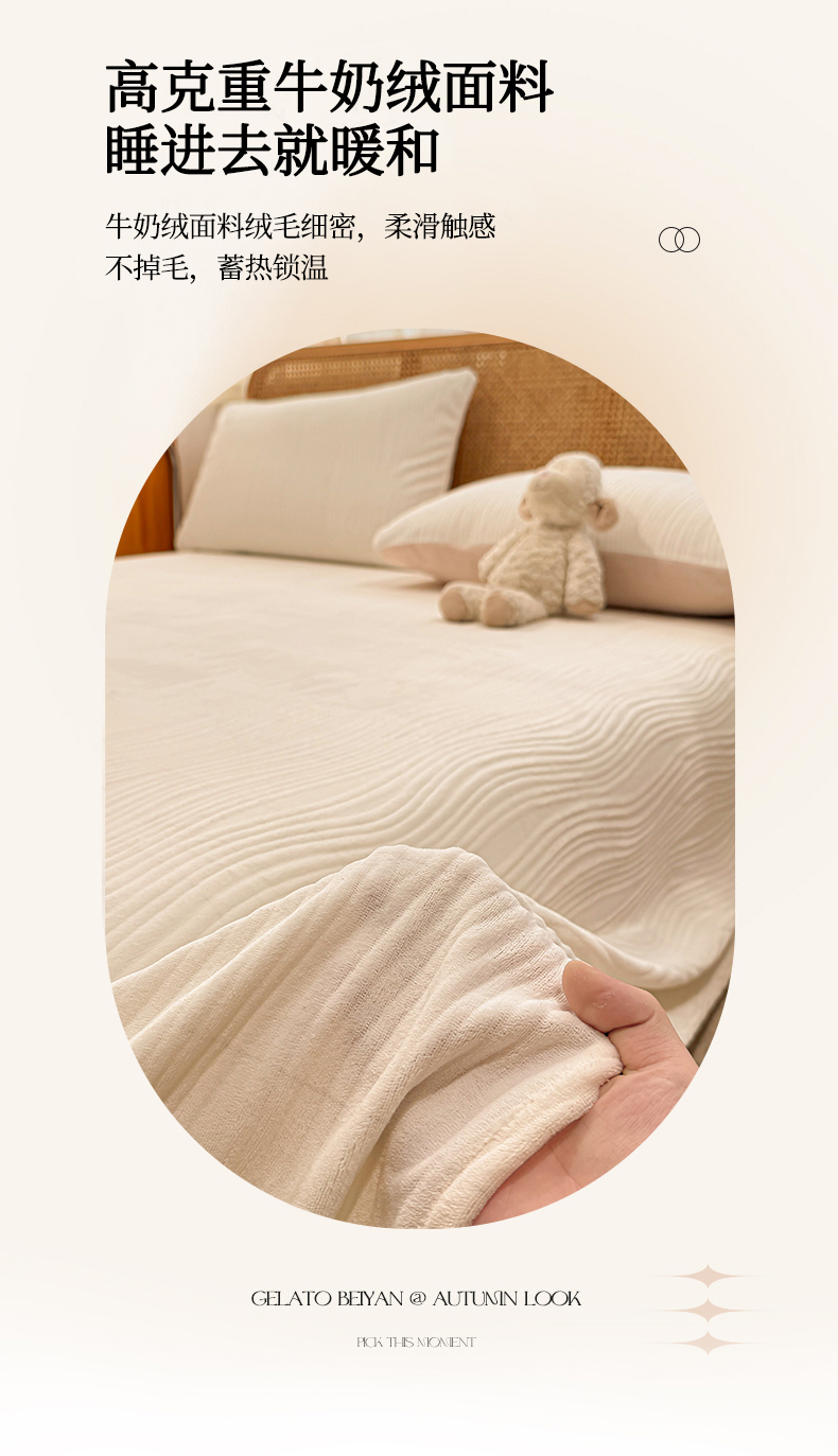 • 91家纺网 家纺一手货源 找家纺 灰鲸 2025新款纯色雕花牛奶绒床单单品床单床单单件 温妮-奶昔白