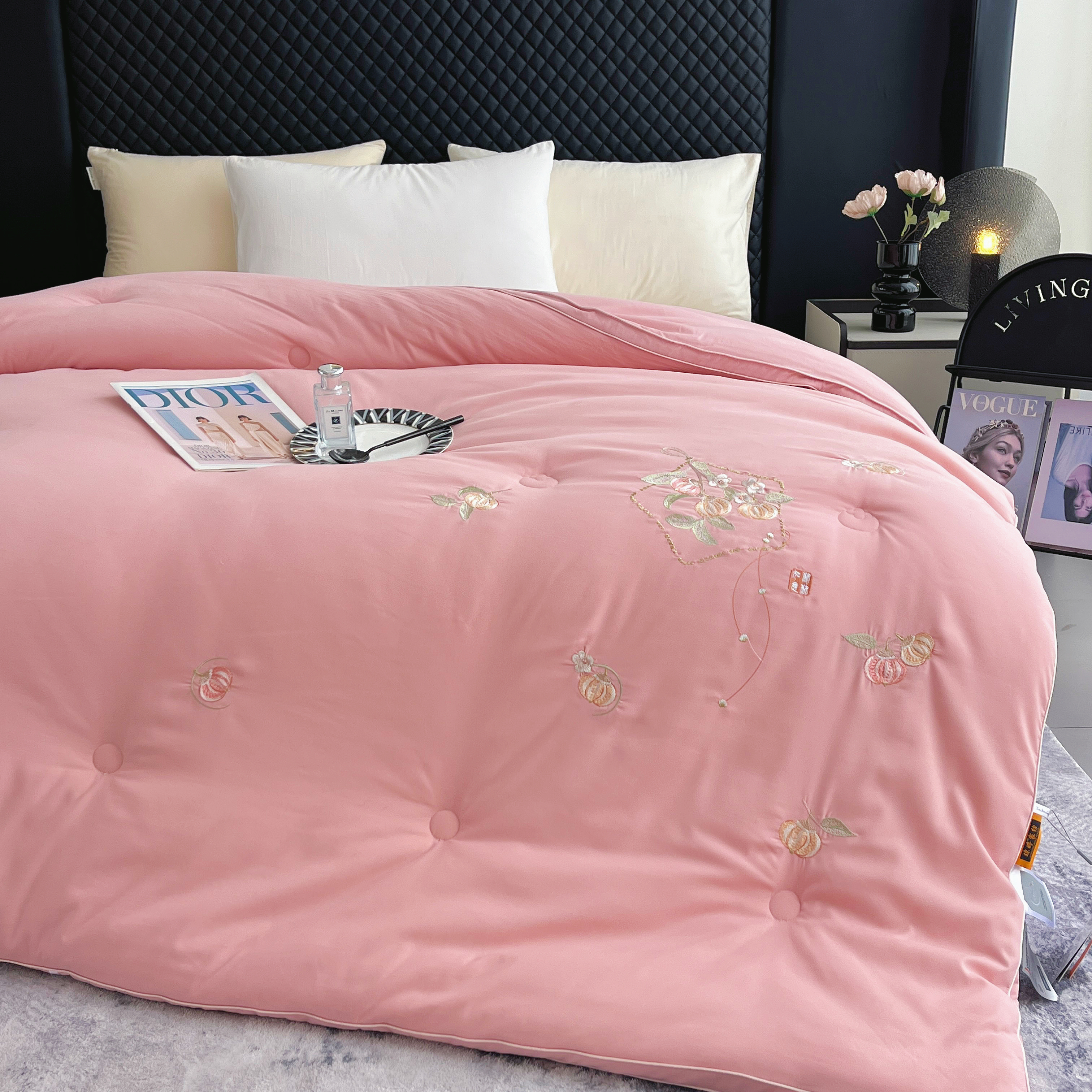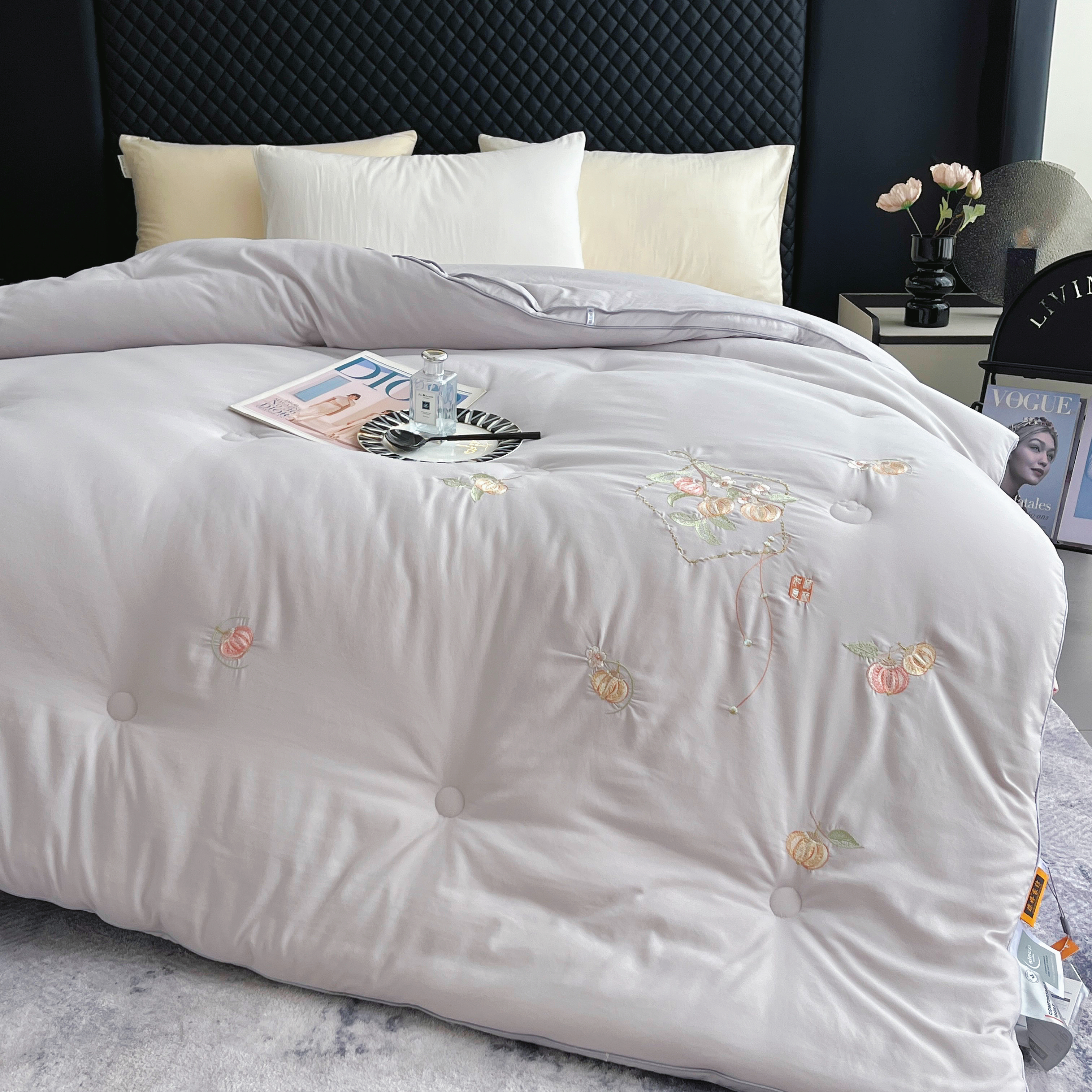 (总)仲旺居家纺 2025新款舒卡棉绣花冬被中式小花简约高级玫瑰婚嫁立体边被子被芯四季被,雲峰白,青玄灰,粉黛红,玉肌粉