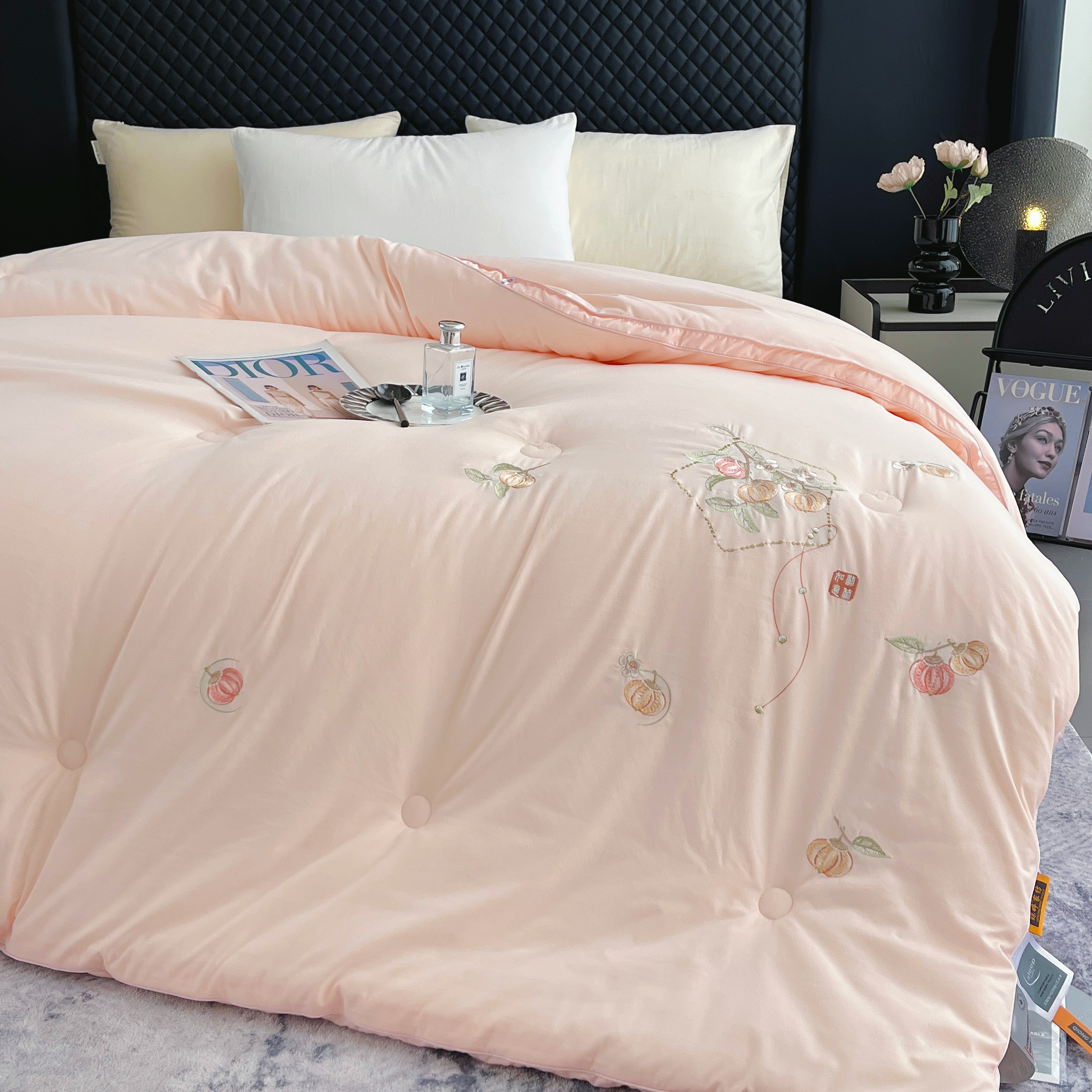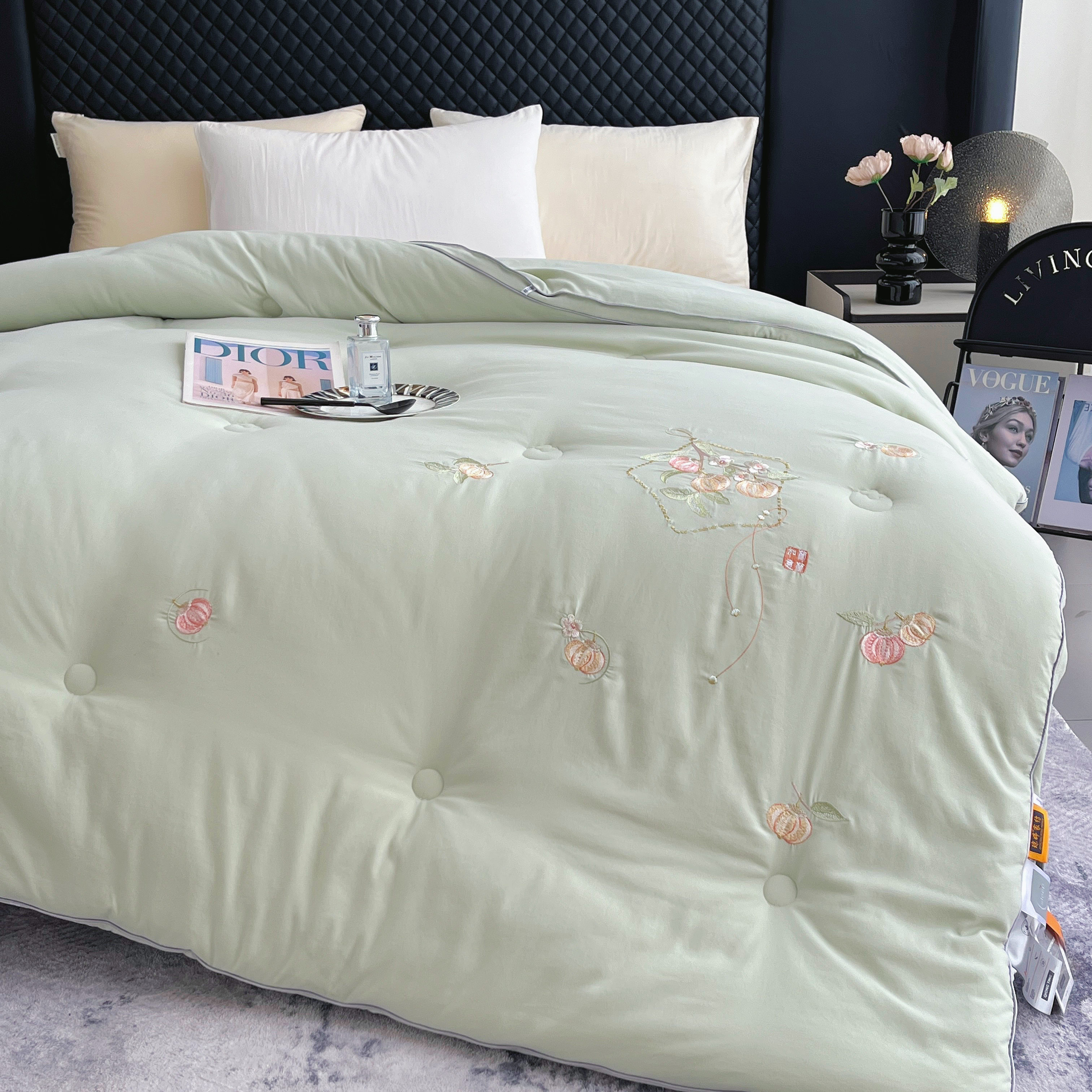 (总)仲旺居家纺 2025新款漫轨棉绣花冬被植基养生豆立体边被子被芯四季被,奶油白,云雾粉,海盐绿,香槟咖,初恋粉