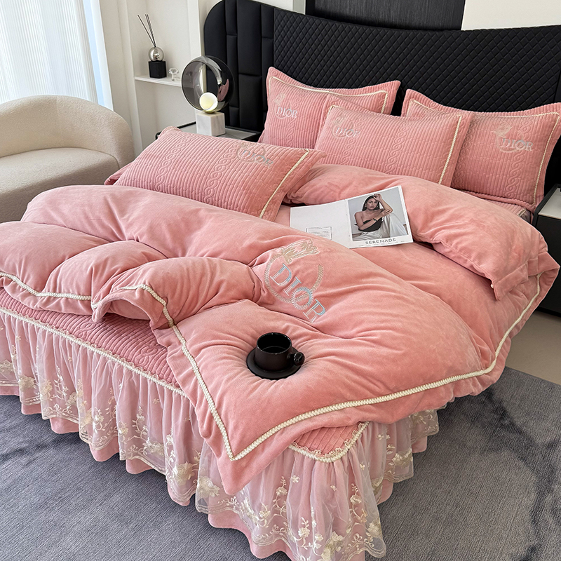 (总)优姿家纺 2025新款牛奶绒花边绣花床盖四件套,花漾时光-果绿,花漾时光-玖红色,花漾时光-米色,花漾时光-桃红色,花漾时光-天空兰,花漾时光-雾霾蓝