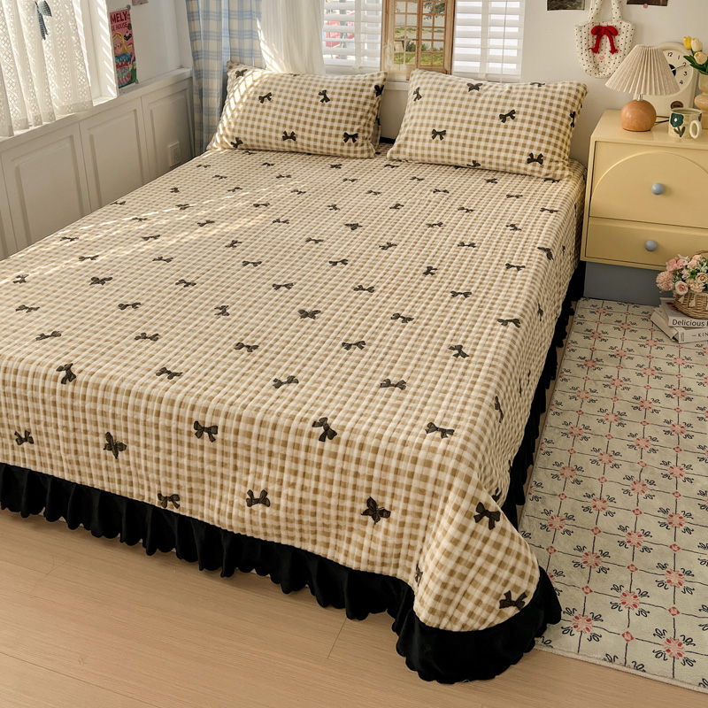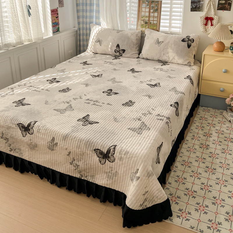 商品名称:鑫利来家纺 2025新款牛奶绒床盖夹棉花边韩版印花单床盖单件床盖三件套 床盖-蝴蝶意境