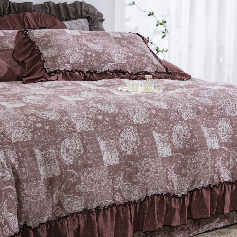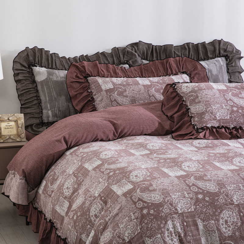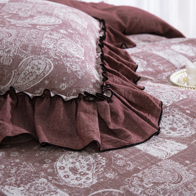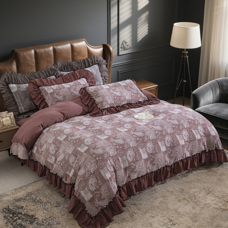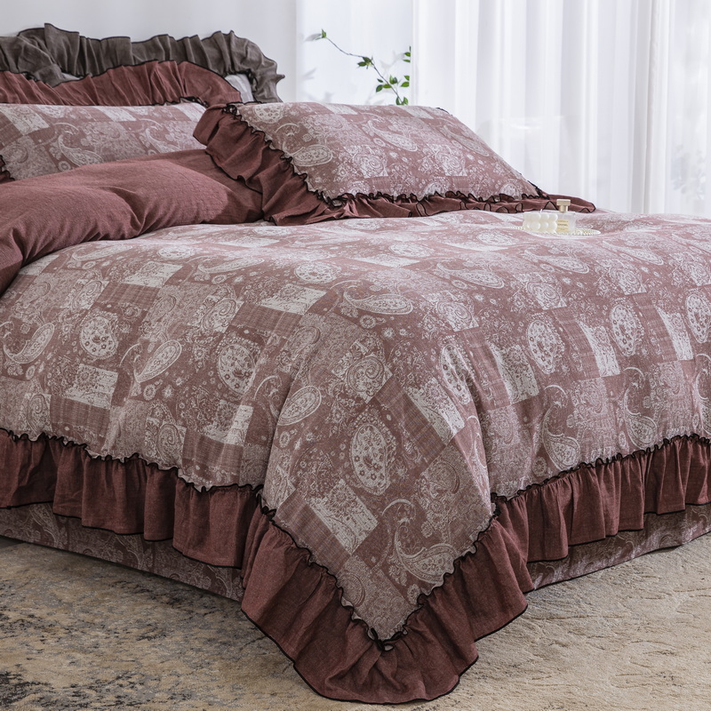 鲁爱家纺供货 2025新款韩版色织提花四件套 兰亭序-豆沙
