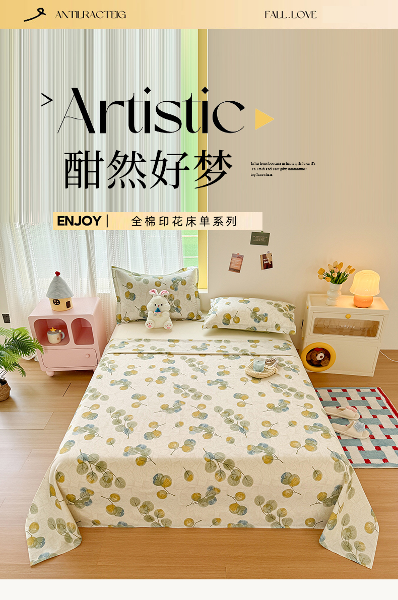(总)尚帛 2026新款全棉时尚印花单床单,艾米丽-绿,宠爱,花间采趣-咖,可可甜心,可颂日记,浅影,如玉如兰,碎花学院,五星集,叶柔粉,叶之恋