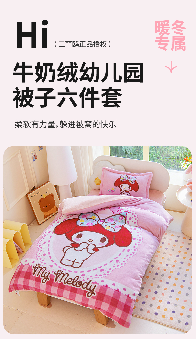 (总)乐秀家纺 2025新款大版三丽鸥牛奶绒幼儿园被子可拆卸 单被套+被芯