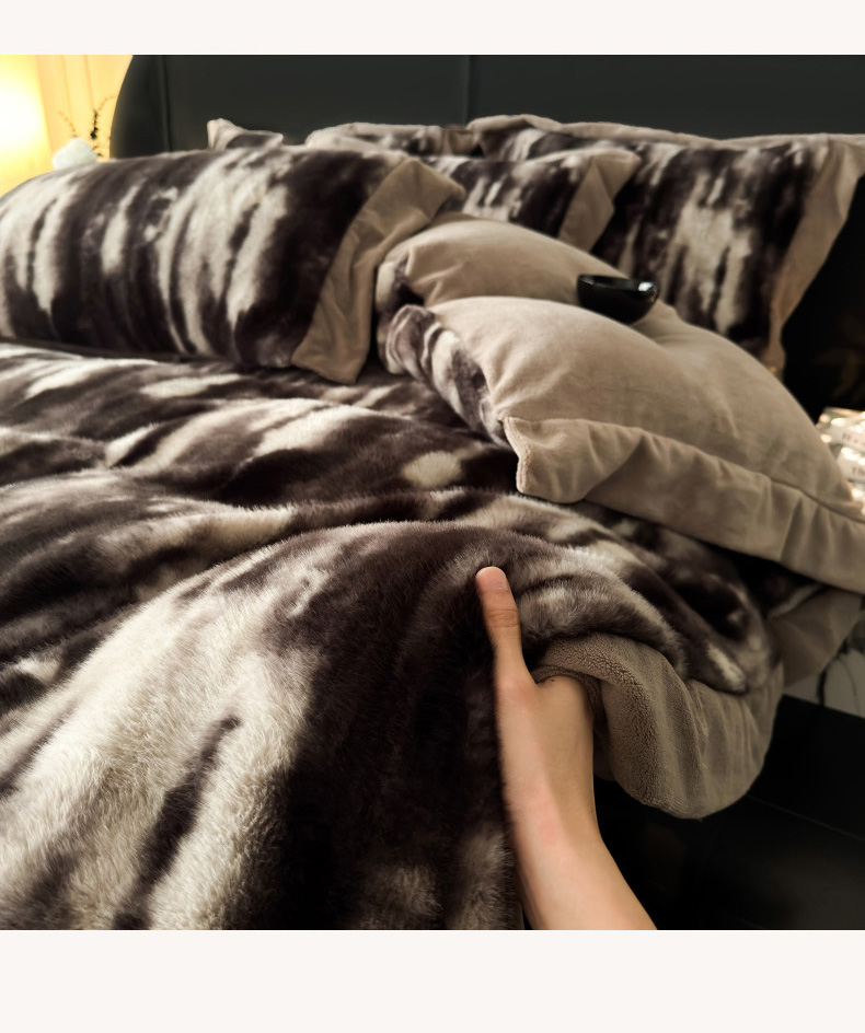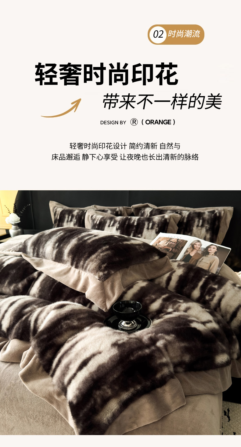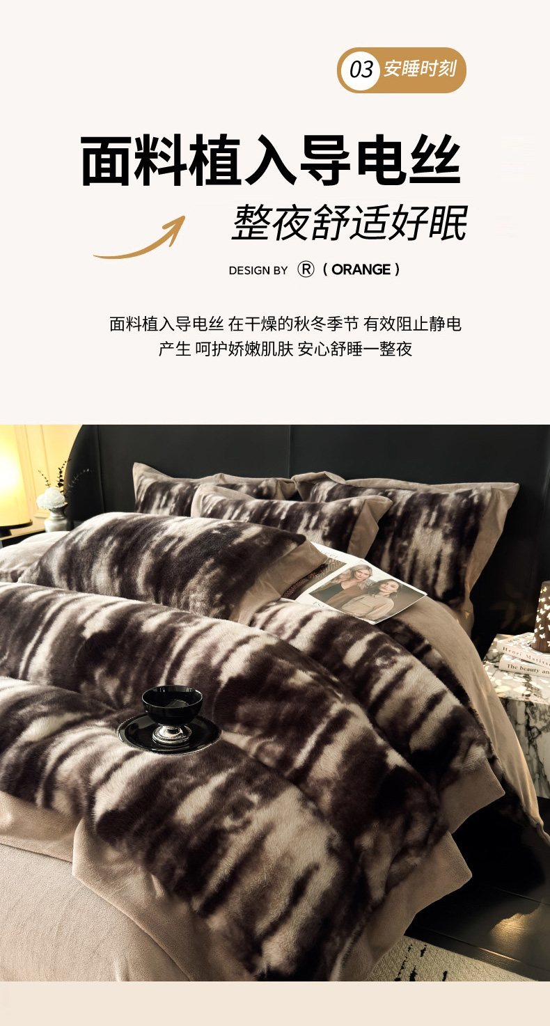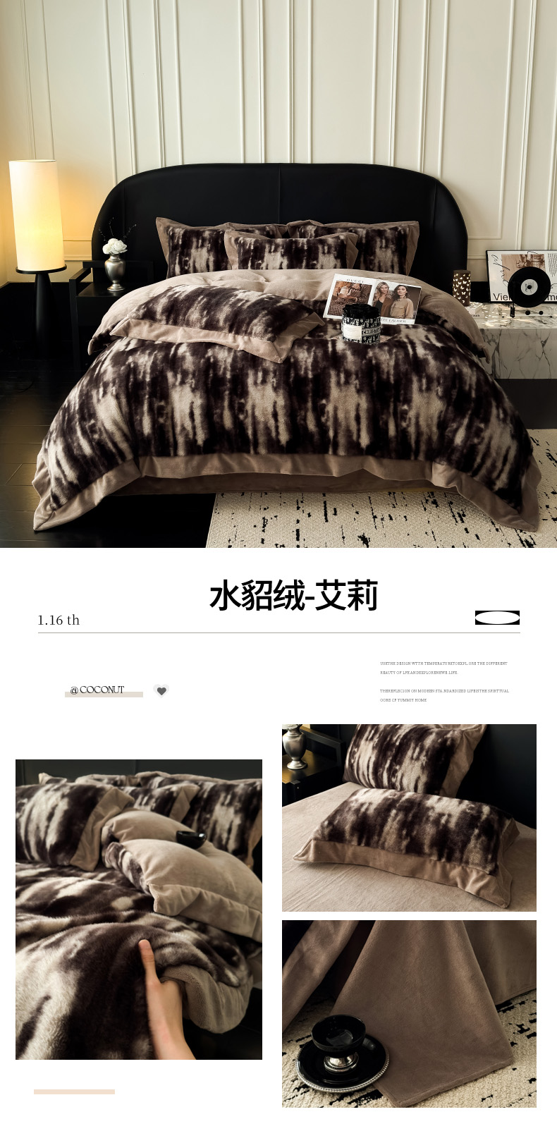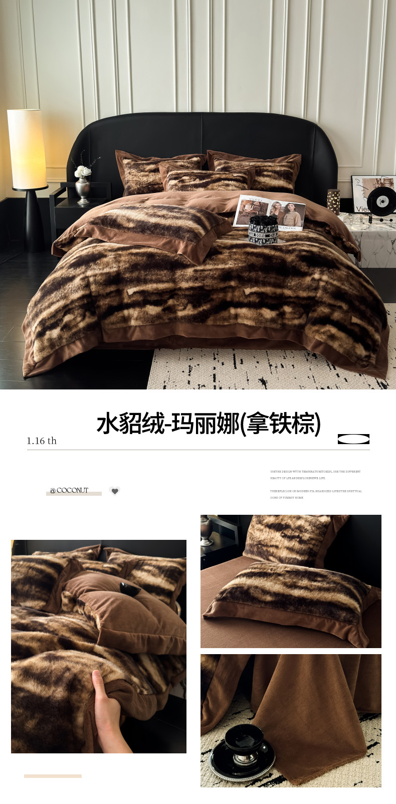 商品名称:九花鹿 2025新款宽边水貂绒皮草绒四件套 水貂绒-巴洛克