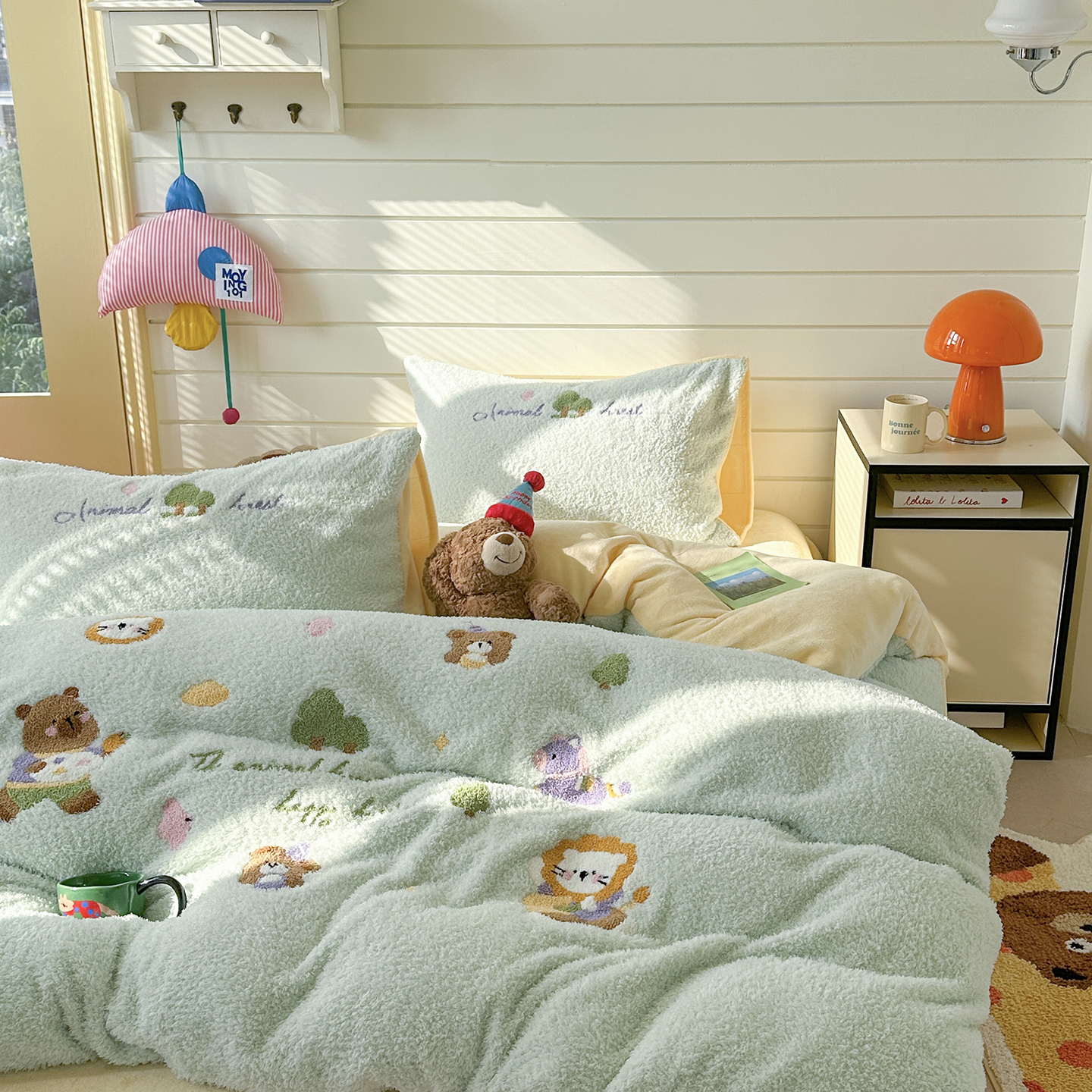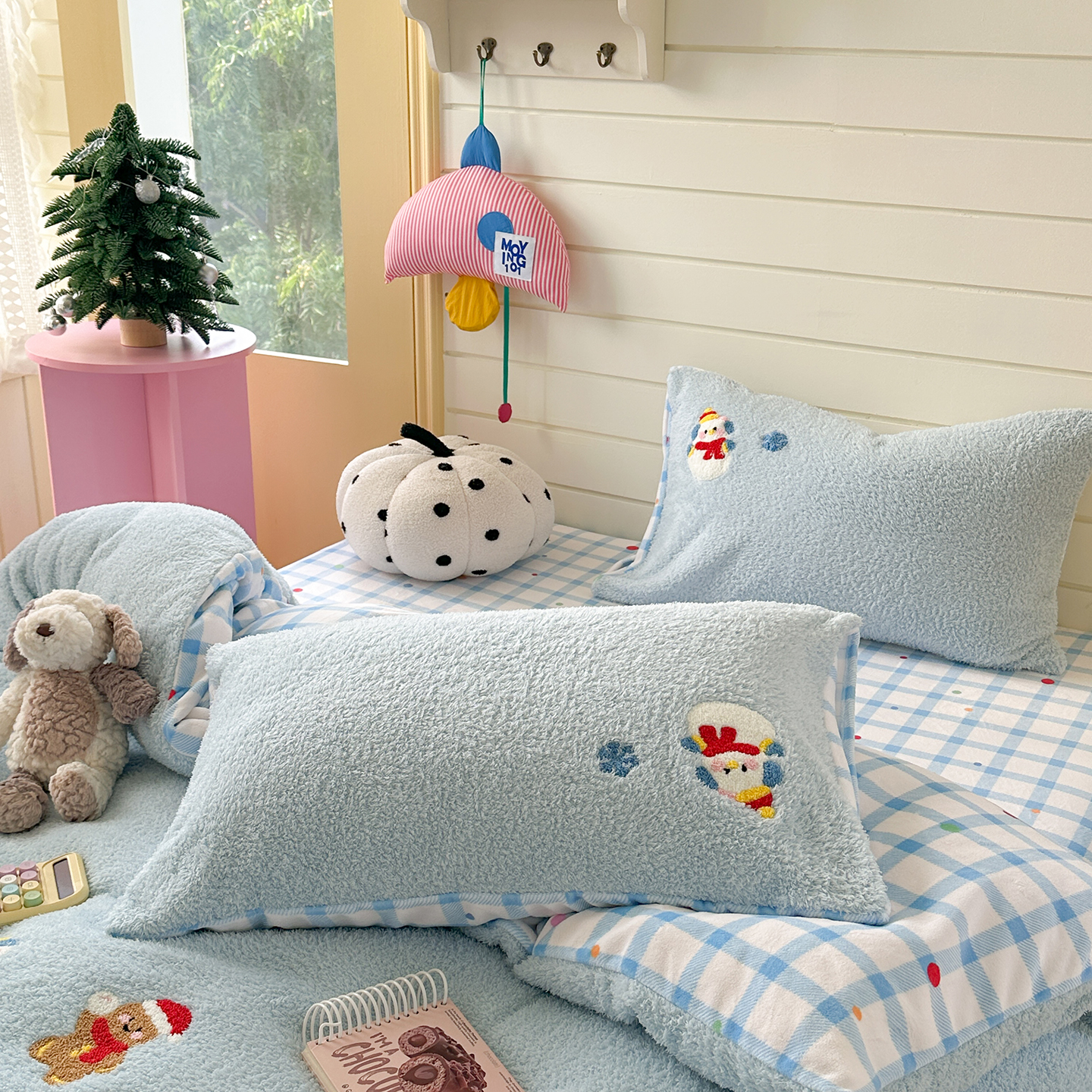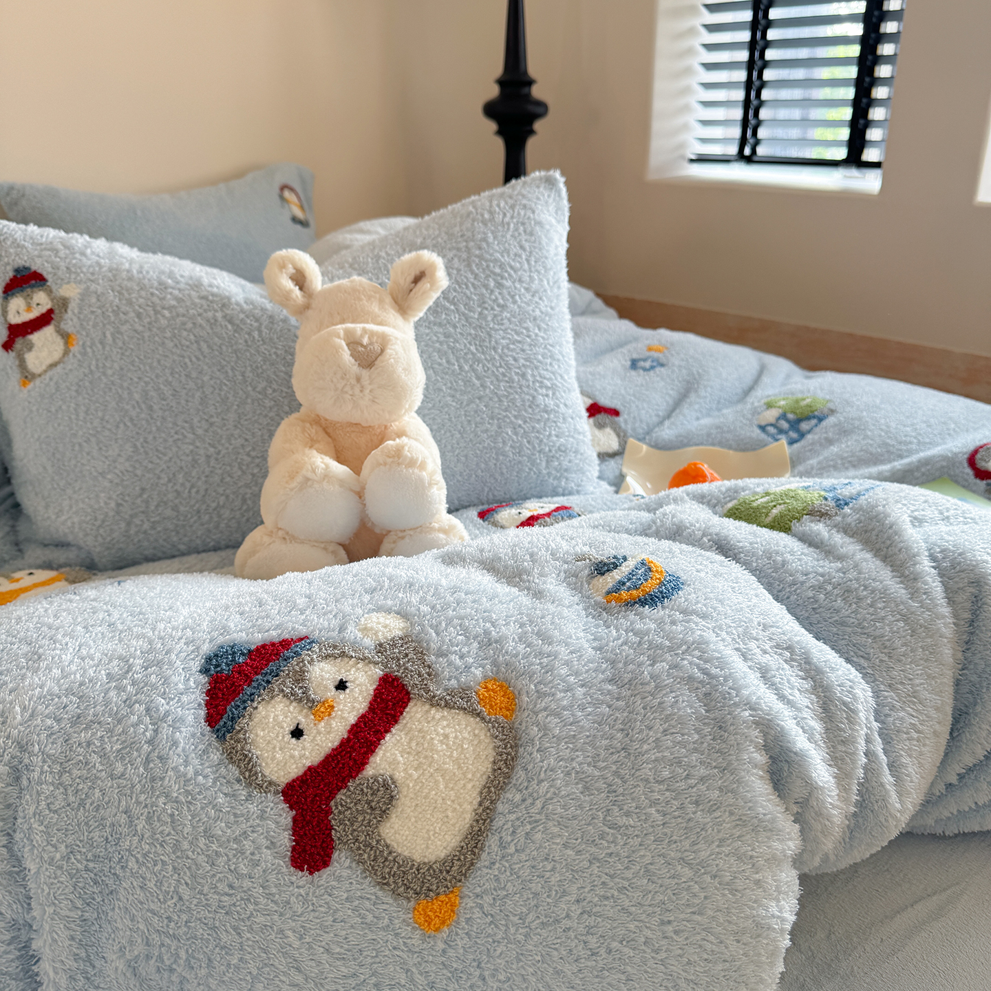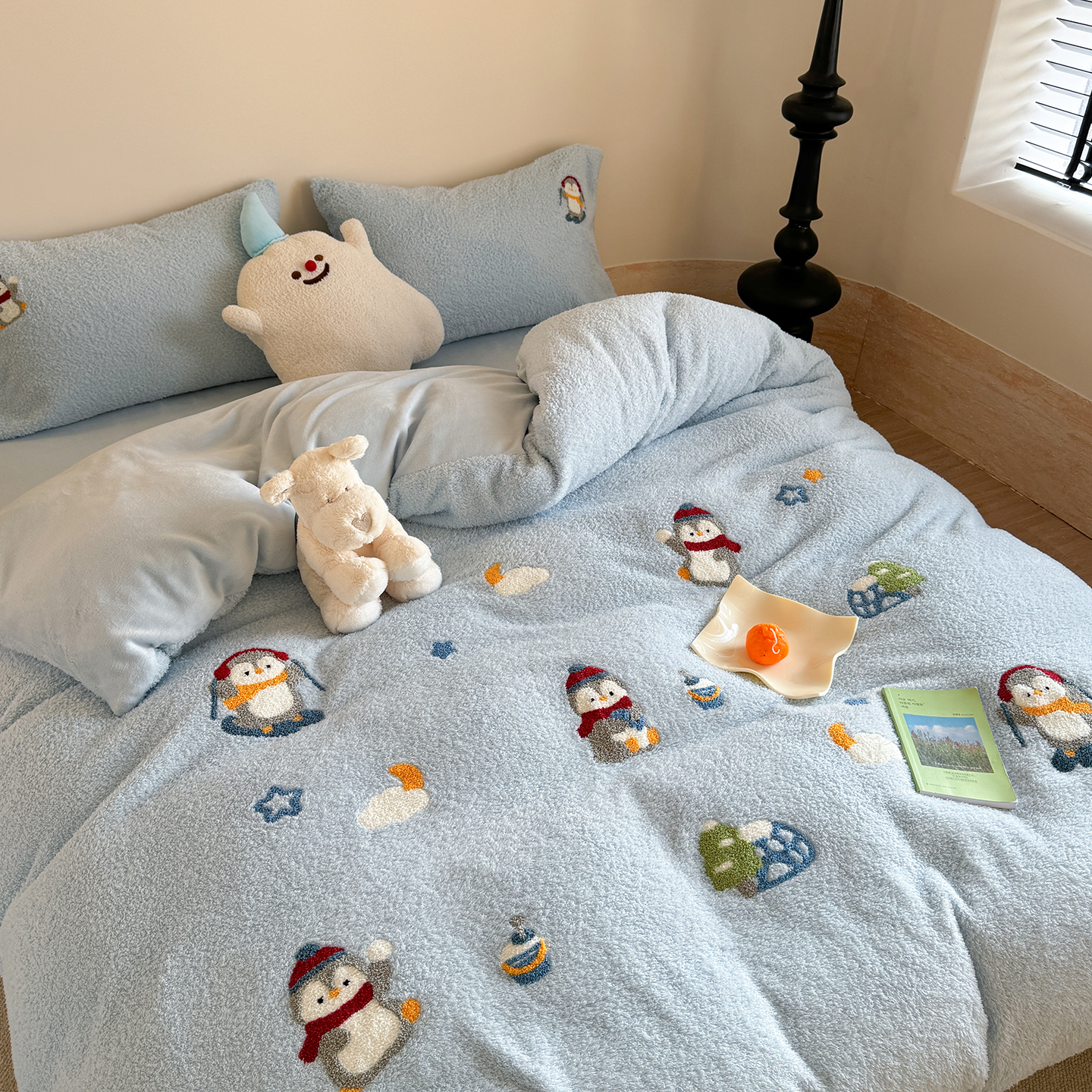 (总)柚子YOUTH 2025新款双面泰迪绒毛巾绣四件套,甜甜圈,快乐企鹅,森林聚会,甜酷KT,小茄子,雪人王国