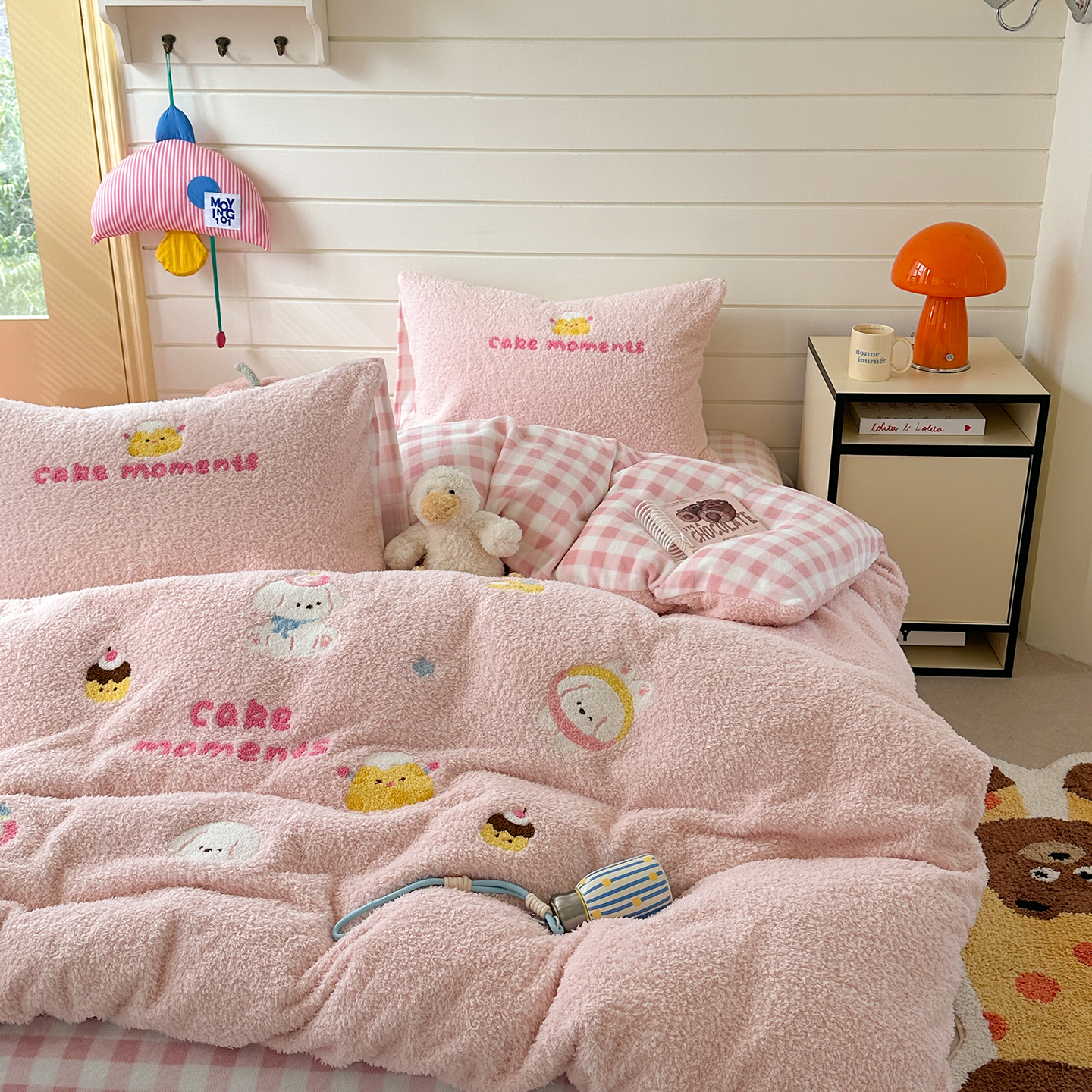 商品名称:柚子YOUTH 2025新款双面泰迪绒毛巾绣四件套 甜酷KT