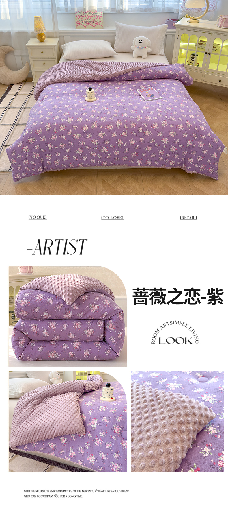 • 91家纺网 家纺一手货源 找家纺 好梦来家纺(原锦茂家纺) 2025新款水洗高克重双层纱豆豆被子加厚保暖被芯春秋被冬被 蔷薇之恋-紫