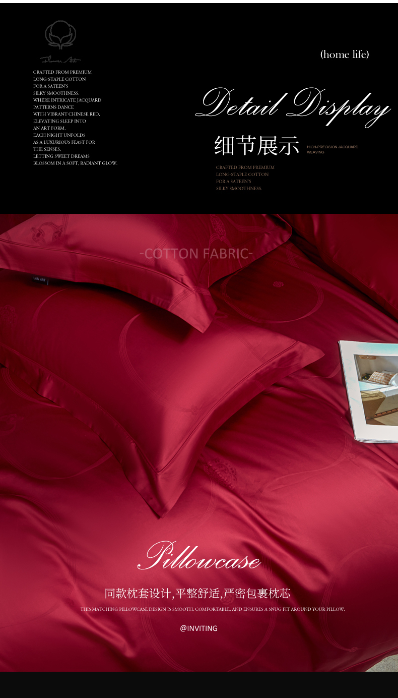 (总)洺兰家居 2025新款新疆长绒棉纯棉60支大提花大红婚庆埋绳款四件套