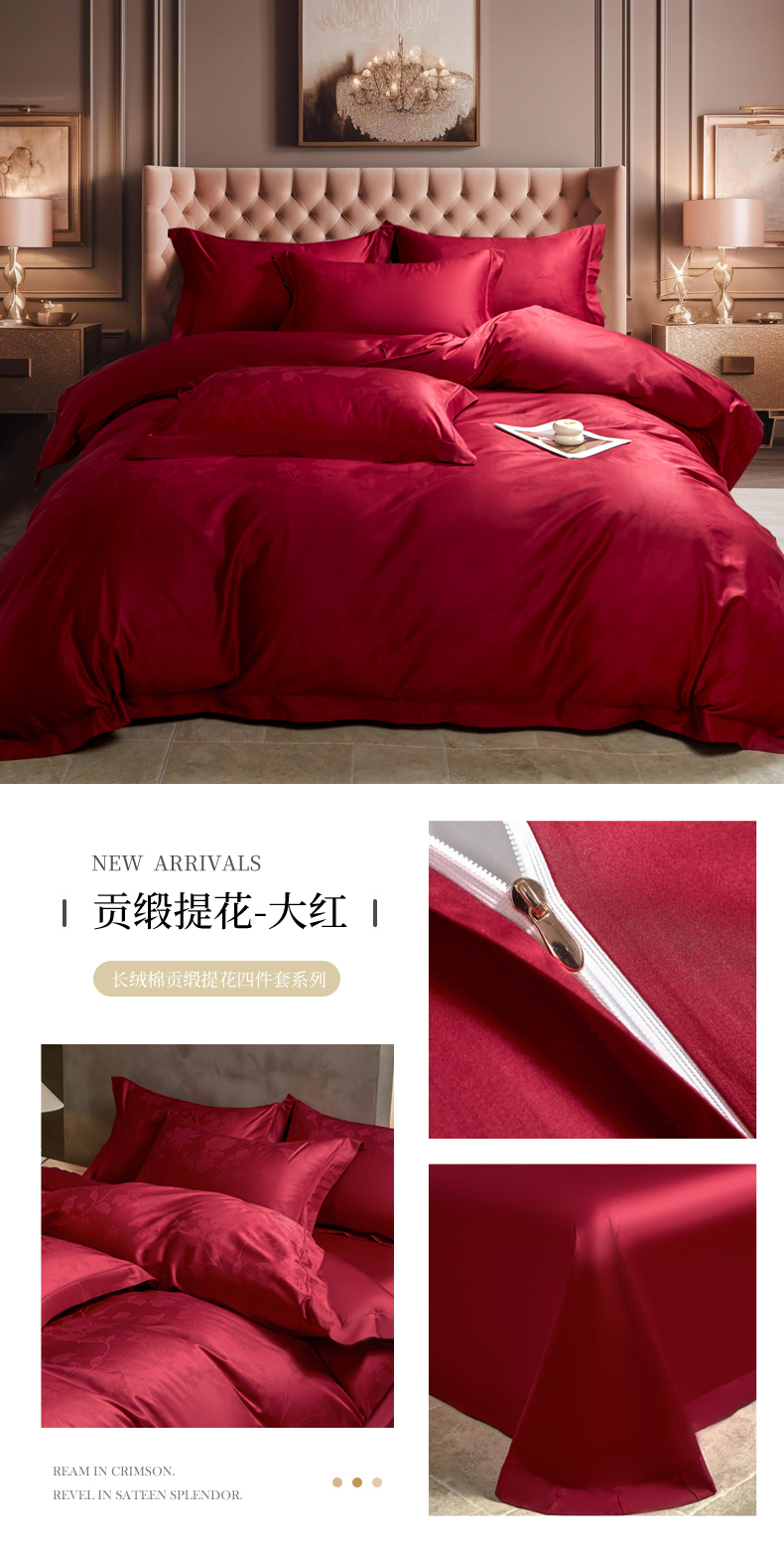 商品名称:(总)洺兰家居 2025新款新疆长绒棉纯棉60支大提花大红婚庆埋绳款四件套