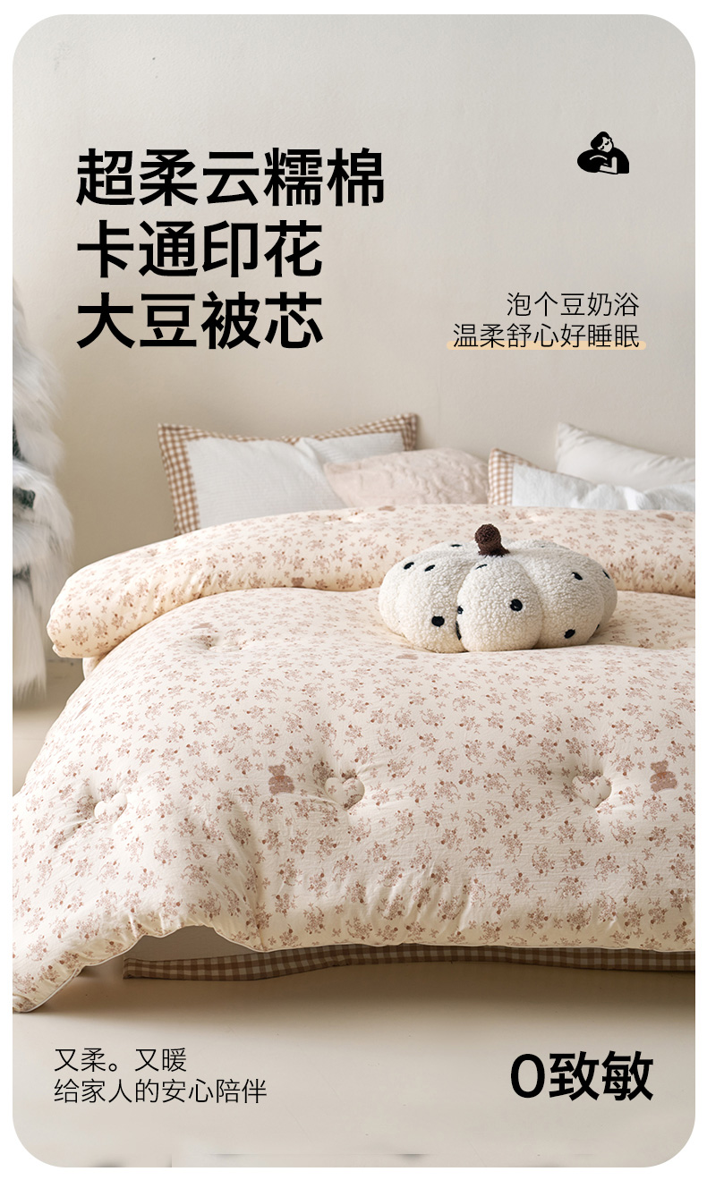 • 91家纺网 家纺一手货源 找家纺 久典家居 2025新款云糯棉印花大豆被被子被芯 小熊