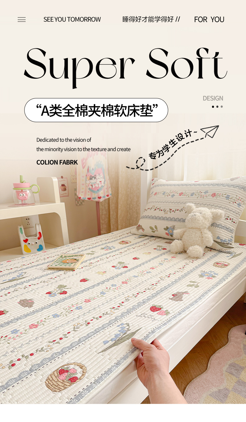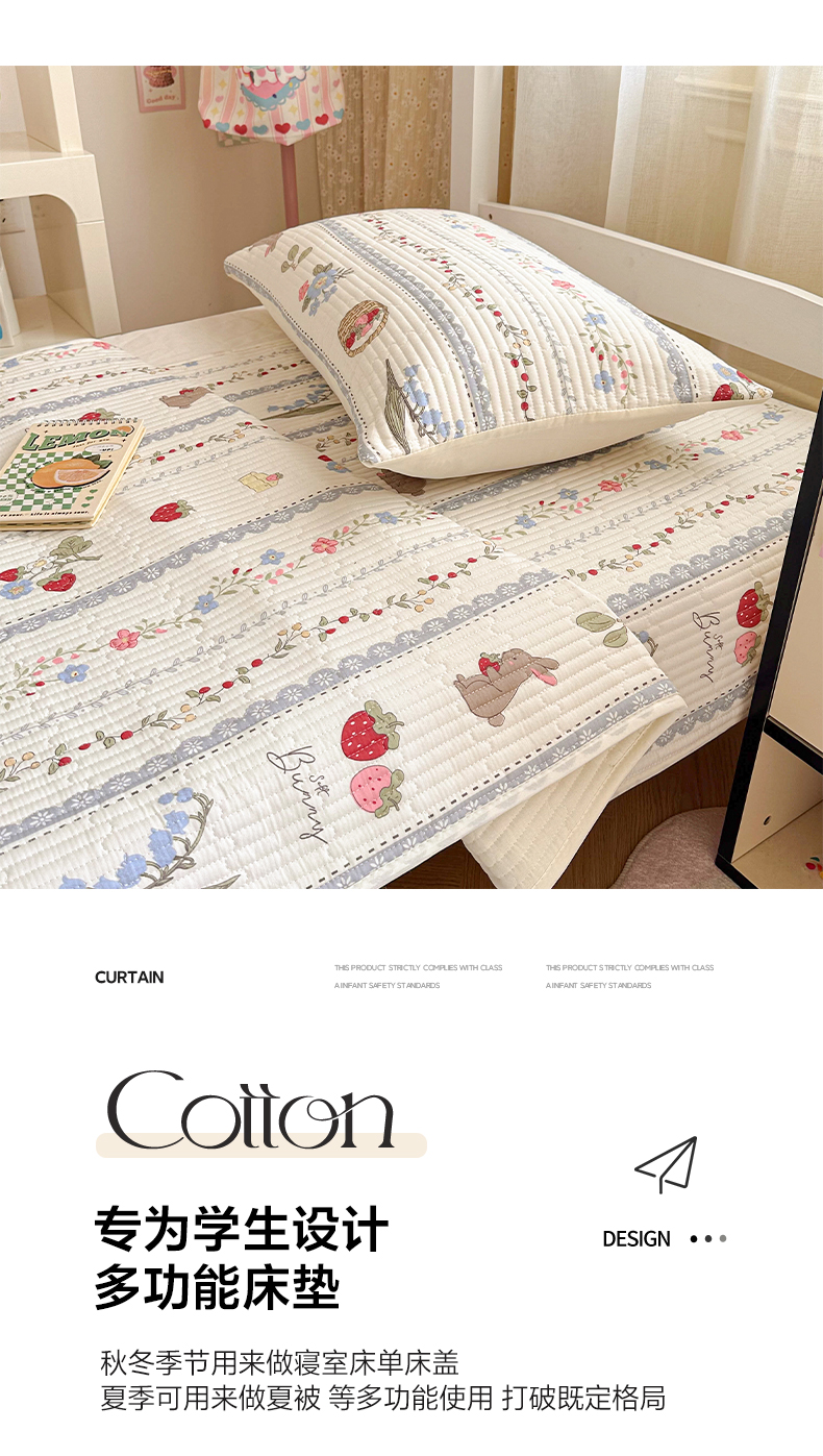当前位置: 91家纺网 > 商品网购 > 床垫/床褥 > 普通床垫 > 妮可 2025热款学生床全棉夹棉多功能床垫-床盖 花丛兔兔