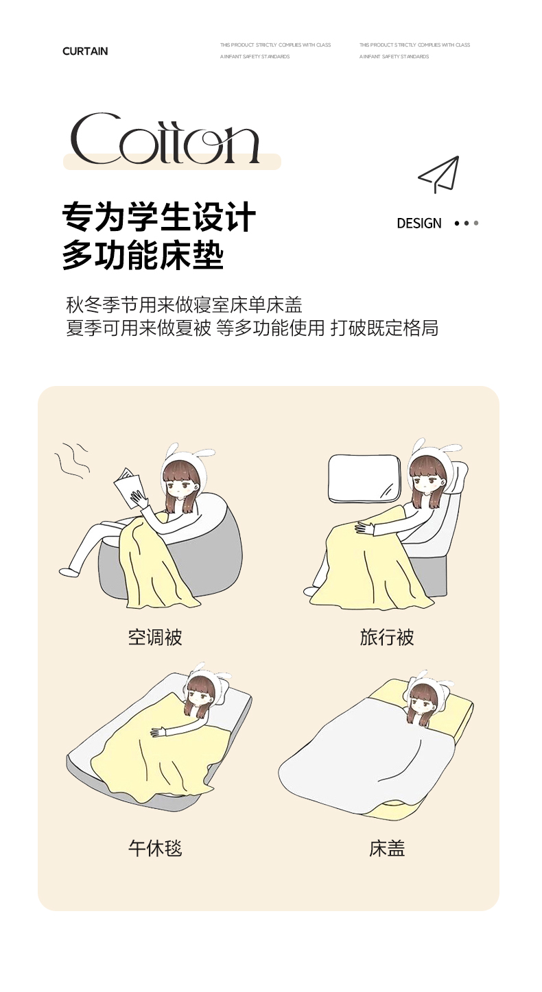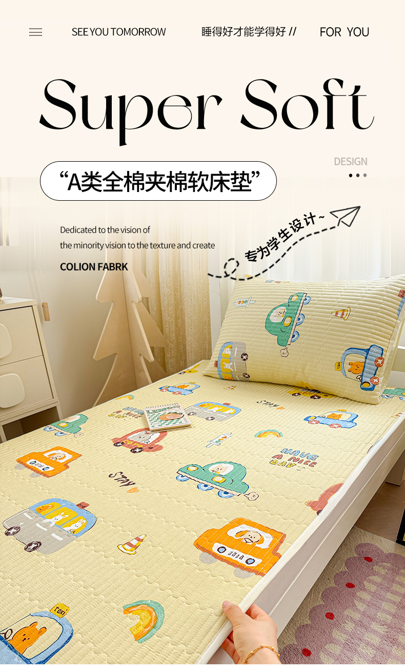 当前位置: 91家纺网 > 商品网购 > 床垫/床褥 > 普通床垫 > 妮可 2025热款学生床全棉夹棉多功能床垫-床盖 嘟嘟派对