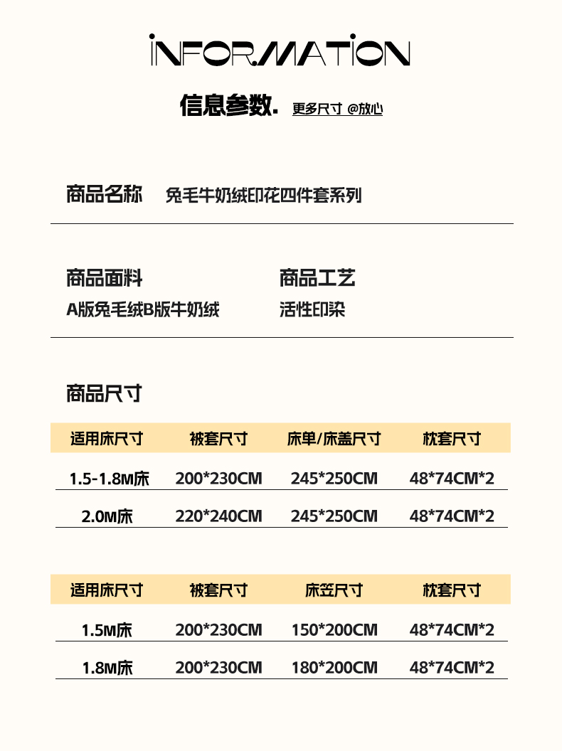 【床盖款】1.8四件套-被套200x230 | ¥125.00 |