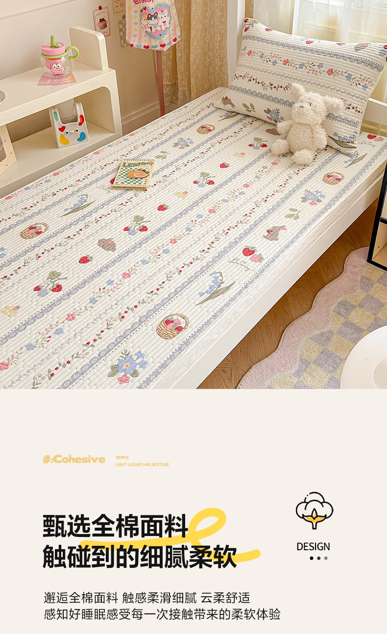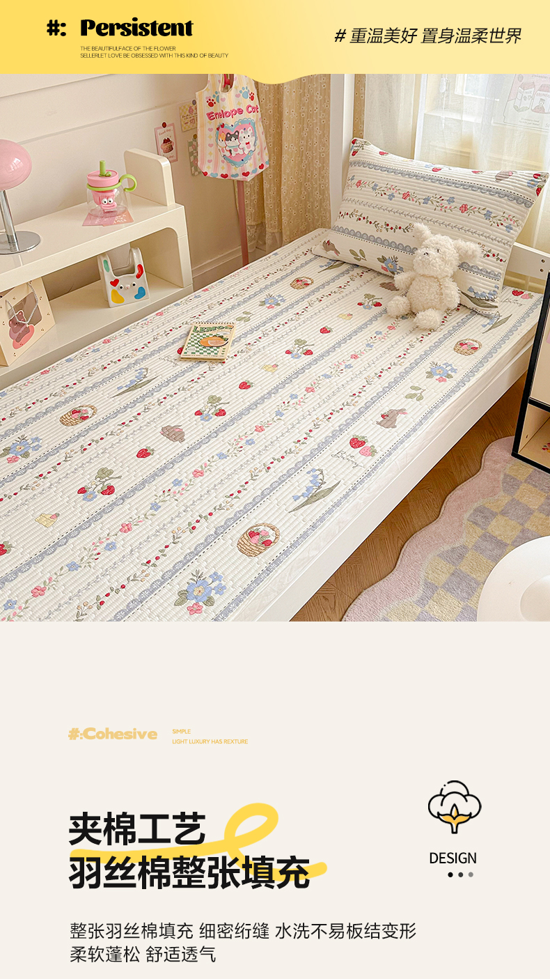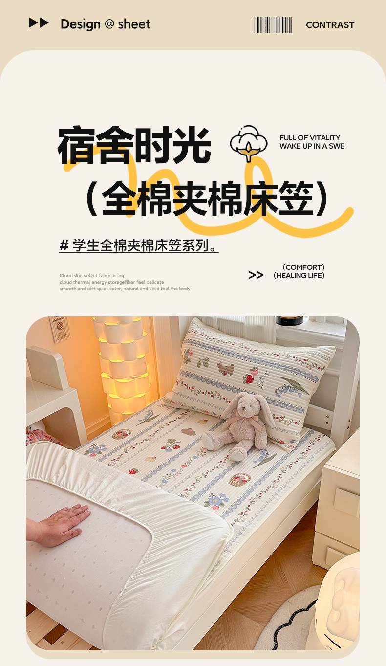 • 91家纺网 家纺一手货源 找家纺 妮可 2025新款卡通印花学生宿舍原棉夹棉床笠系列 花丛