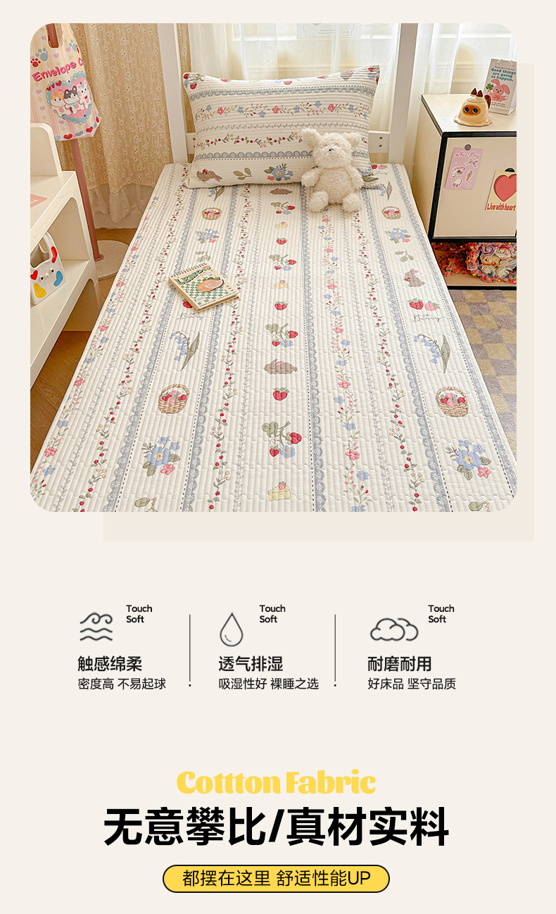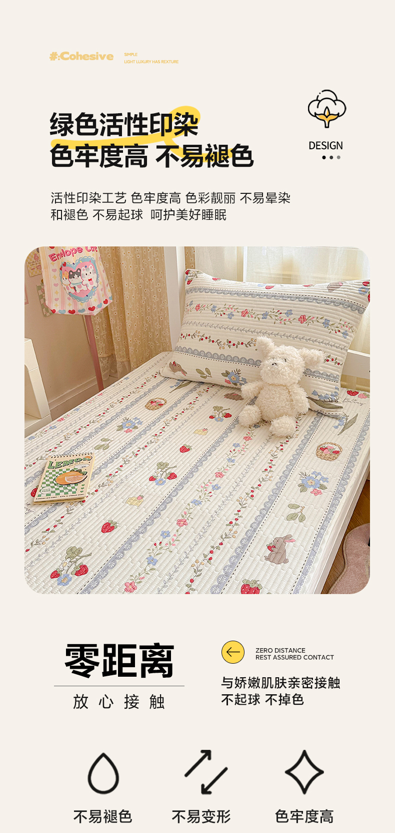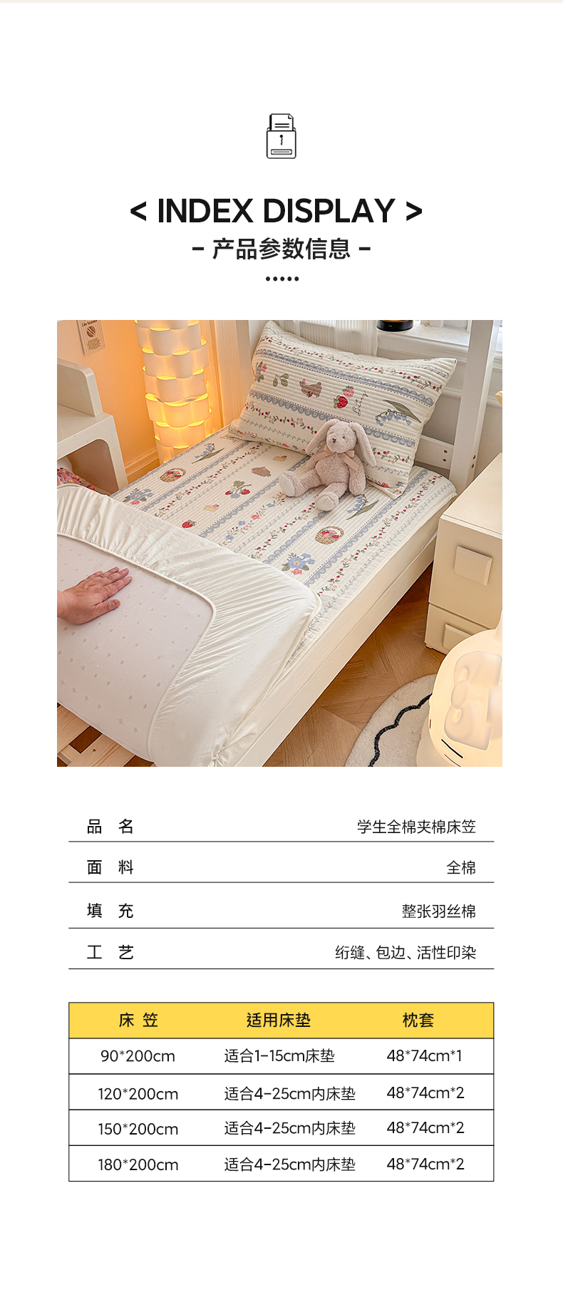 • 91家纺网 家纺一手货源 找家纺 妮可 2025新款卡通印花学生宿舍原棉夹棉床笠系列 花丛