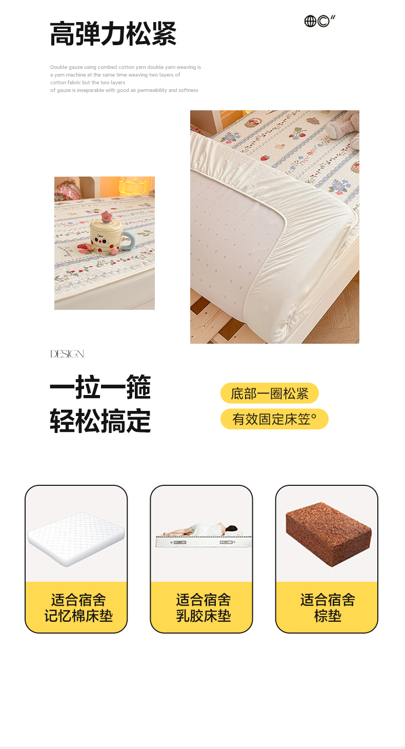 妮可 2025新款卡通印花学生宿舍原棉夹棉床笠系列 花丛