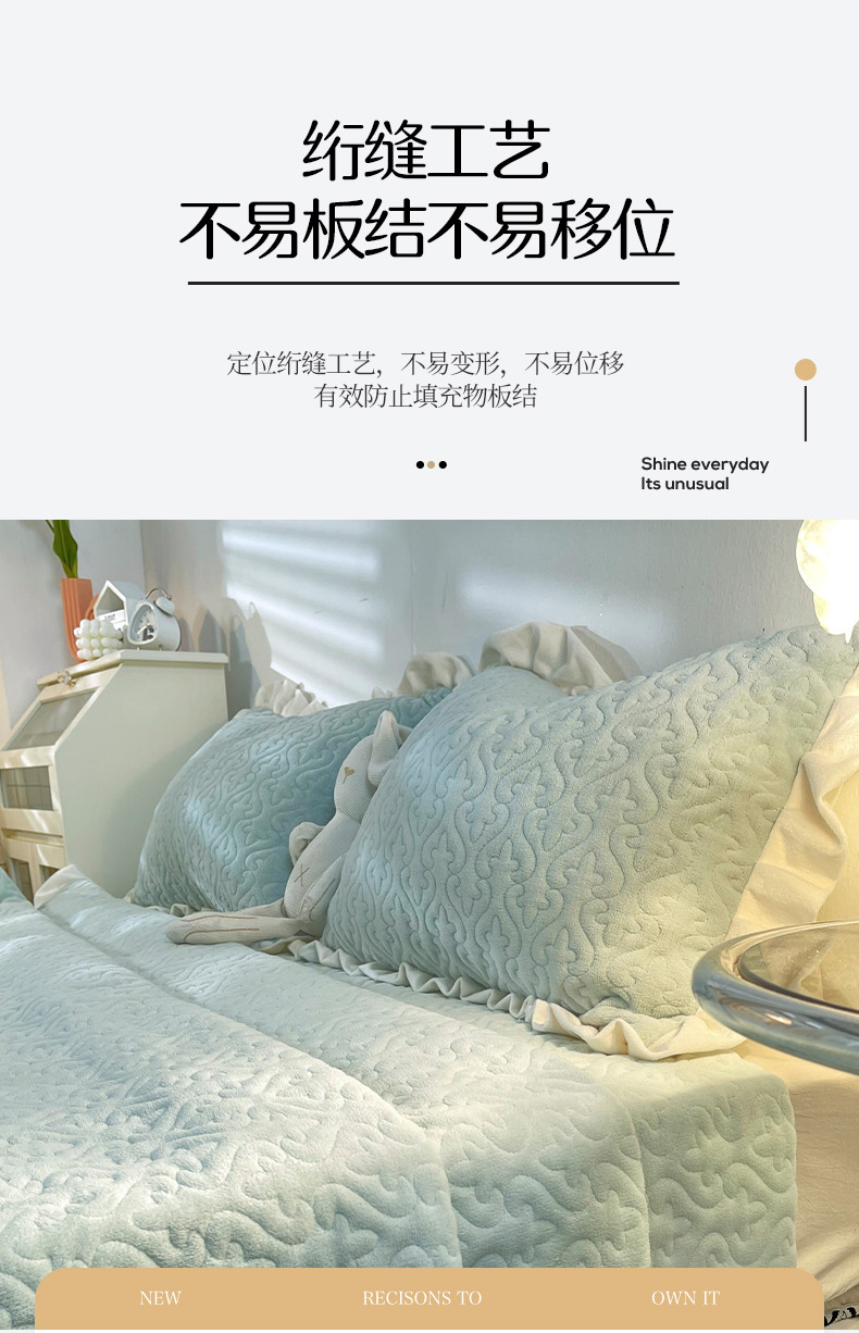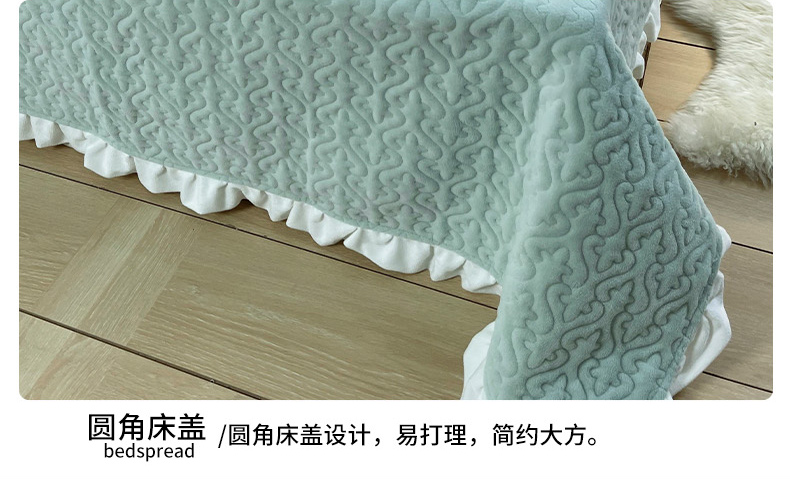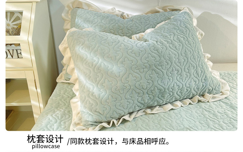 妮可 2025秋冬新款加厚牛奶绒多功能荷叶边纯色床盖 抹茶绿