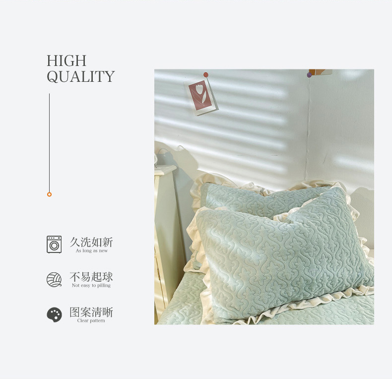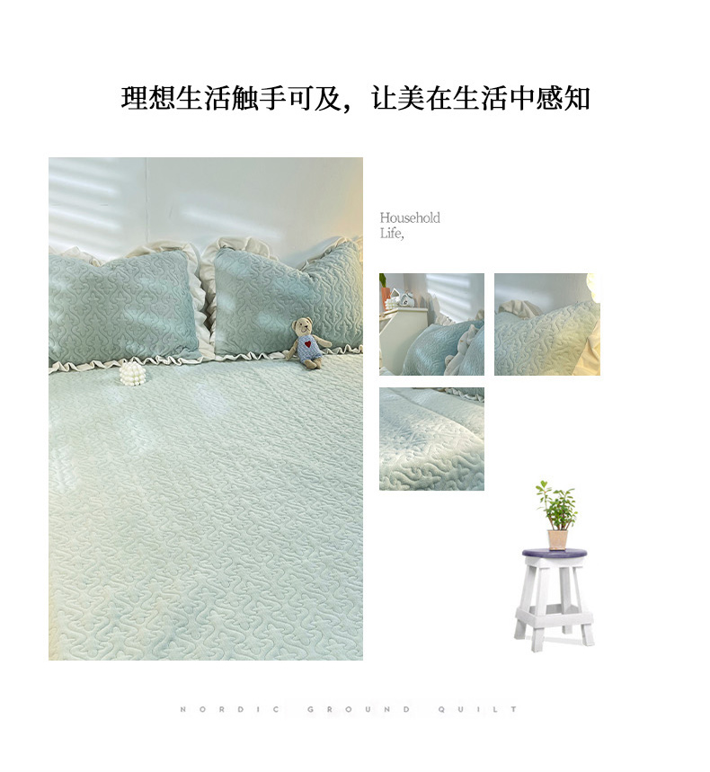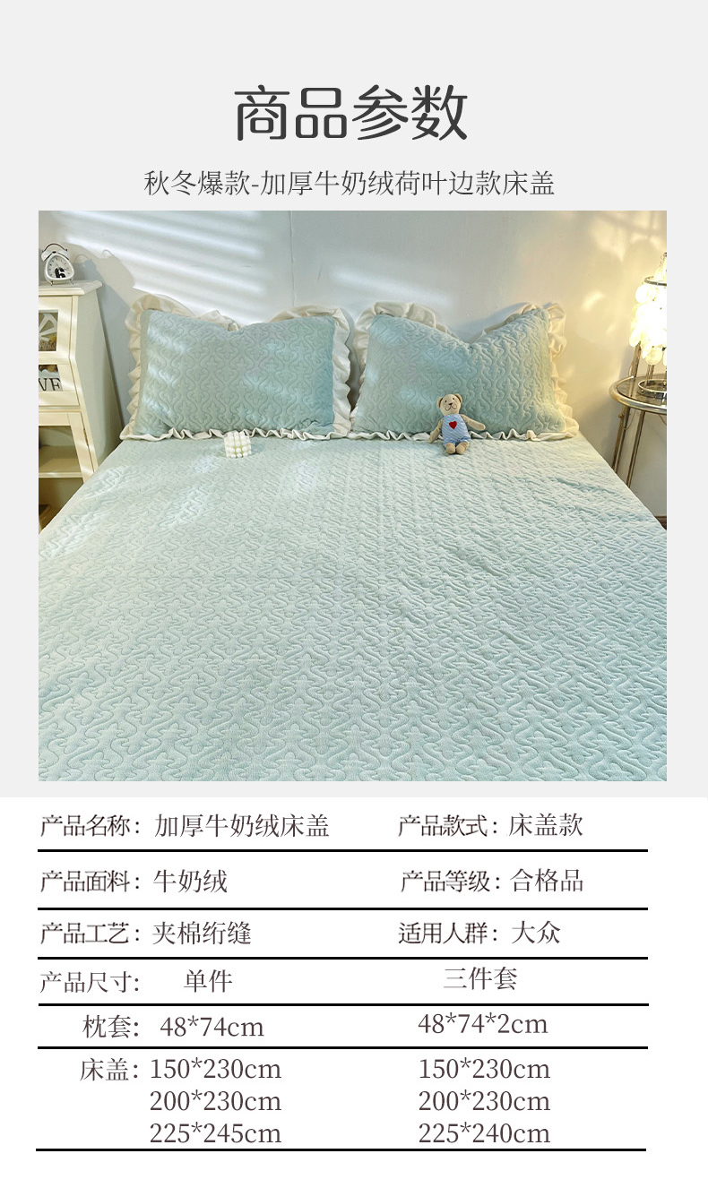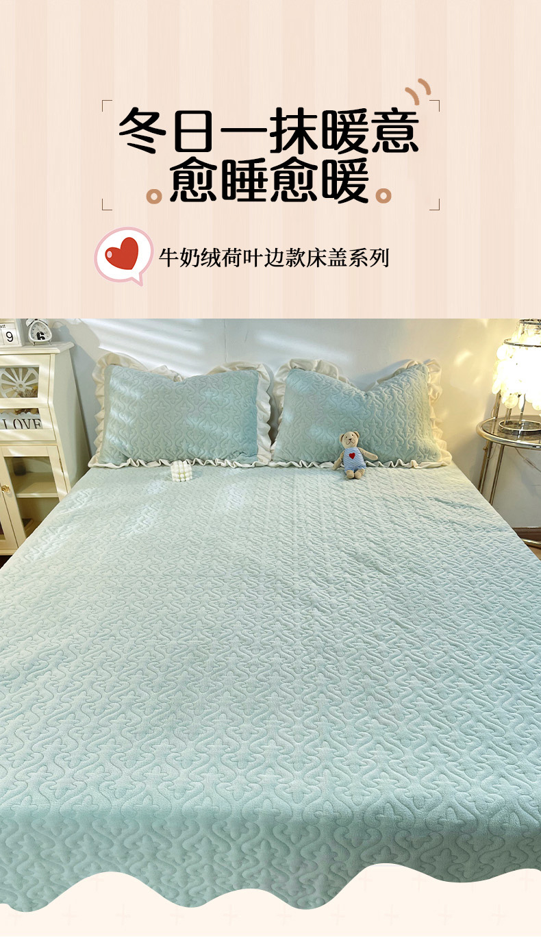• 91家纺网 家纺一手货源 找家纺 妮可 2025秋冬新款加厚牛奶绒多功能荷叶边纯色床盖 抹茶绿