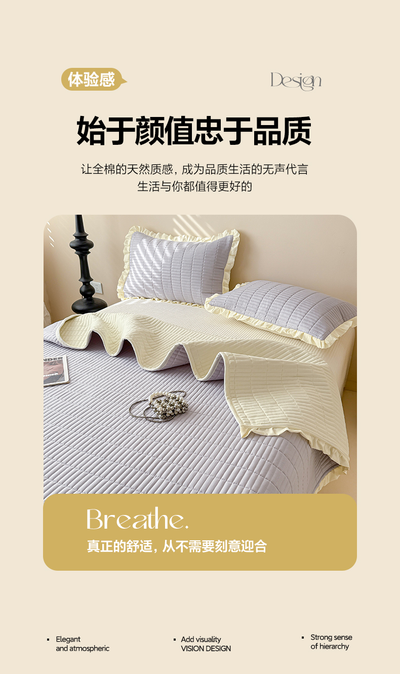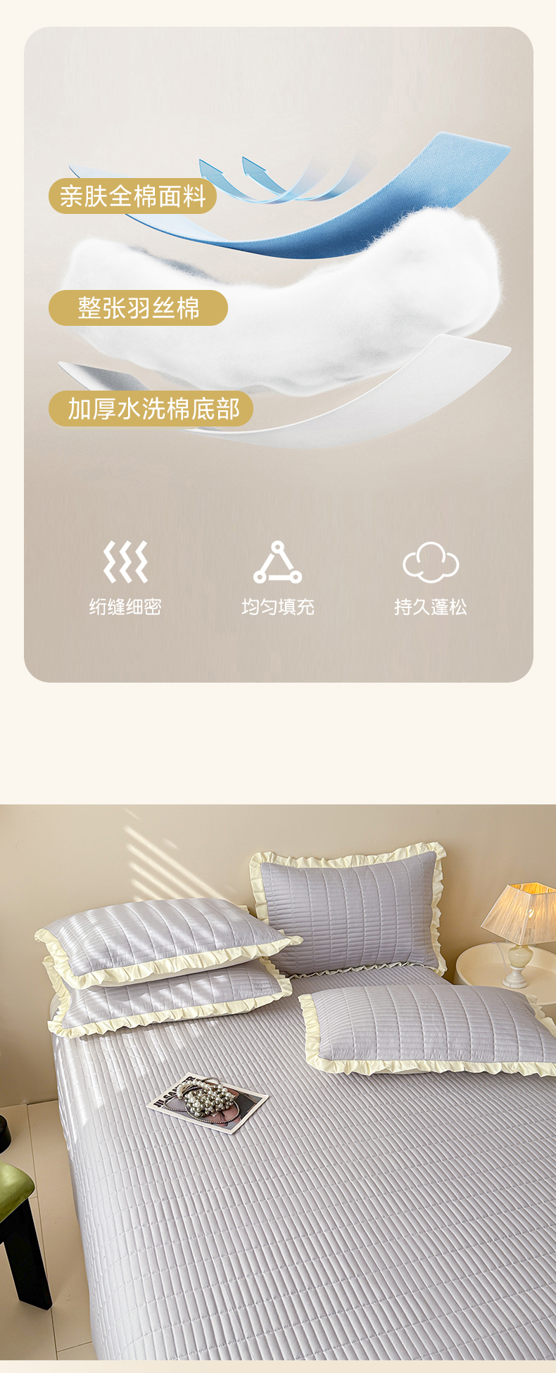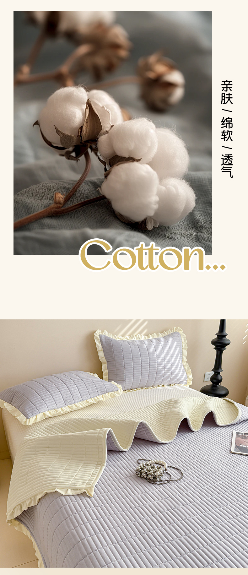 • 91家纺网 家纺一手货源 找家纺 (总)妮可 2025新款荷叶边纯棉绗缝四季款多功能床盖,奶油黄,冰湖蓝,豆豆沙,梦幻粉,气质灰,森林绿,芝兰紫