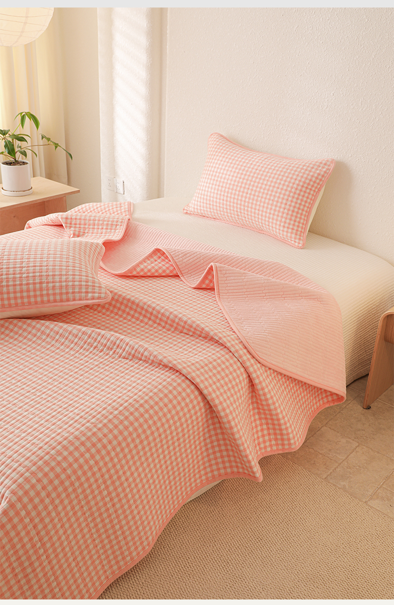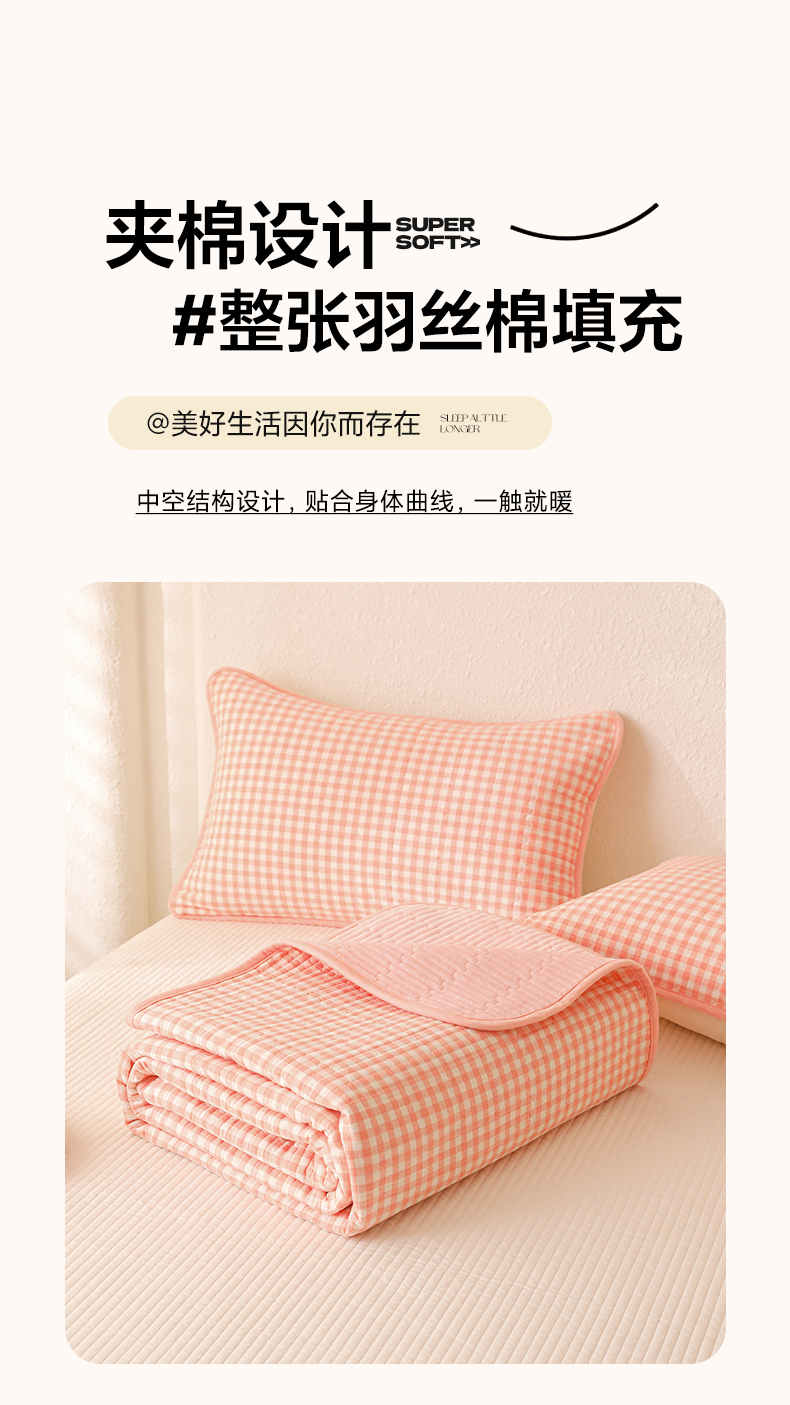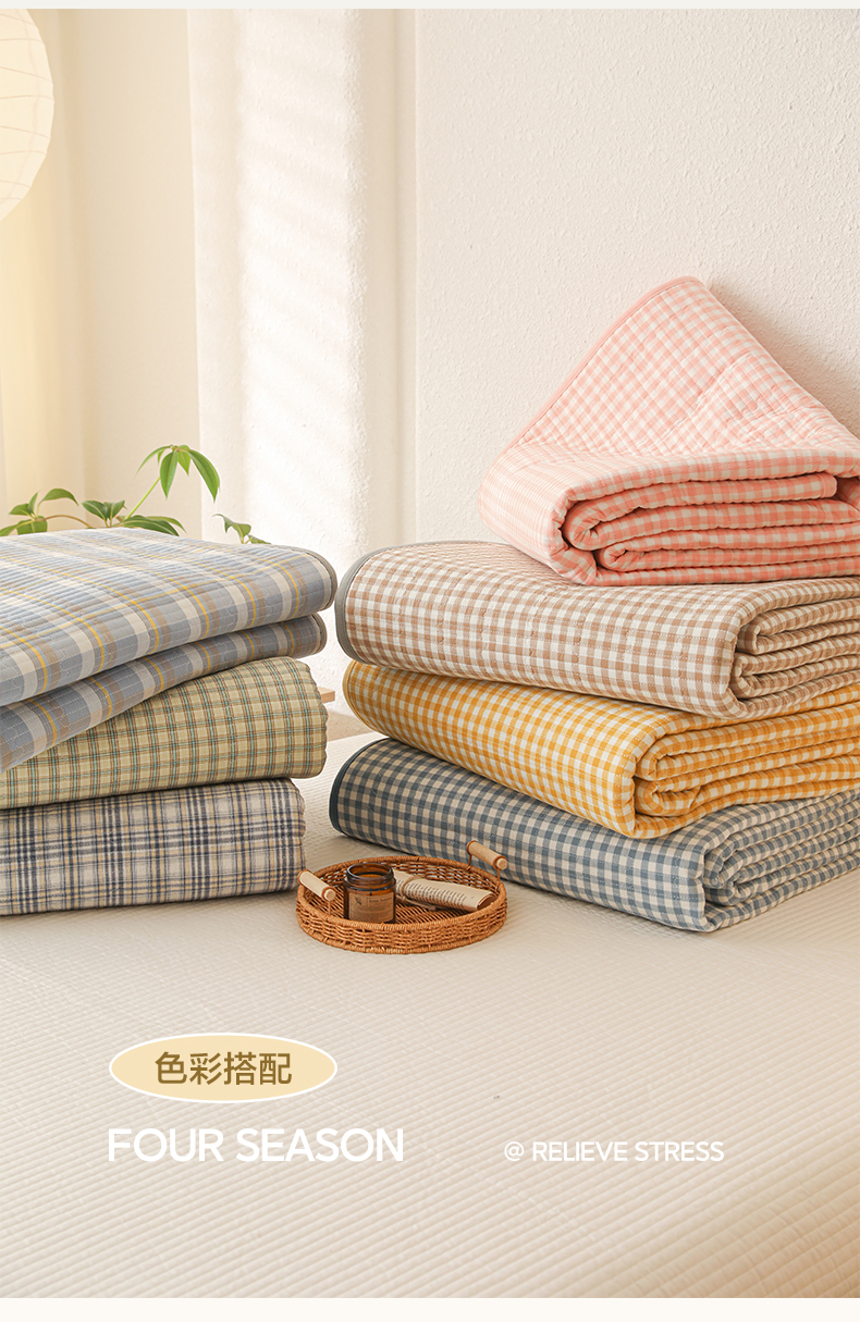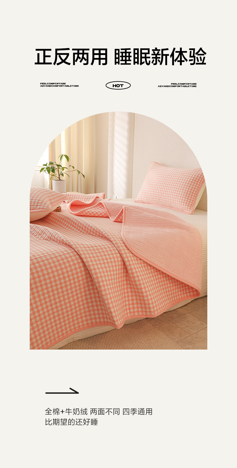 (总)妮可 2025新款全棉色织水洗棉一面棉一面绒四季可用床盖系列