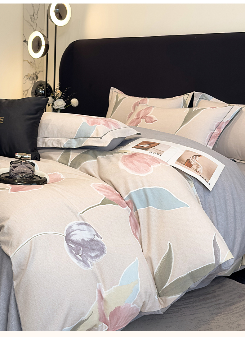 商品名称:雲归梦 2025新款全棉火山磨毛精梳棉生态磨毛纯棉四件套 轻盈花语豆沙