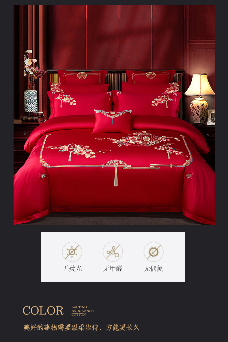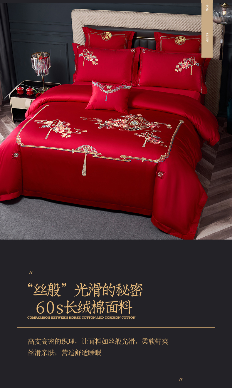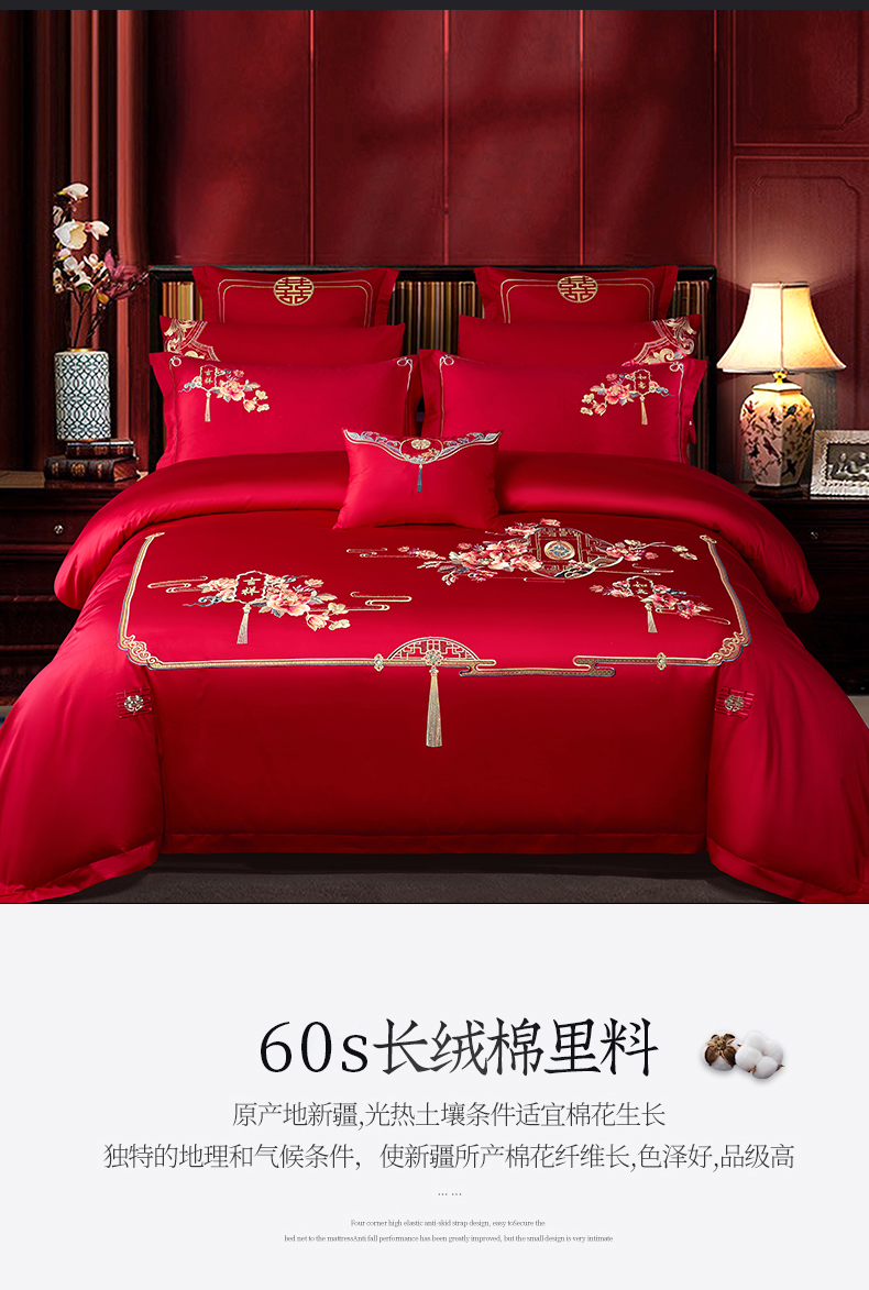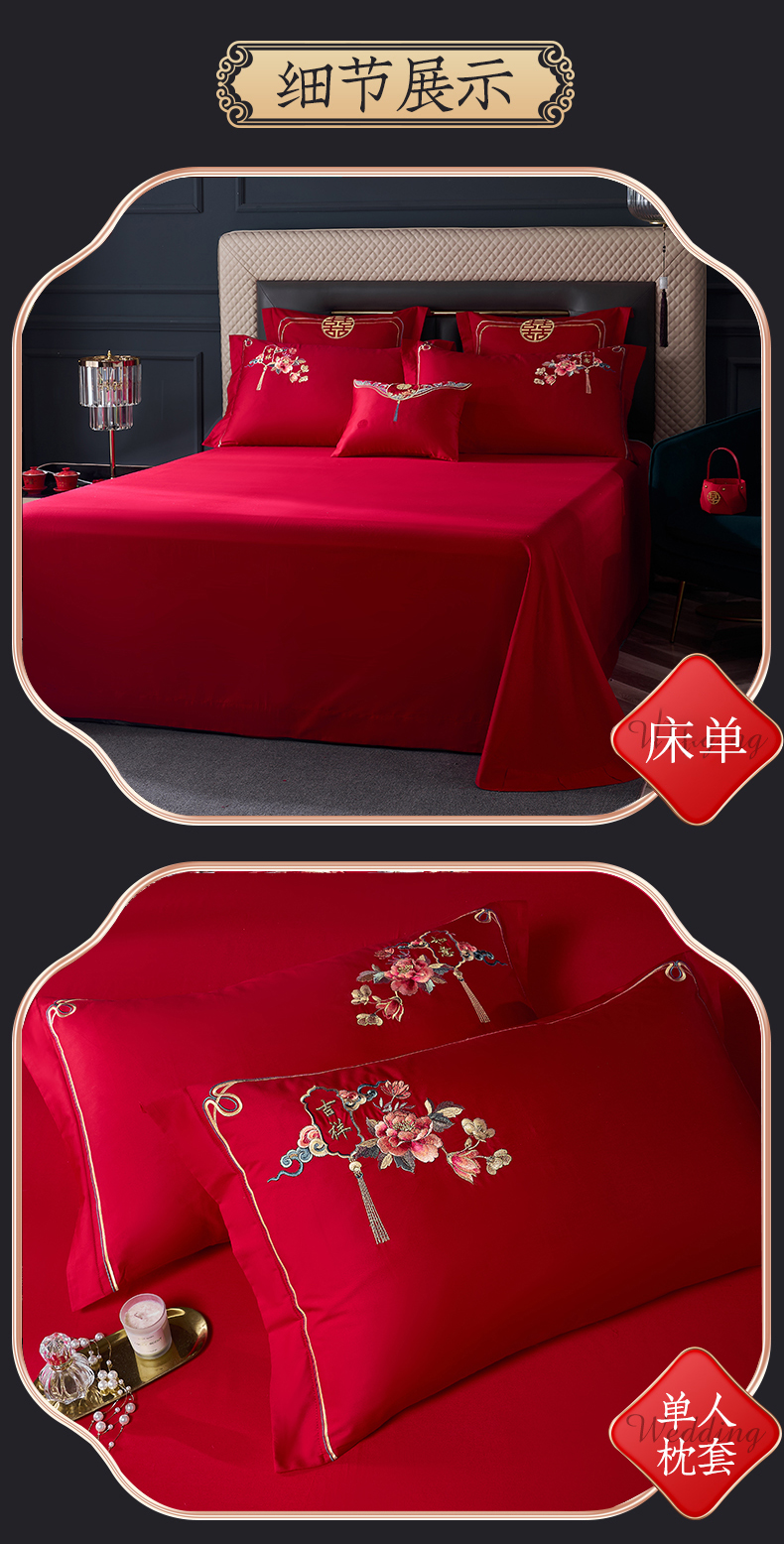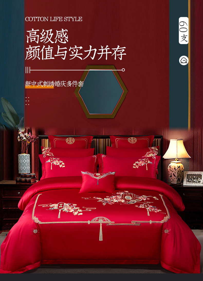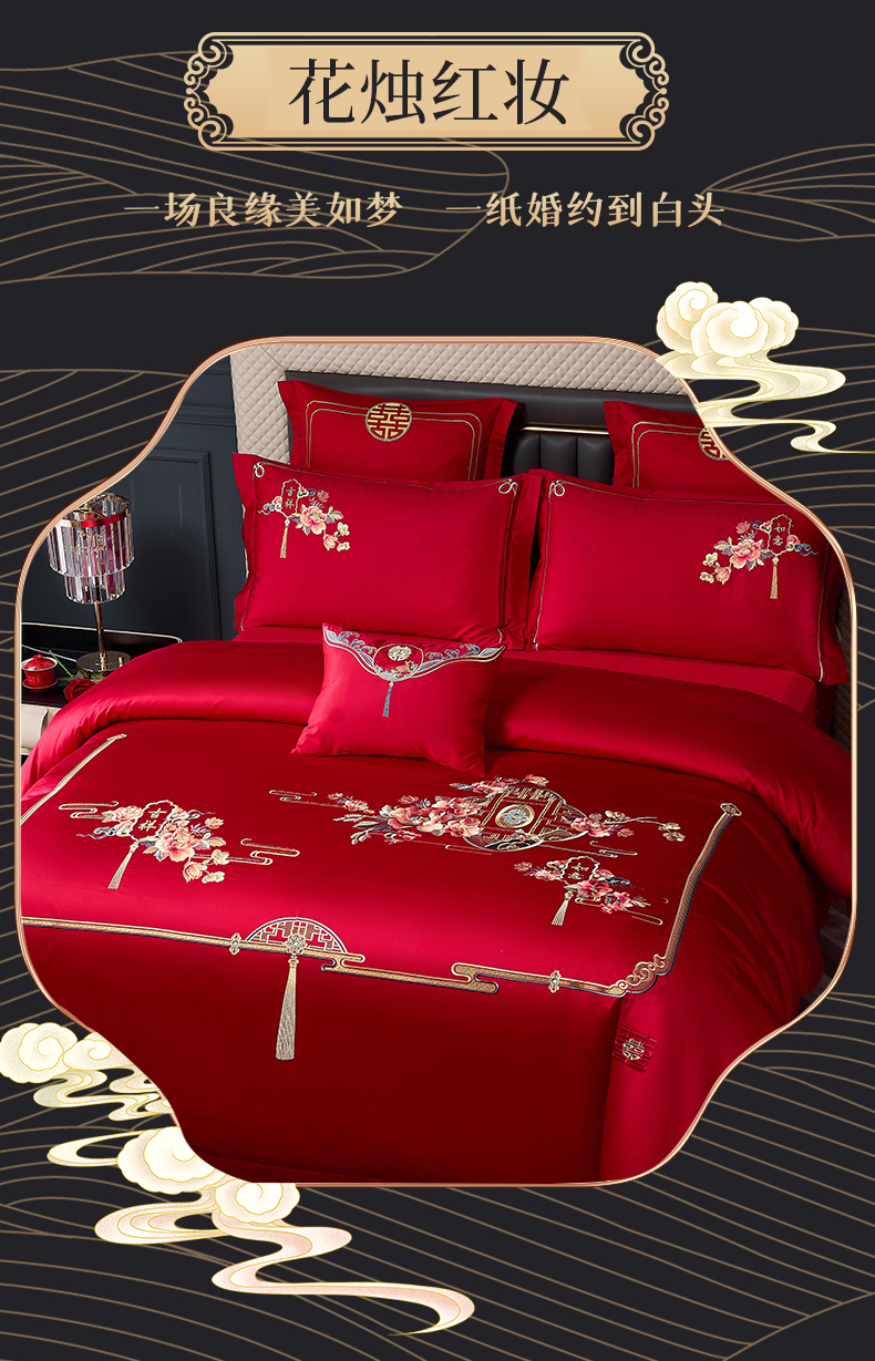 当前位置: 91家纺网 > 商品网购 > 床品套件 > 四件套 > 婚庆四件套 > 博之洋婚庆 2025新款全棉新中式刺绣款婚庆四件套多件套 花烛红妆