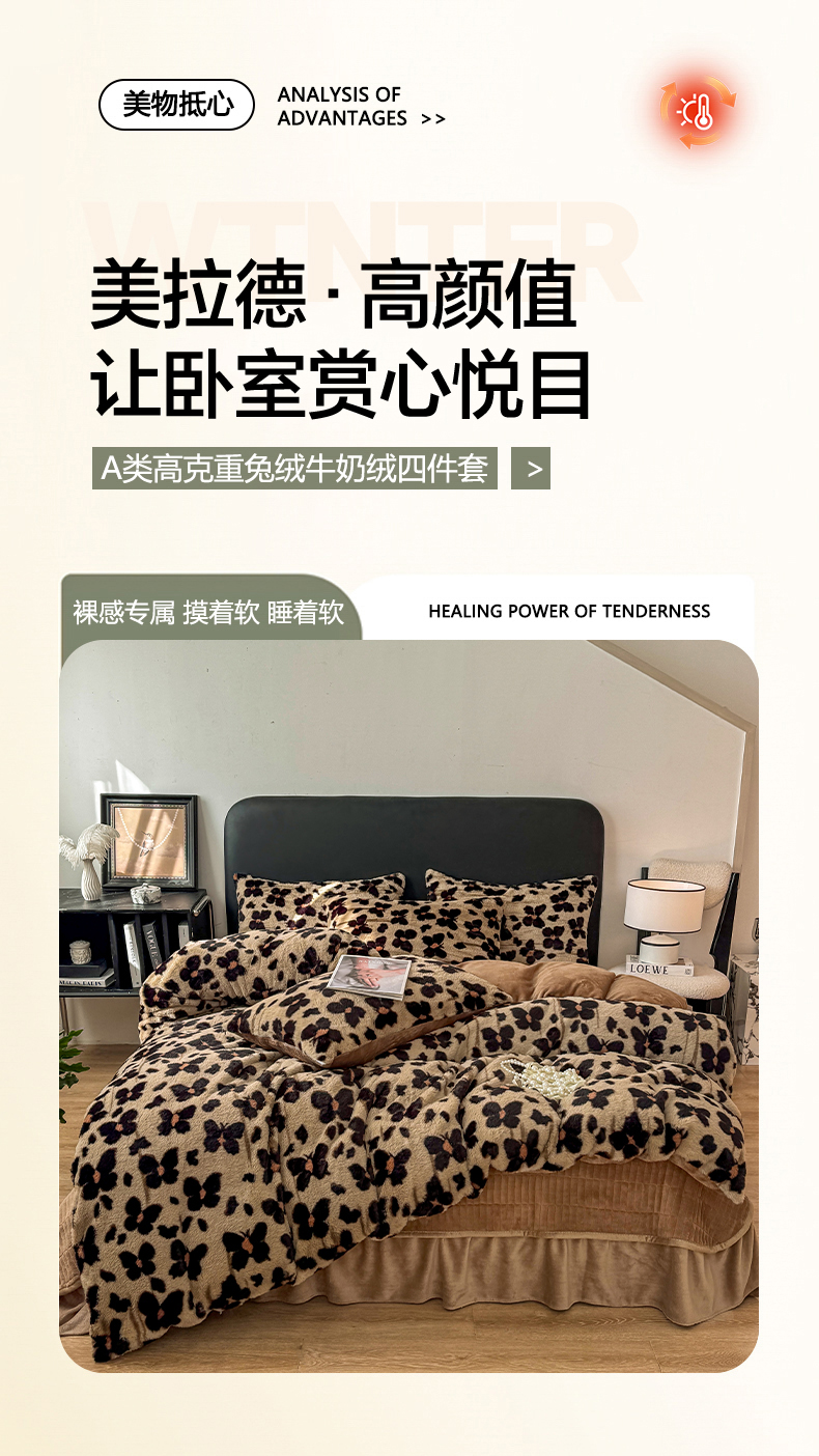 当前位置: 91家纺网 > 商品网购 > 床品套件 > 四件套 > 牛奶绒四件套 > 乐窝家纺仓储 2025新款【8斤重】轻奢复古美拉德兔兔绒牛奶绒床单床笠床盖款四件套(日发50套优惠8元一套) 蝶舞