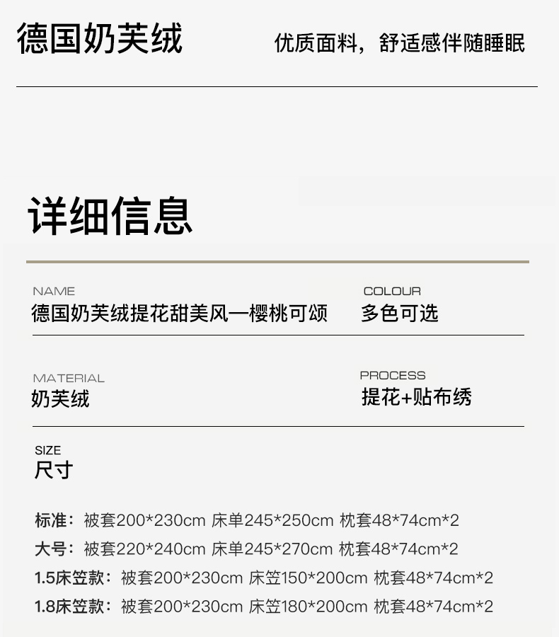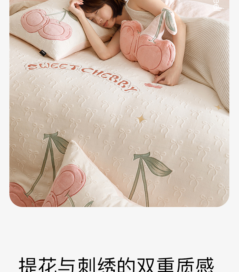商品名称:卡姿家纺 2025秋冬德国奶芙绒提花甜美风—樱桃可颂 樱桃可颂-奶白