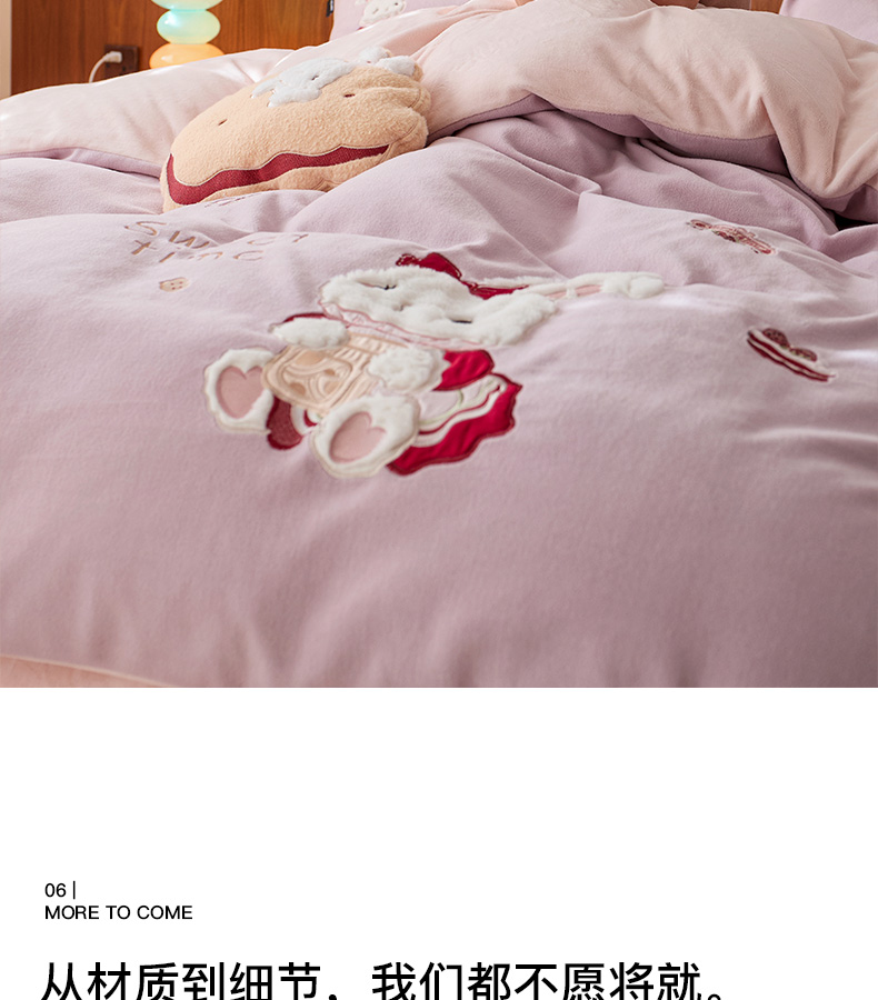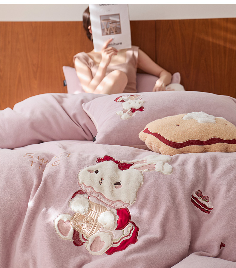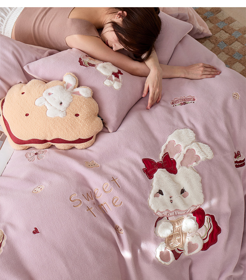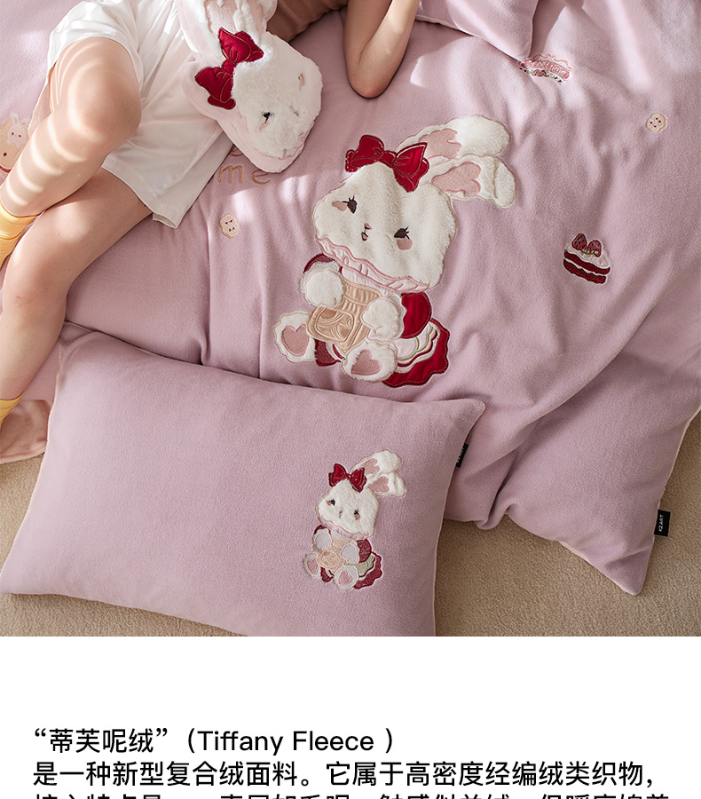 商品名称:卡姿家纺 2025秋冬仿羊绒毛呢触感蒂芙呢绒—兔子甜品屋 兔子甜品屋-紫