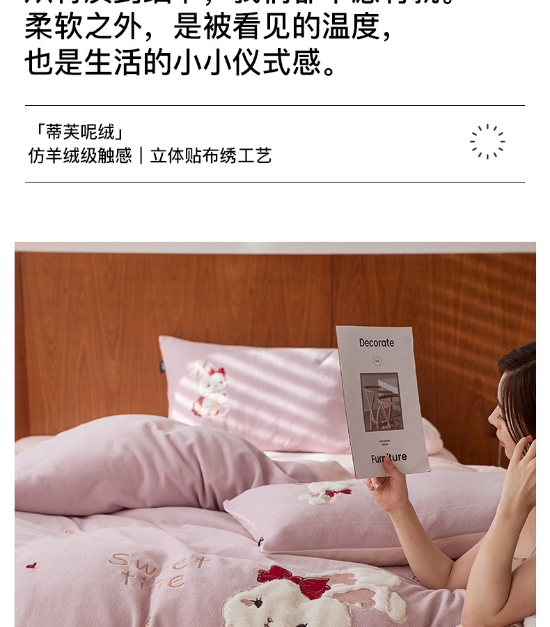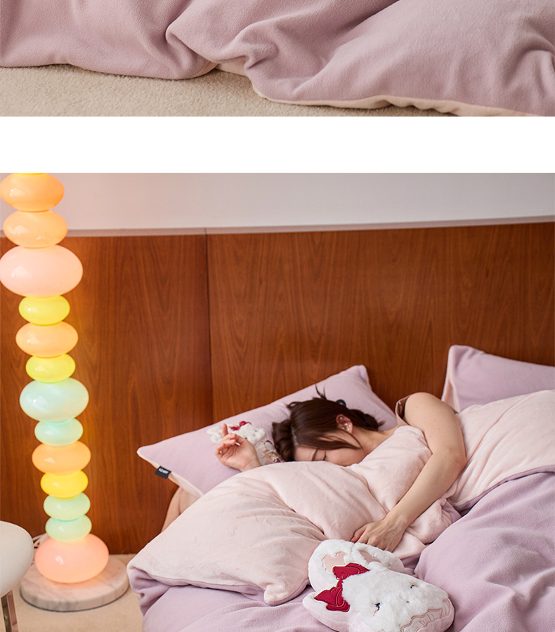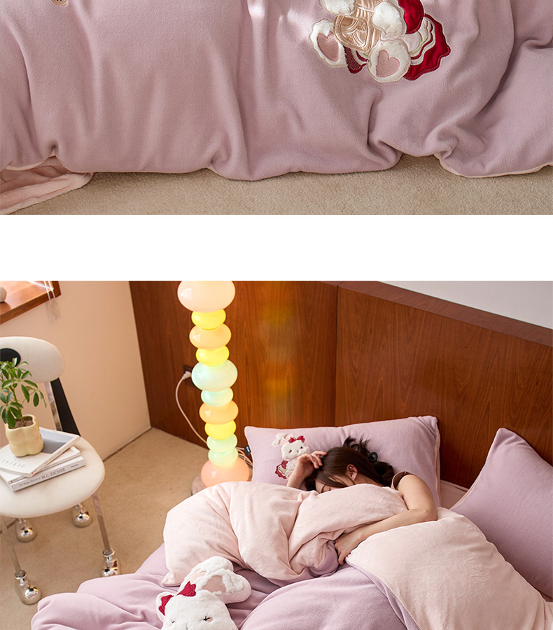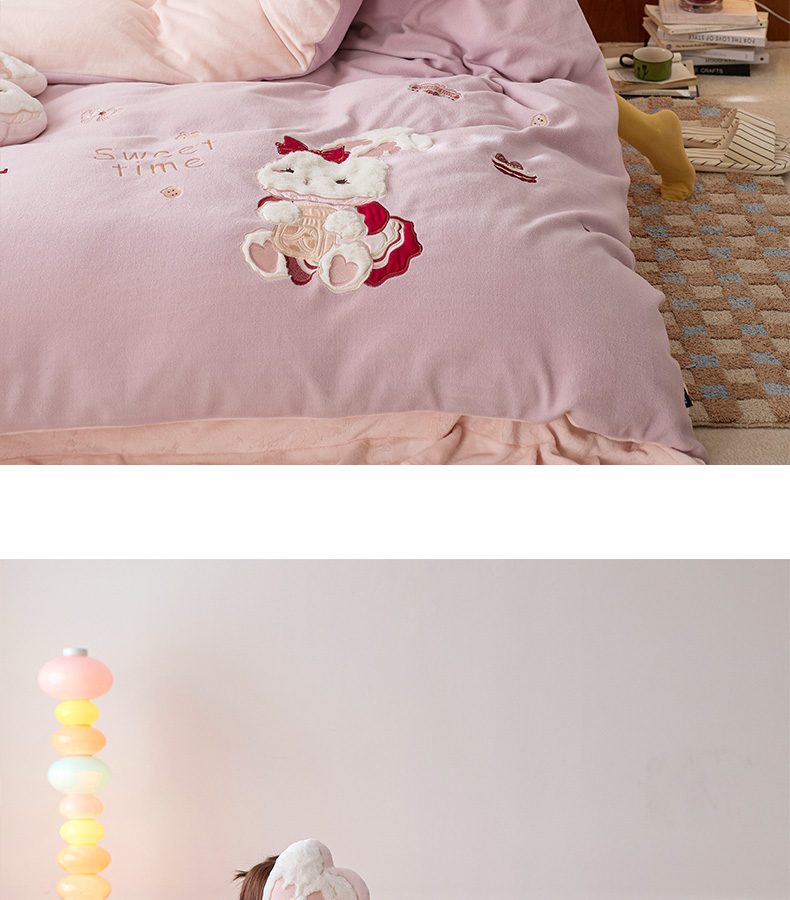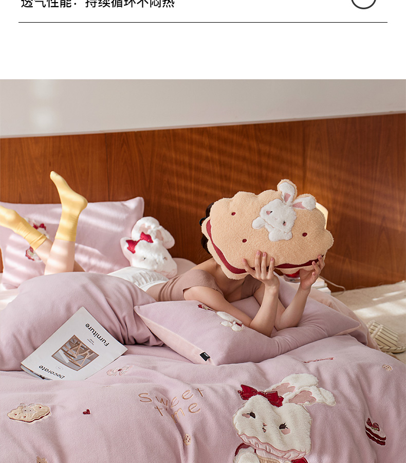 商品名称:卡姿家纺 2025秋冬仿羊绒毛呢触感蒂芙呢绒—兔子甜品屋 兔子甜品屋-紫