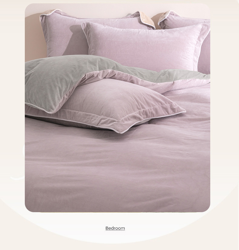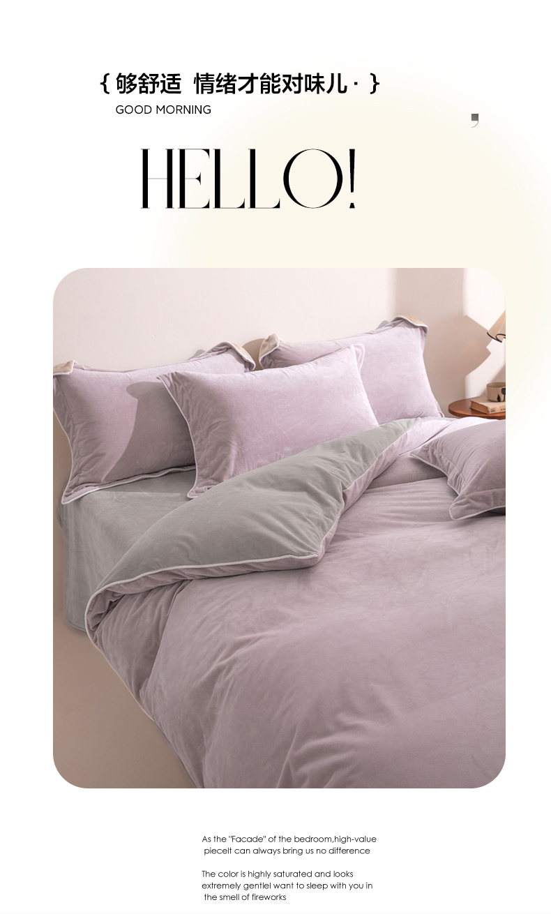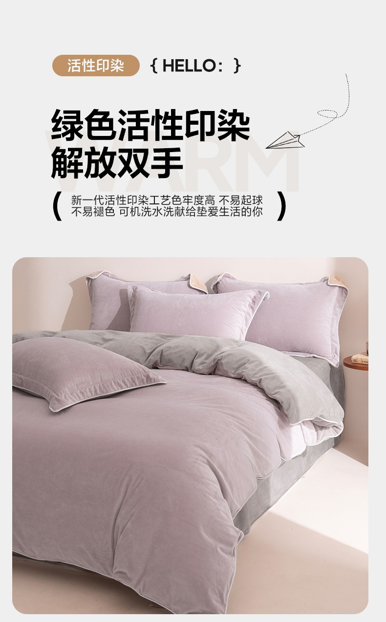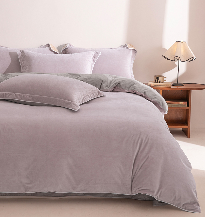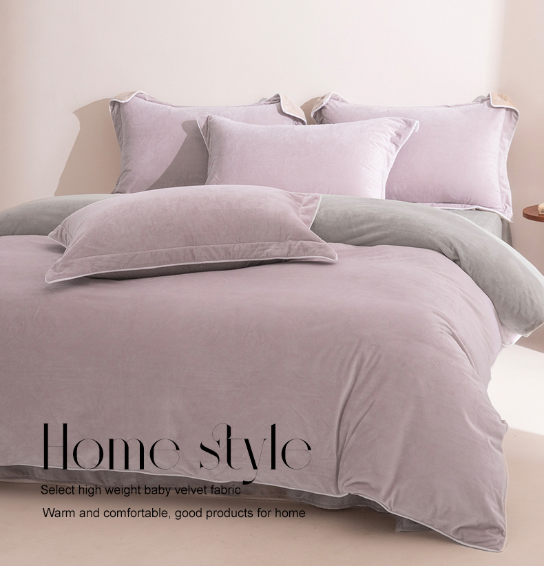商品名称:安力森/诚臻酒店用品 2025新款麻绳婴儿绒四件套秋冬加厚亲肤保暖卧室床品套件 芋泥-浅灰