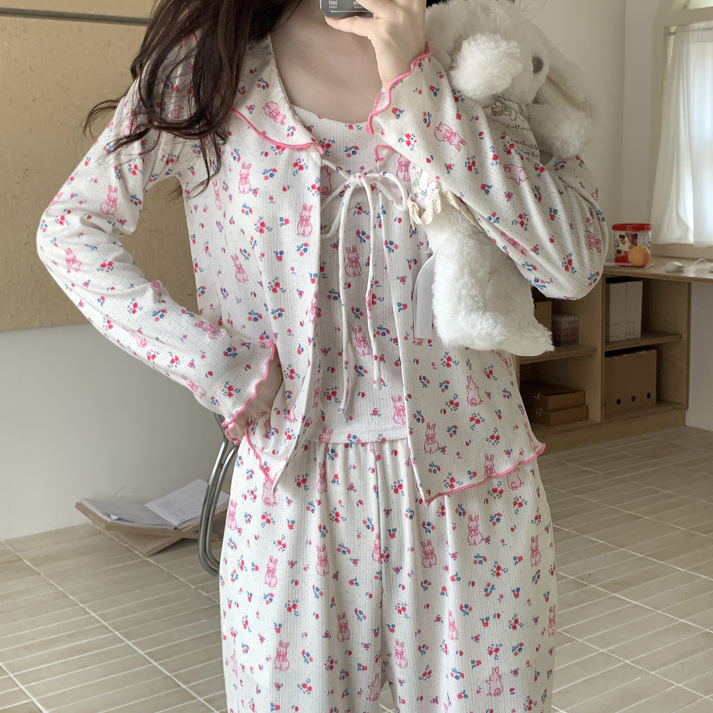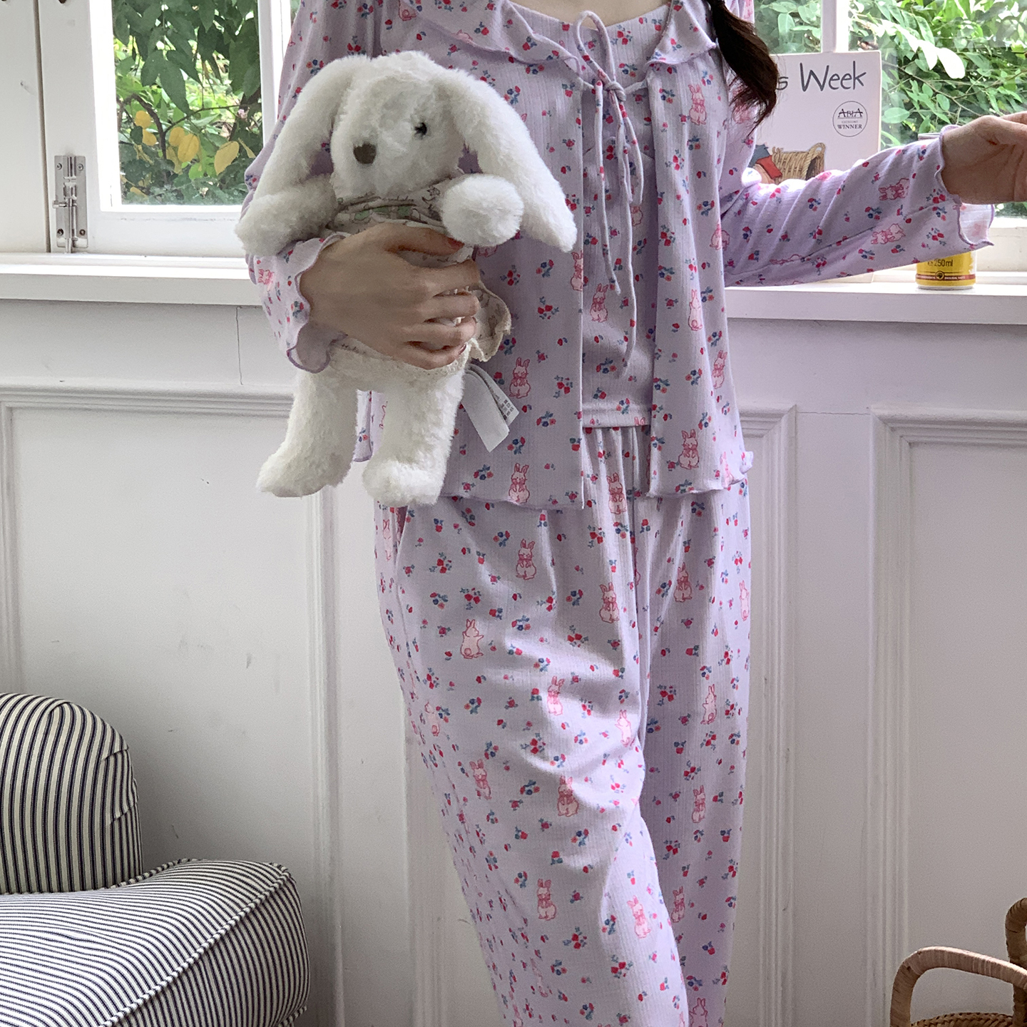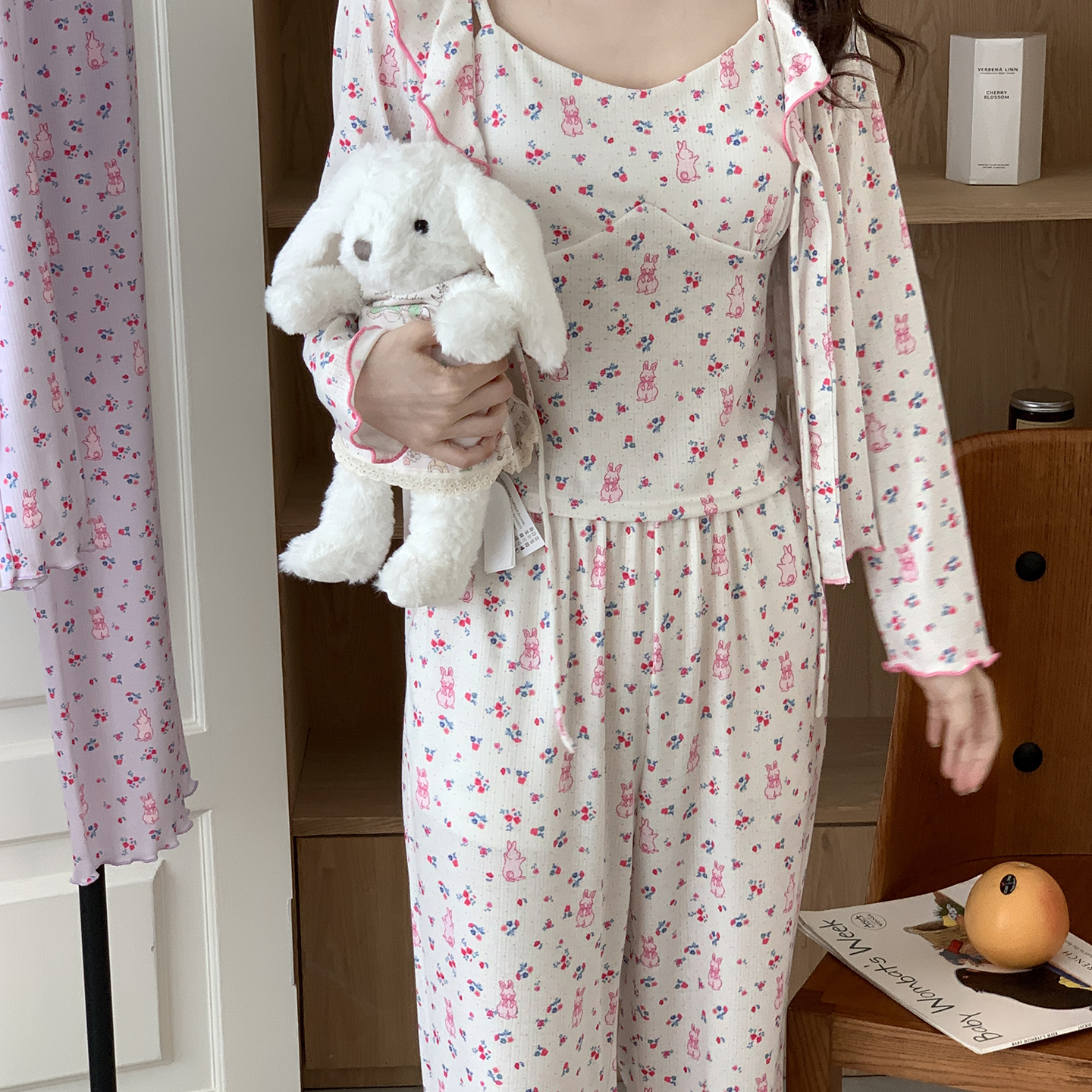 当前位置: 91家纺网 > 商品网购 > 居家日用 > 睡衣/家居服套装 > 妍景家居生活馆 2025新款害羞兔兔三件套 紫色