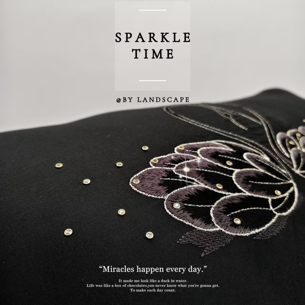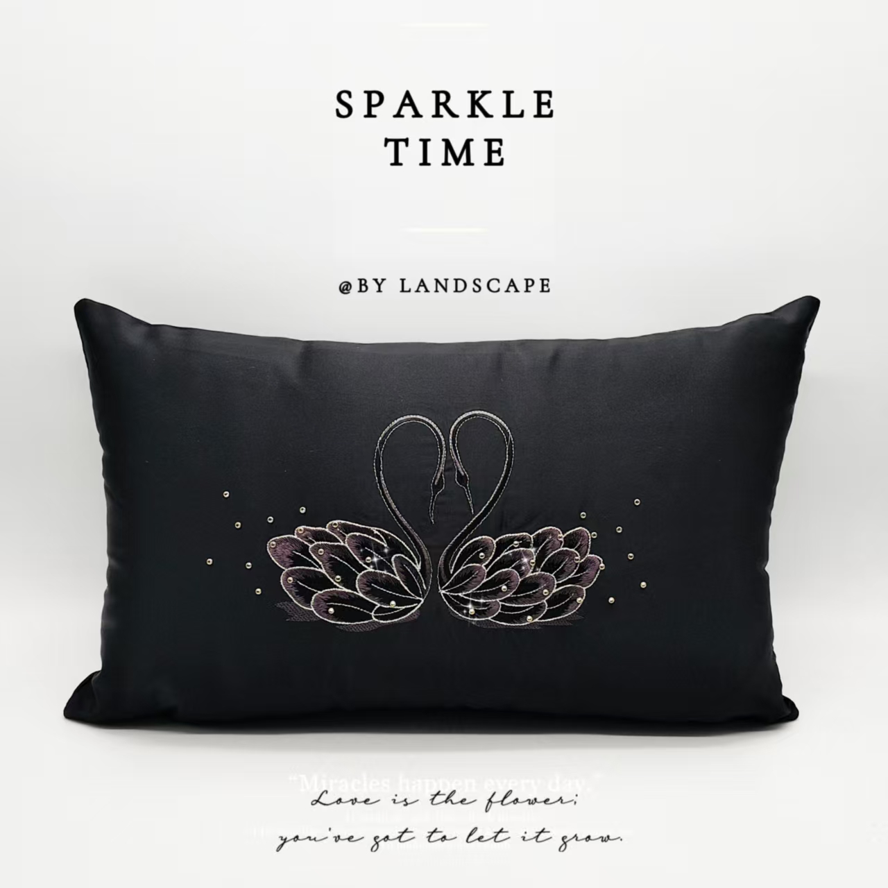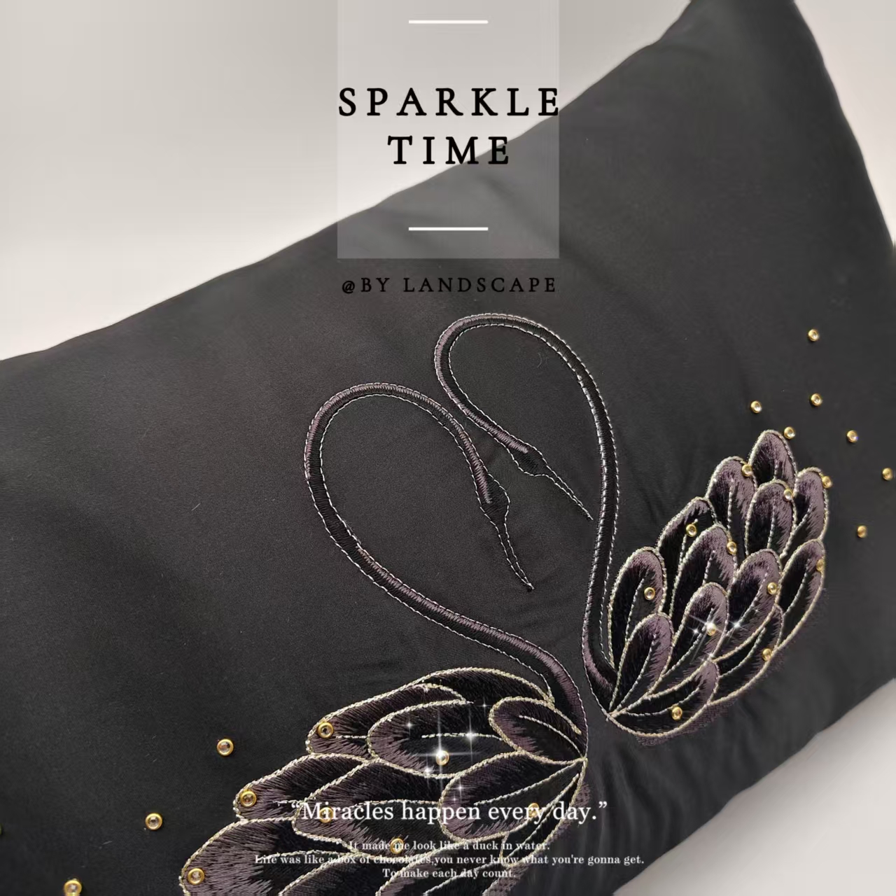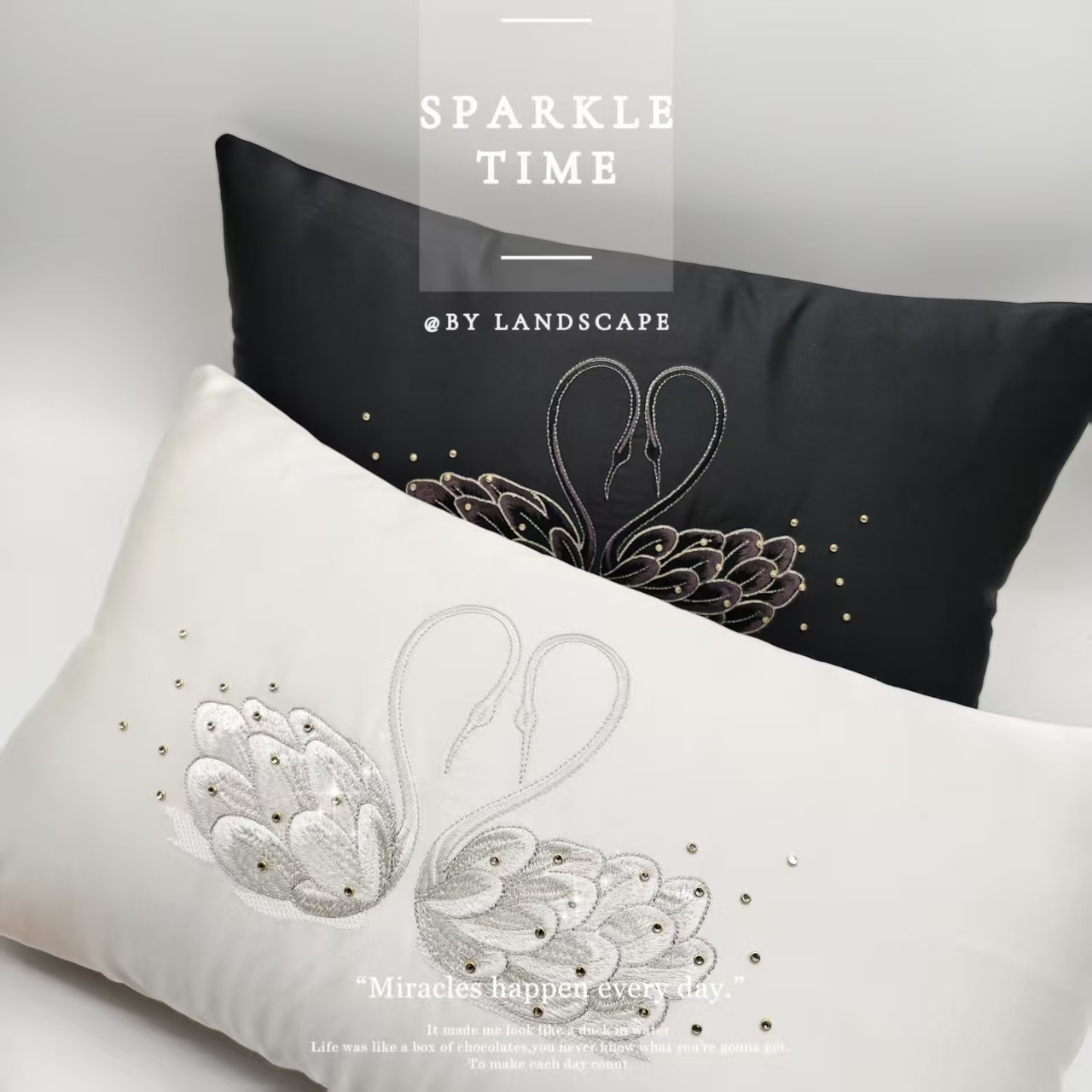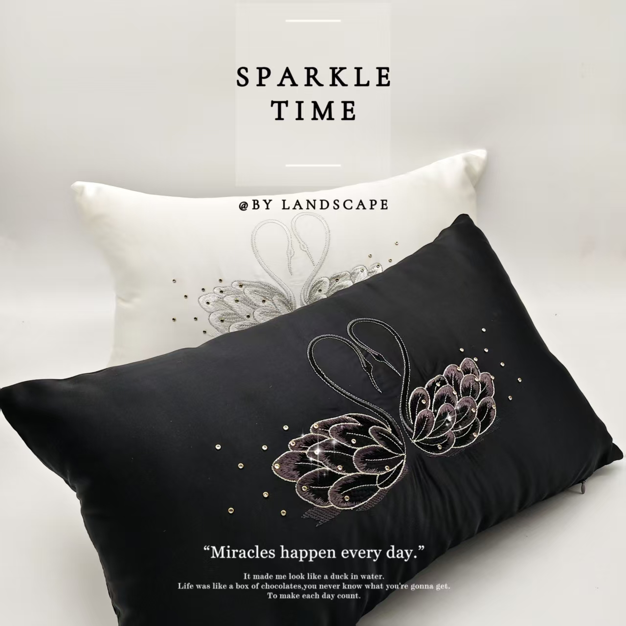 (总)澜屿 新款天鹅钻小抱枕装饰枕腰枕抱枕枕芯,天鹅钻白,天鹅钻黑