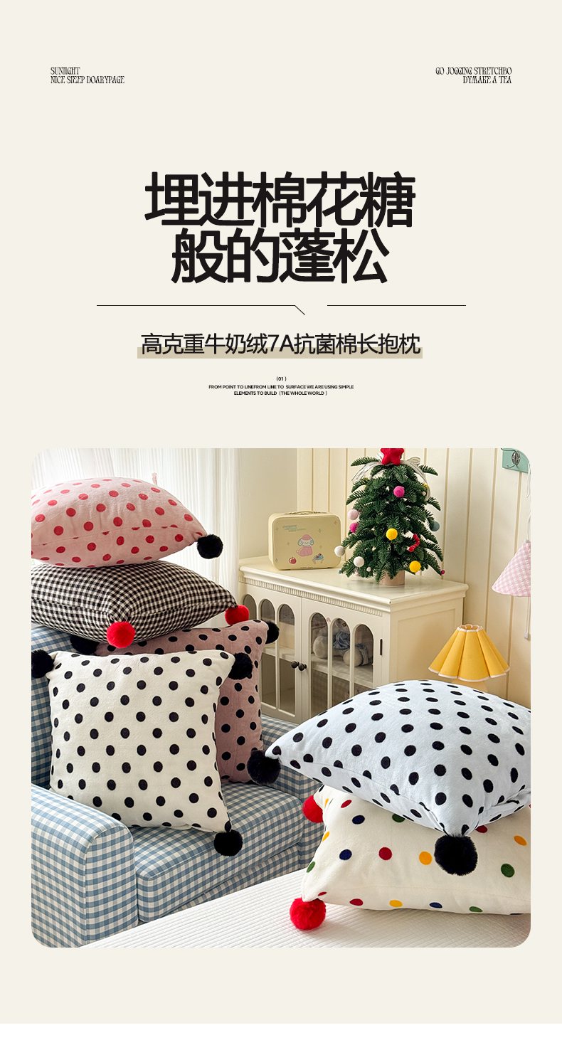 当前位置: 91家纺网 > 商品网购 > 居家日用 > 靠垫/抱枕 > 贝扬思家纺 2025新款牛奶绒可爱毛球长抱枕靠枕系列 组合图--短枕