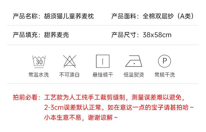 商品名称:北鸣有鱼枕芯馆 2025新款全棉双层纱漫画家系列荞麦枕-胡须猫 胡须猫-小猫日记
