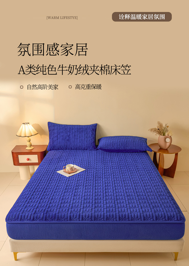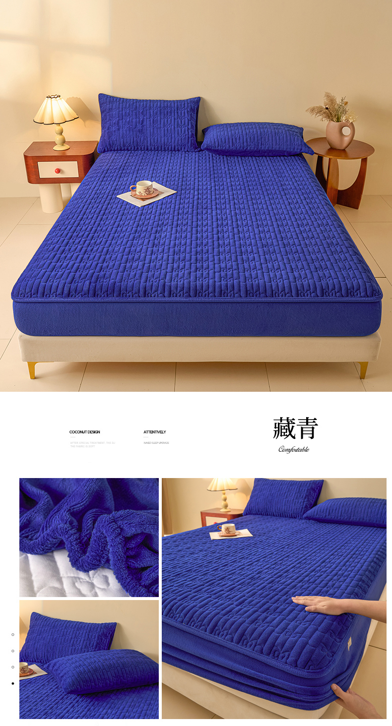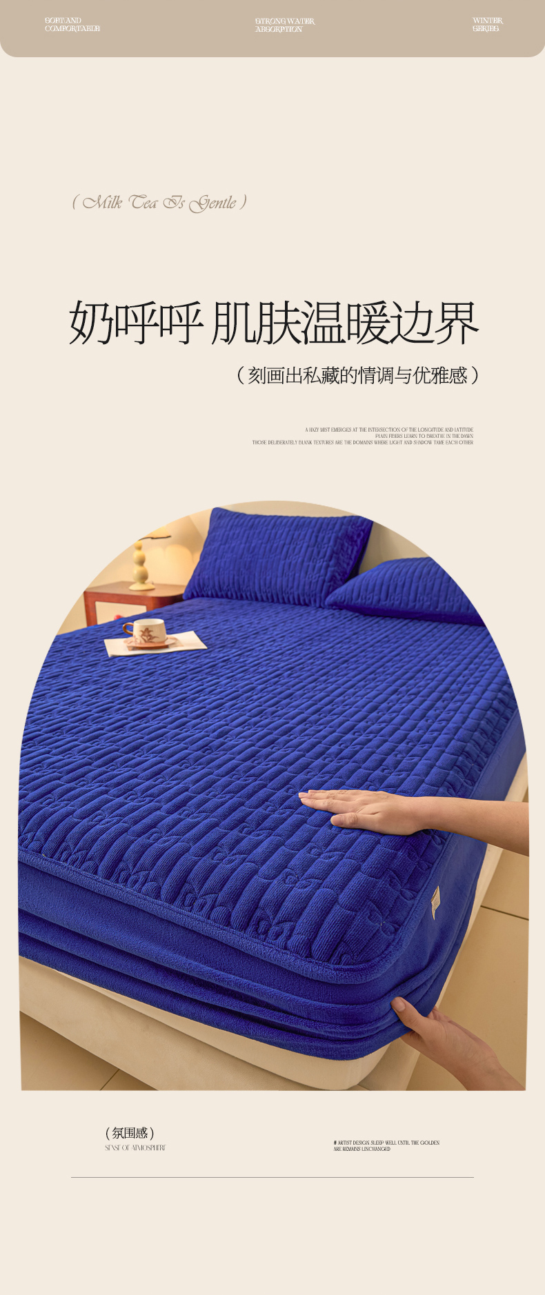 • 91家纺网 家纺一手货源 找家纺 Sweet dreams甜梦 2025新款A类纯色牛奶绒夹棉床笠 藏青