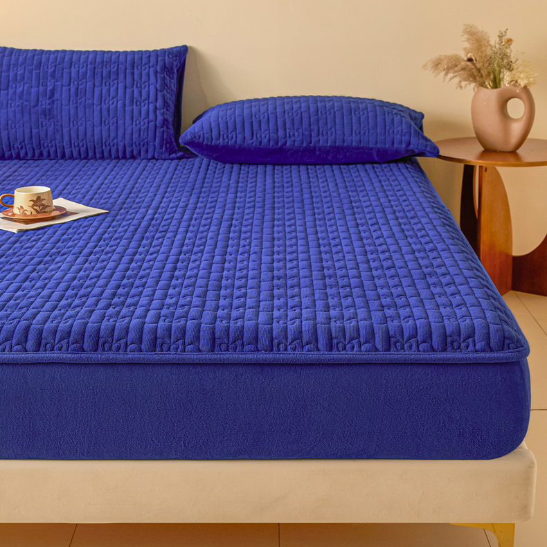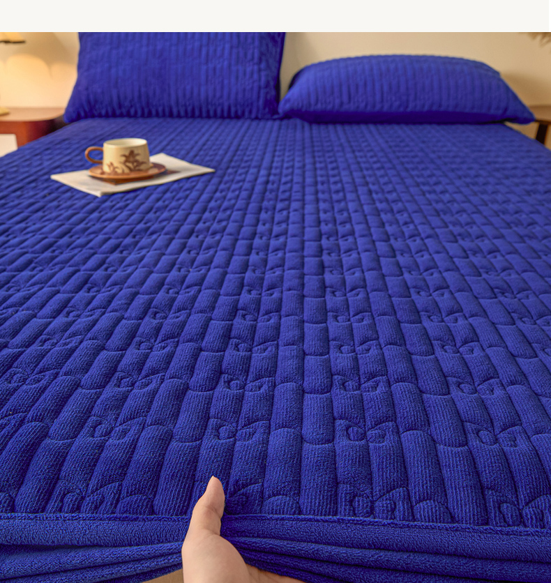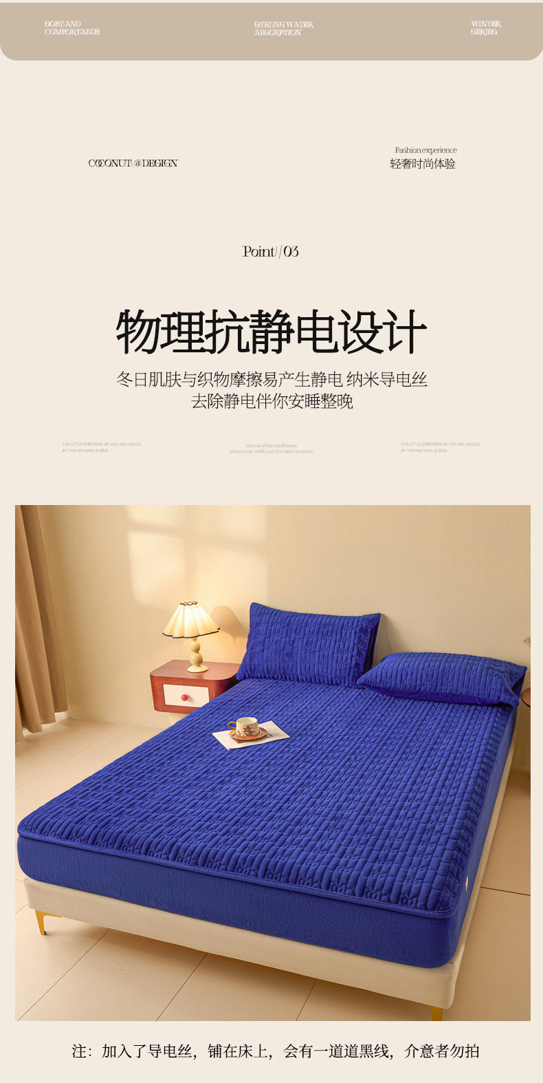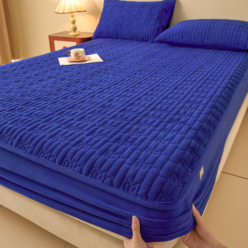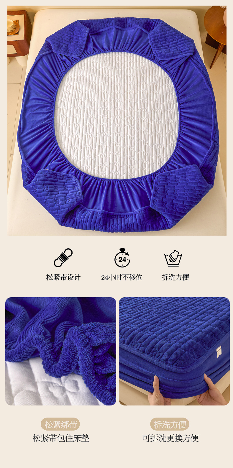 • 91家纺网 家纺一手货源 找家纺 Sweet dreams甜梦 2025新款A类纯色牛奶绒夹棉床笠 藏青