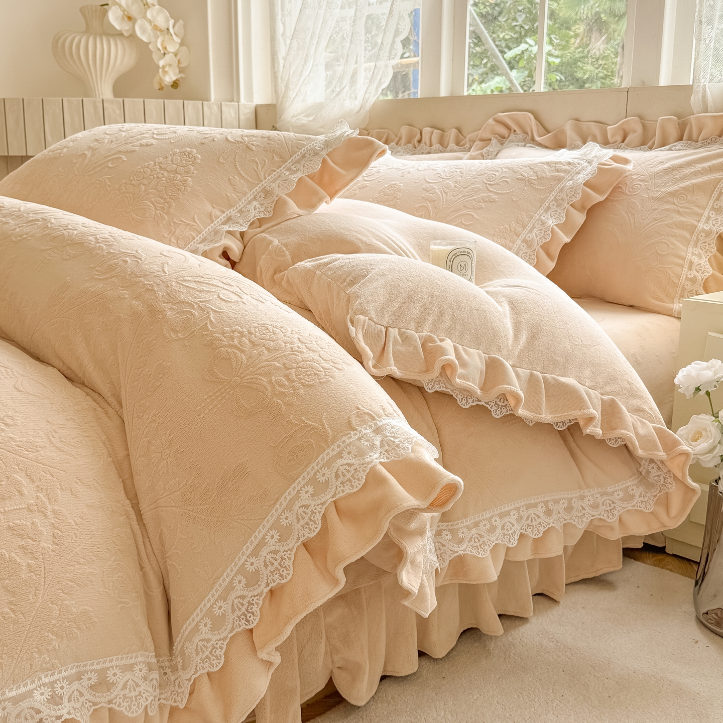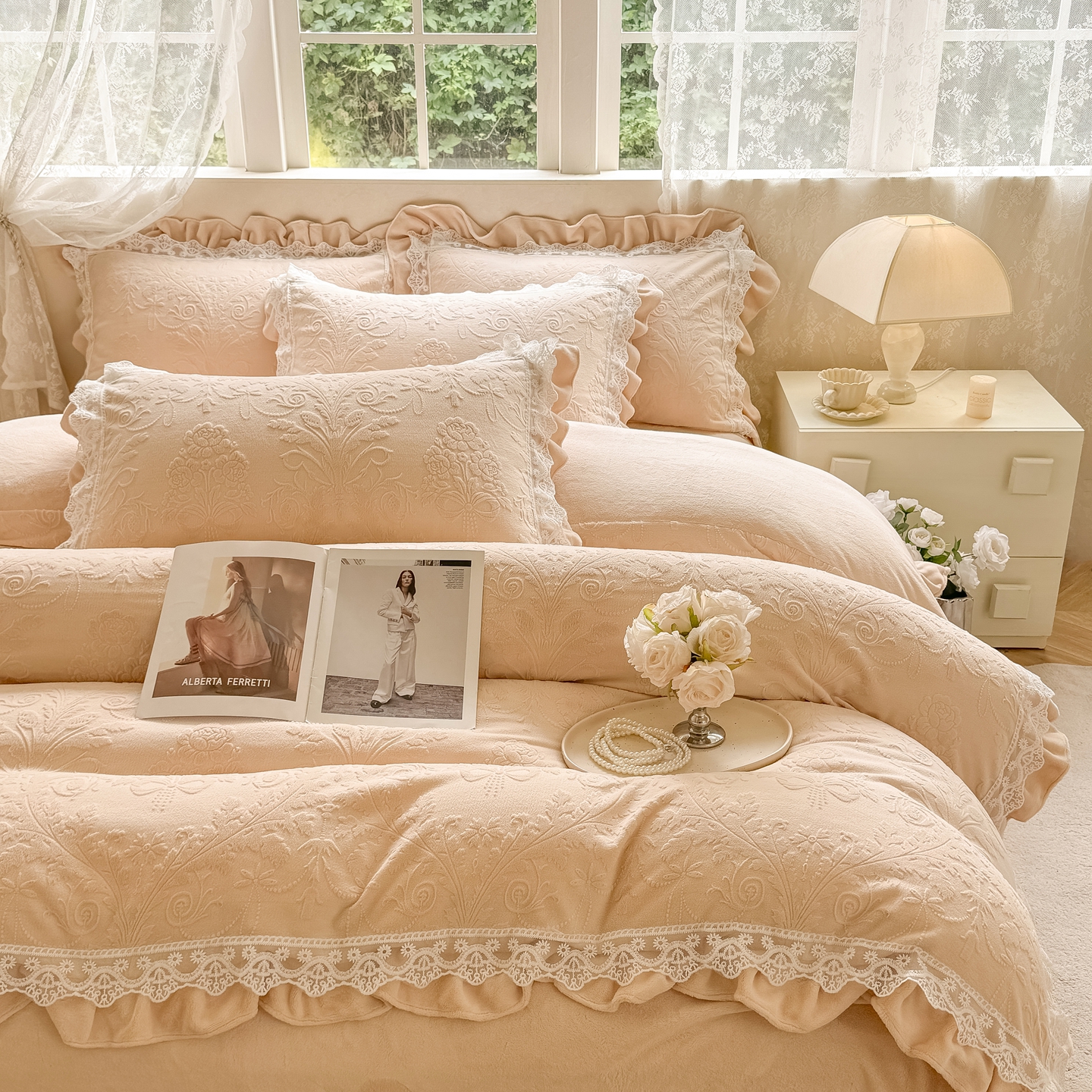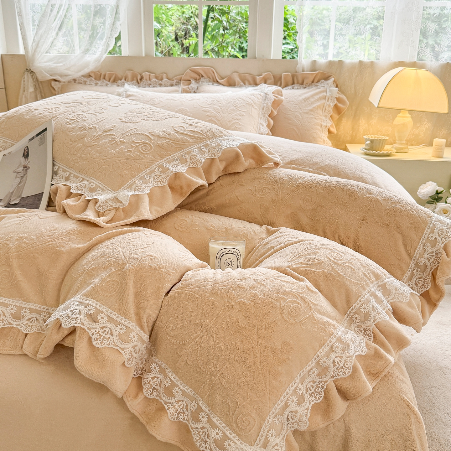 久久红 2025新款高克重牛奶绒四件套系列 卡其
