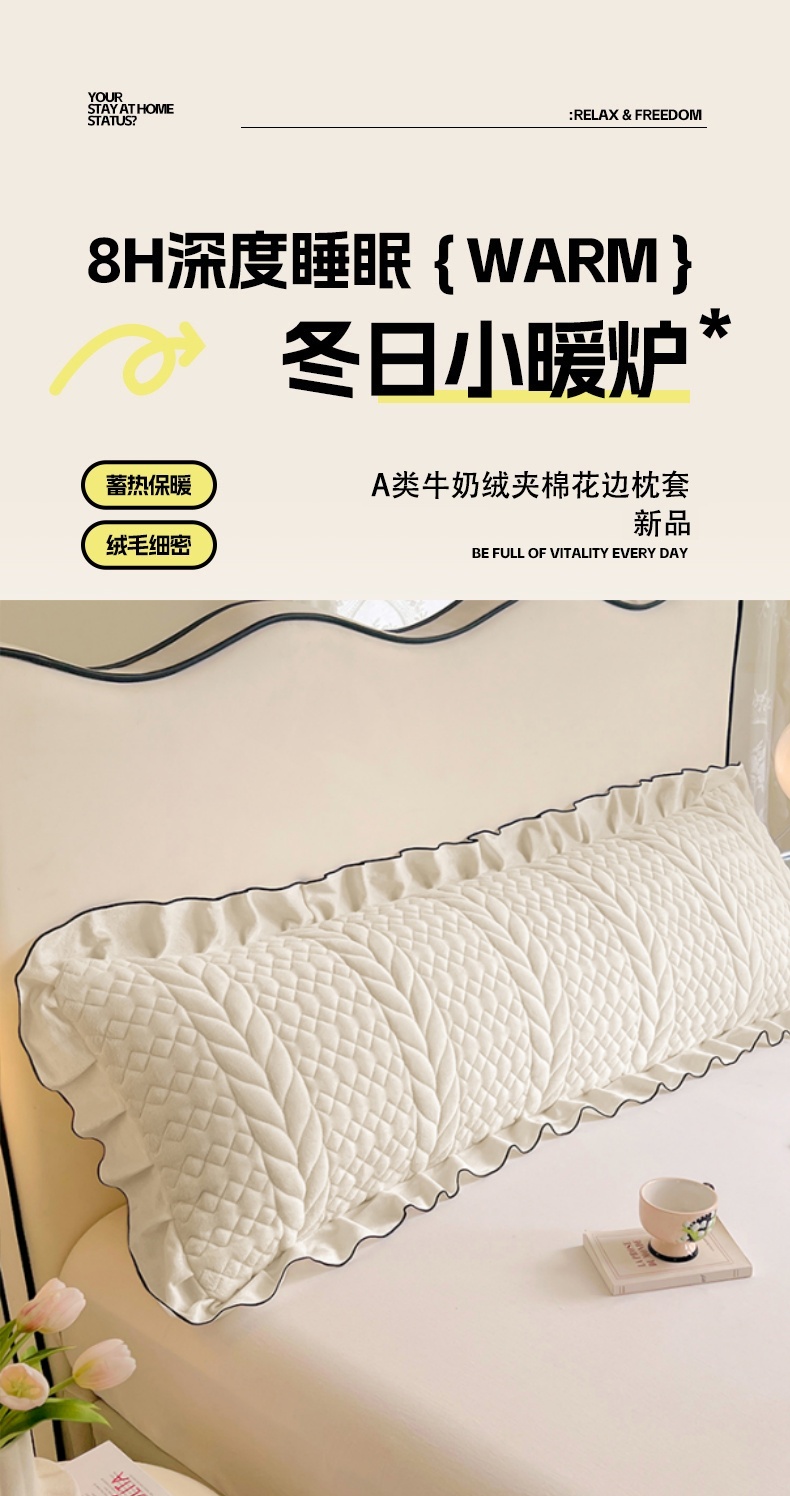 商品名称:梦舒羽 2025新款A类牛奶绒夹棉花边枕套情侣双人加长枕芯套枕头套-轻奢 花边轻奢款-象牙白