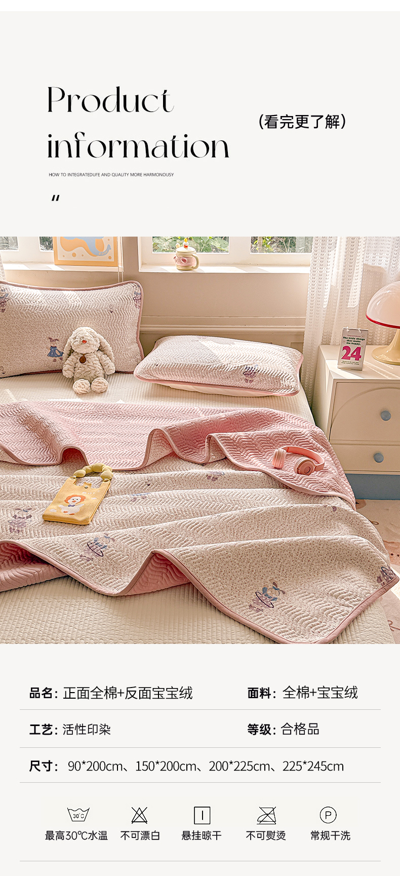 商品名称:布兰鸟家纺【1店】 2025新款全棉宝宝绒夹棉床盖单品床盖床盖单件(四季换面用) 美吉宠宝