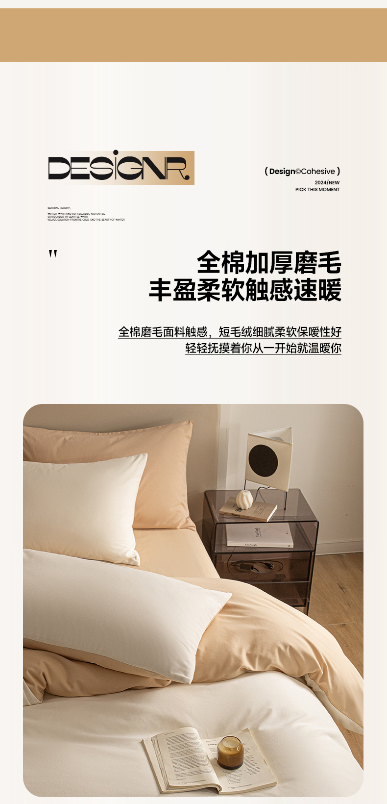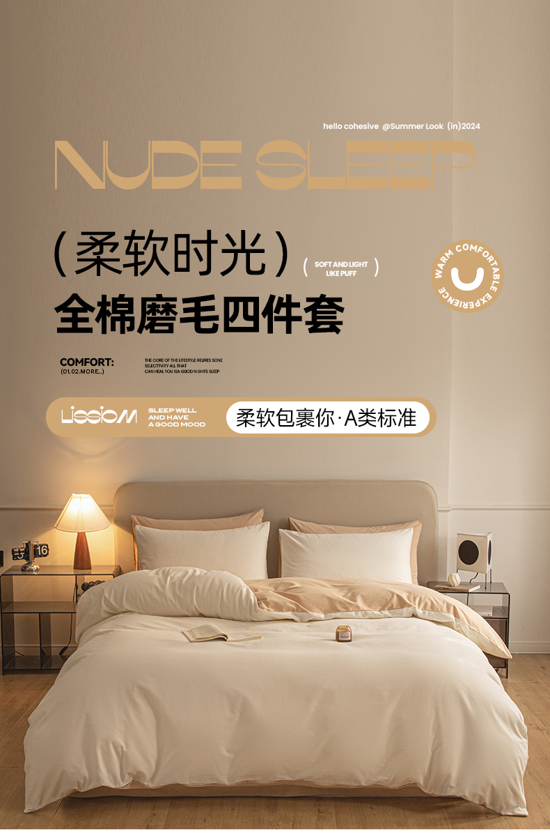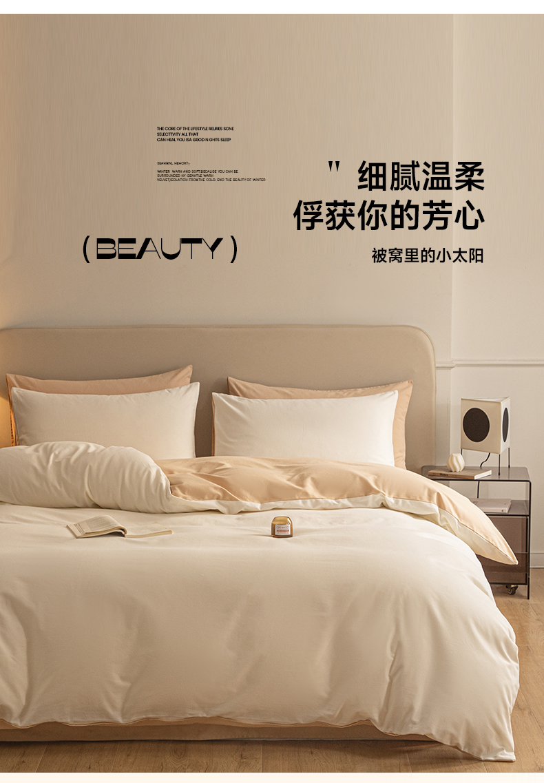 卓越家纺 2025新款全棉加厚磨毛四件套 燕麦奶昔